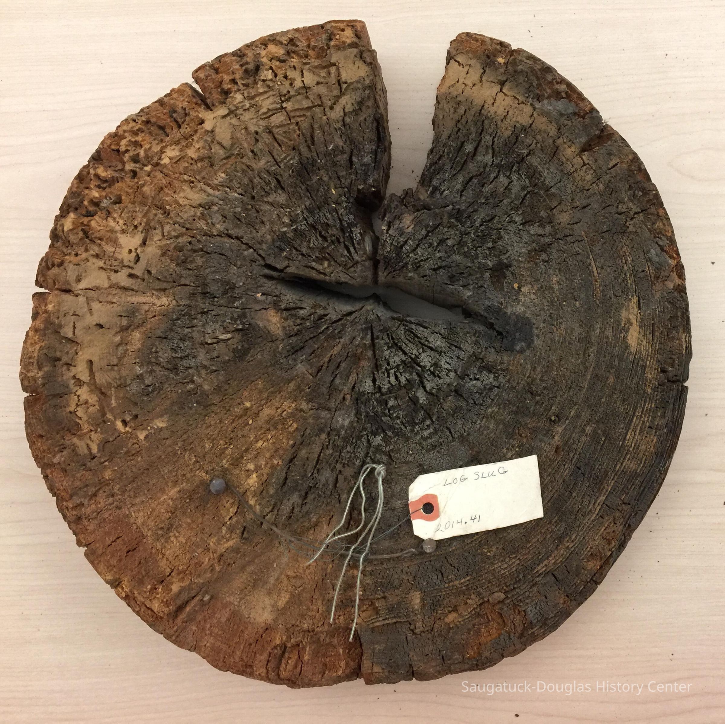 The slub was found in the mud along the Kalamazoo River. This kind of logging slug is colorfully called a "dollar."