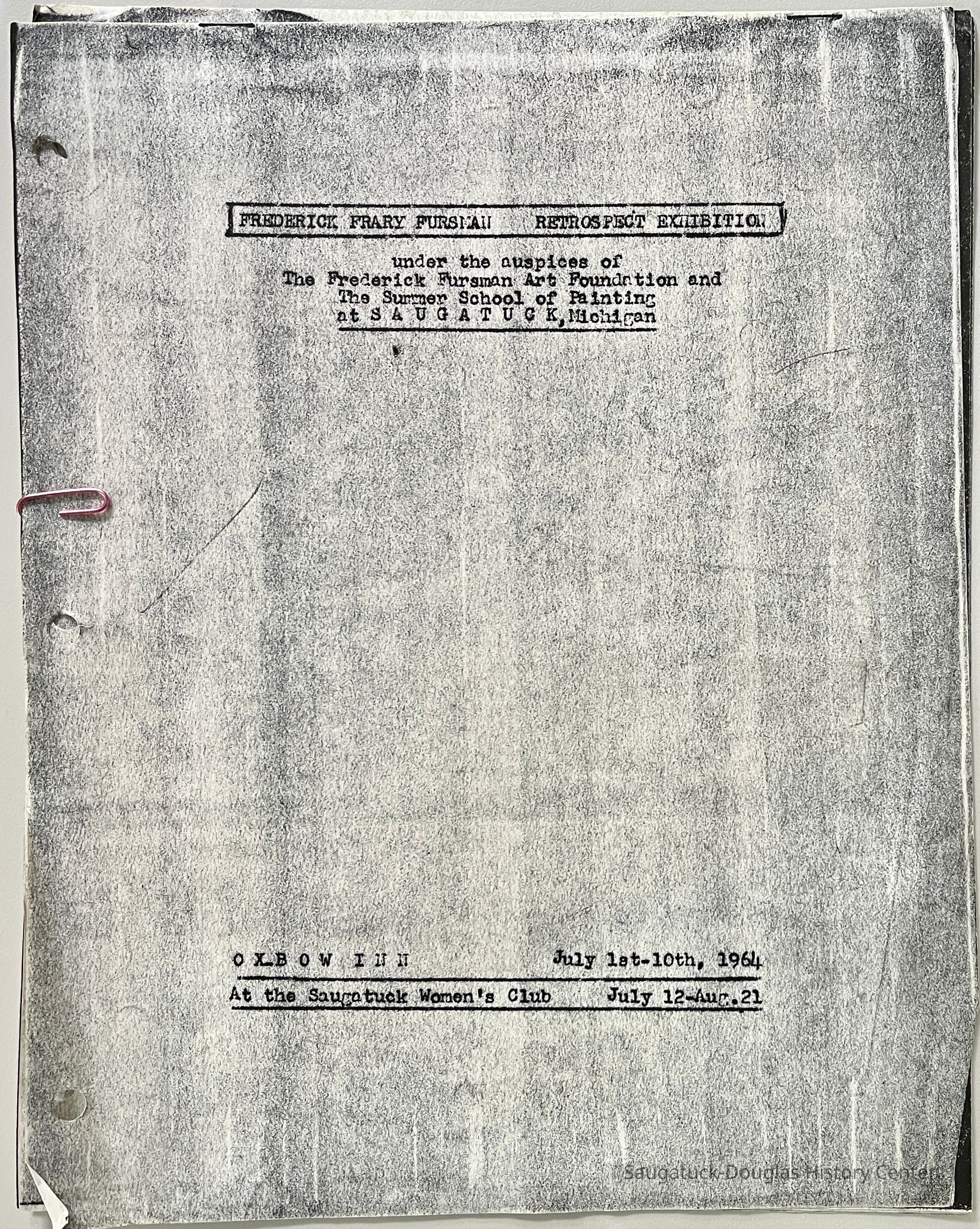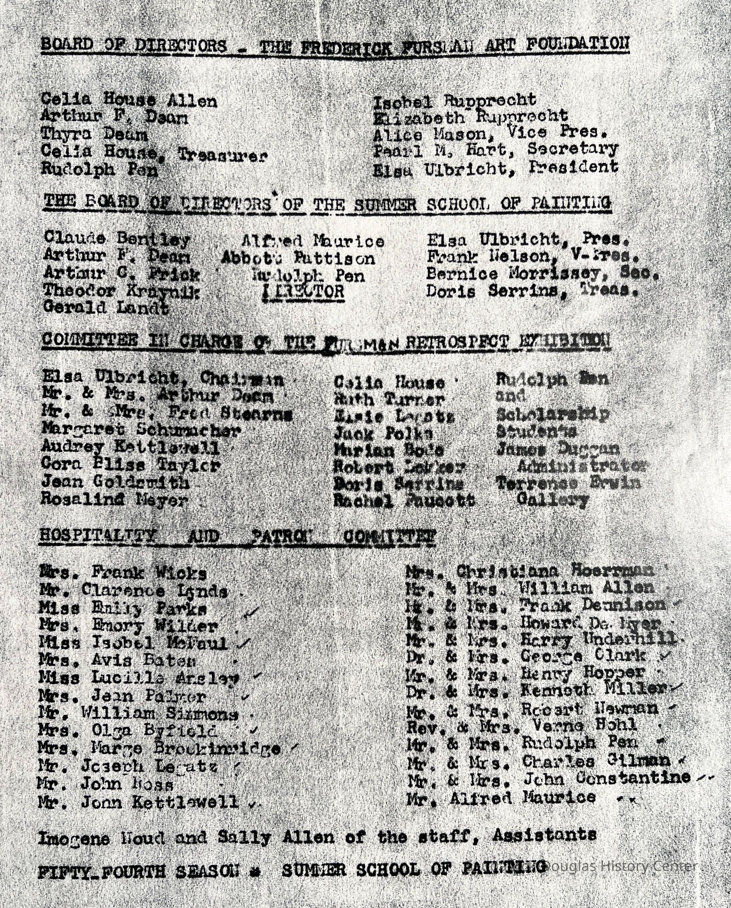When Frederick Fursman died in 1943, the Frederick Fursman Art Foundation was established to keep Fursman's work in the eyes and mind of the public. This document shows the depth of support for the foundation in 1964.