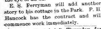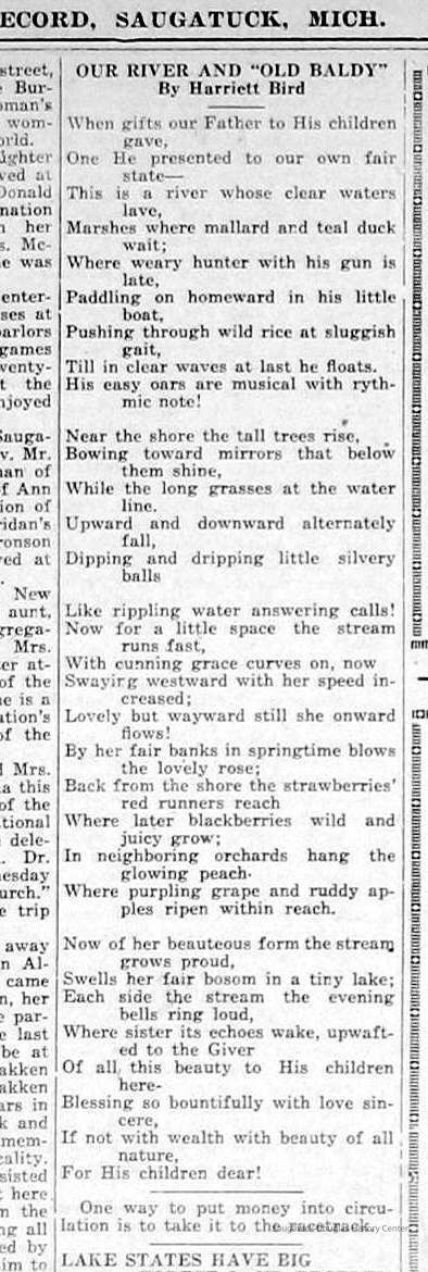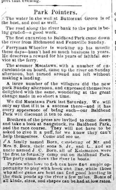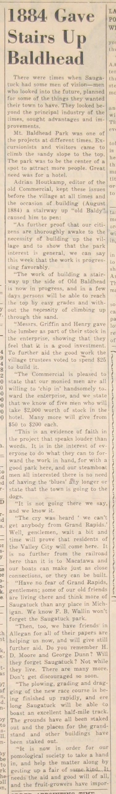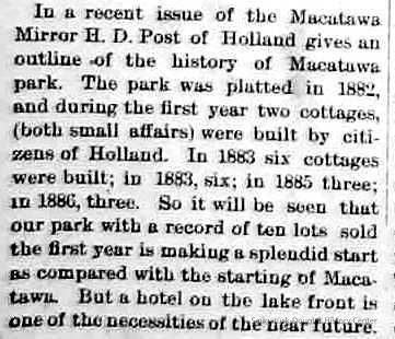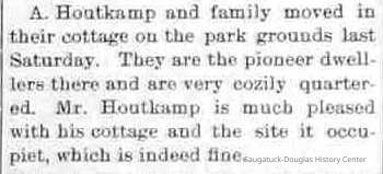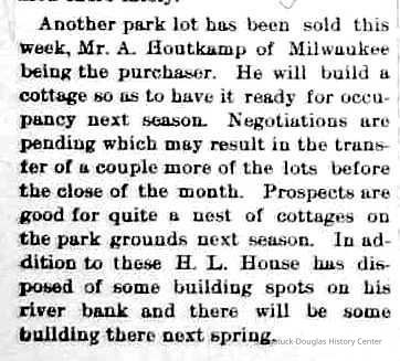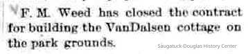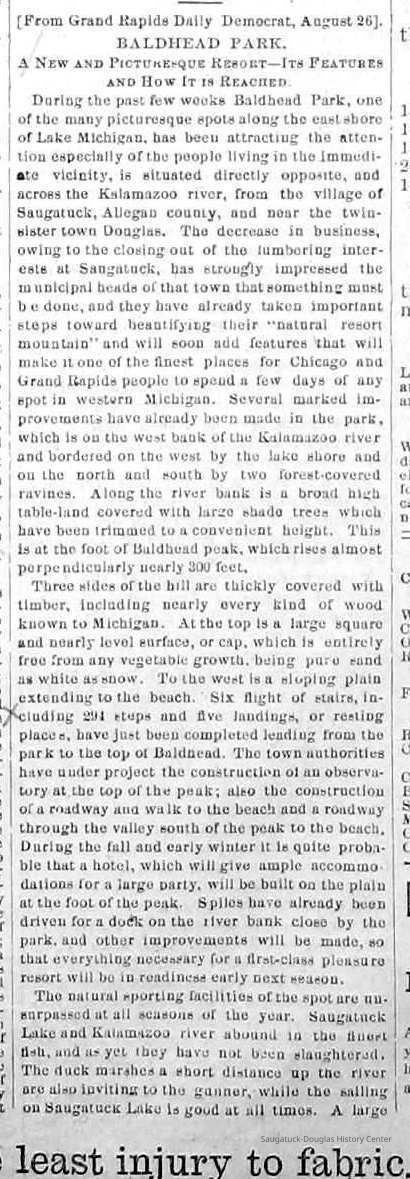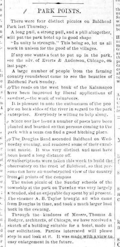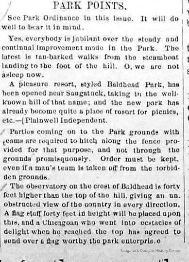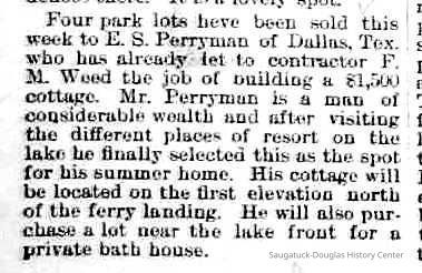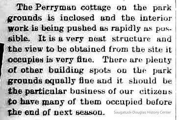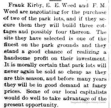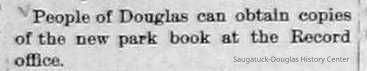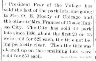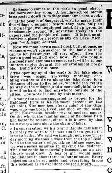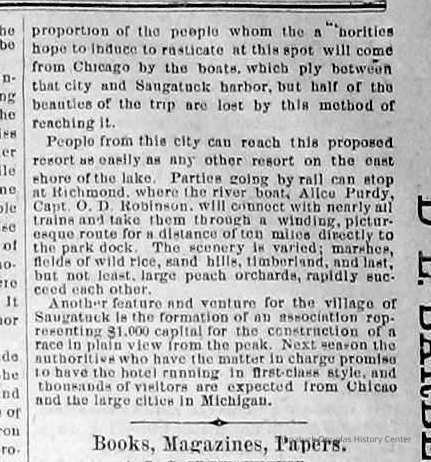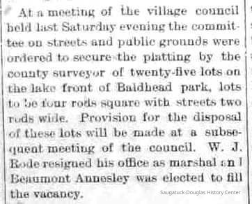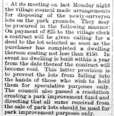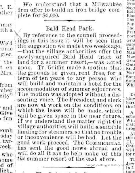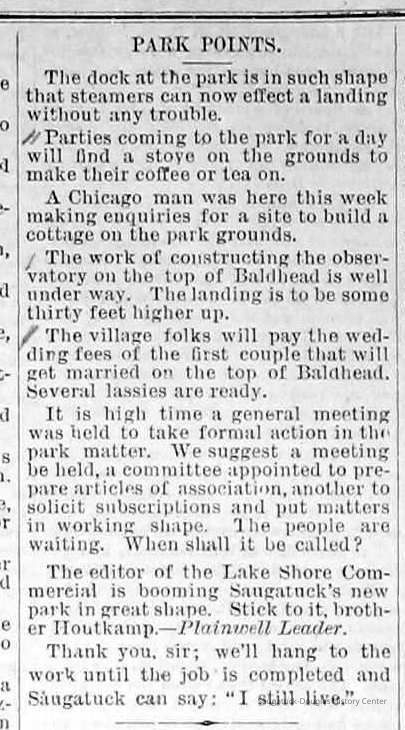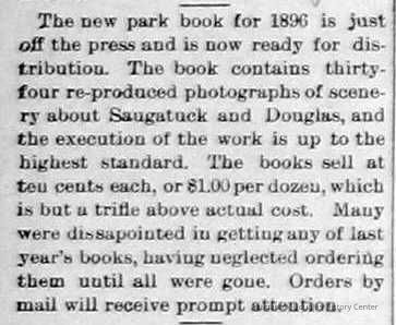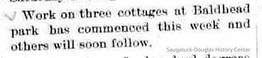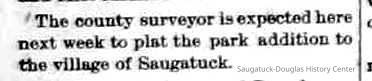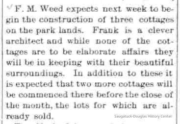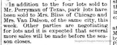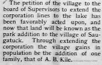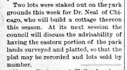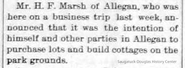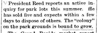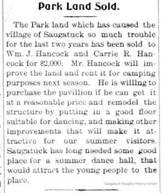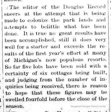 Scans of Commercial Record newspaper clippings about the Village of Saugatuck's efforts to promote, sell and develop on the Park Lands on the west side of the Kalamazoo river.