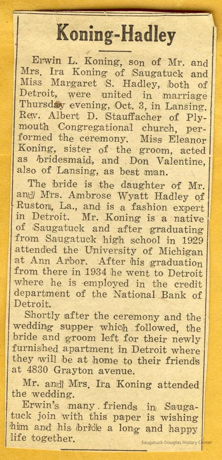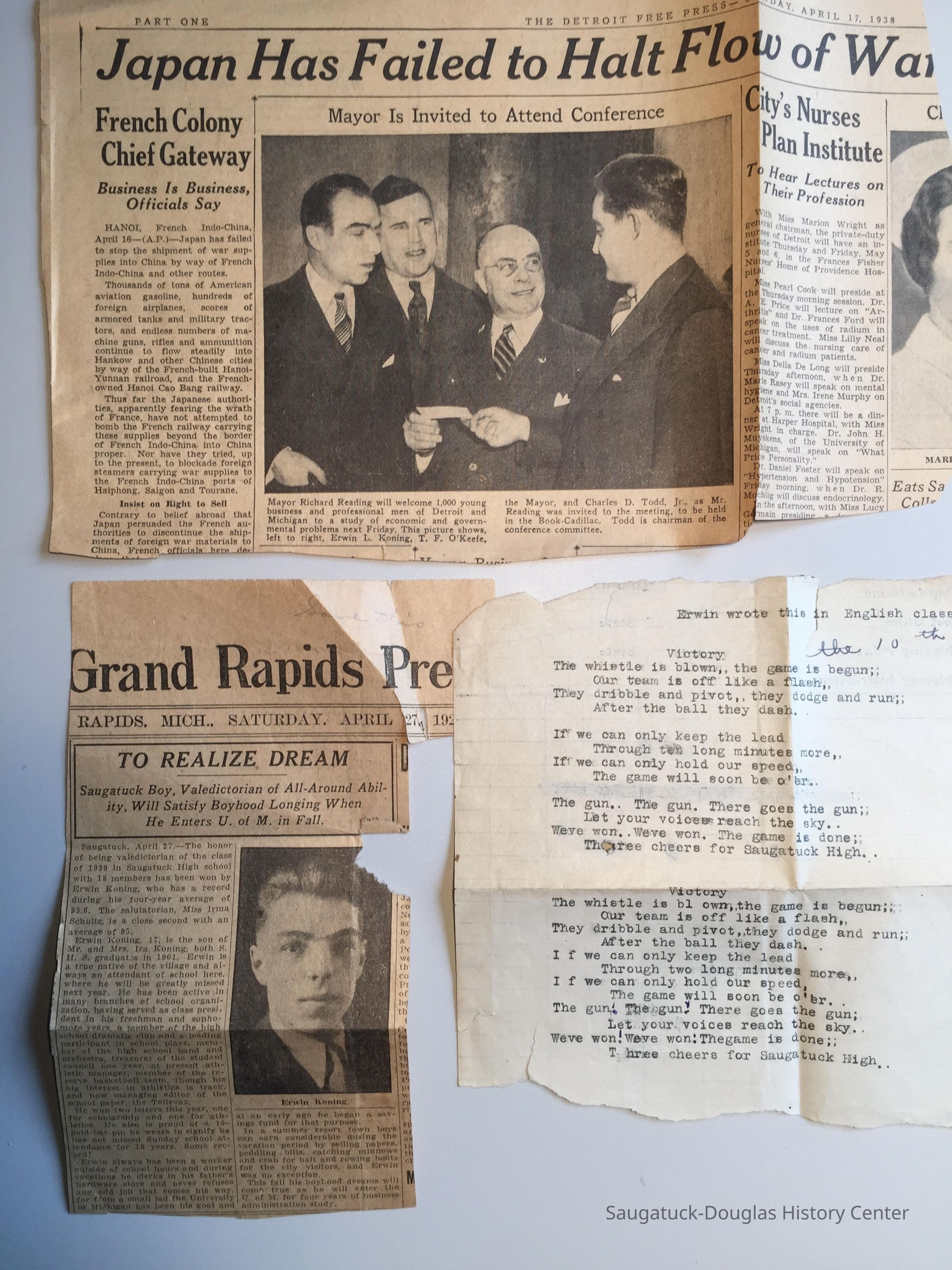 Photo and mention that Erwin L. Koning was one of 1000 young men invited to study economic and governmental problem