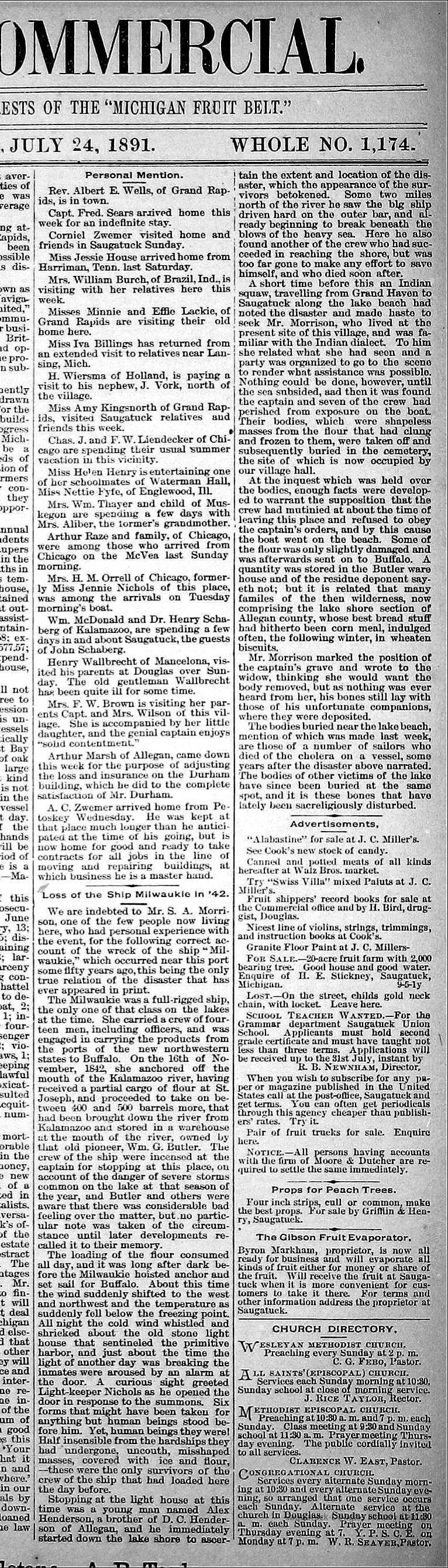 Newspapers0001 Anishinabek/Ojibwe/Odawa/BodéwadmiShipwrecksNautical