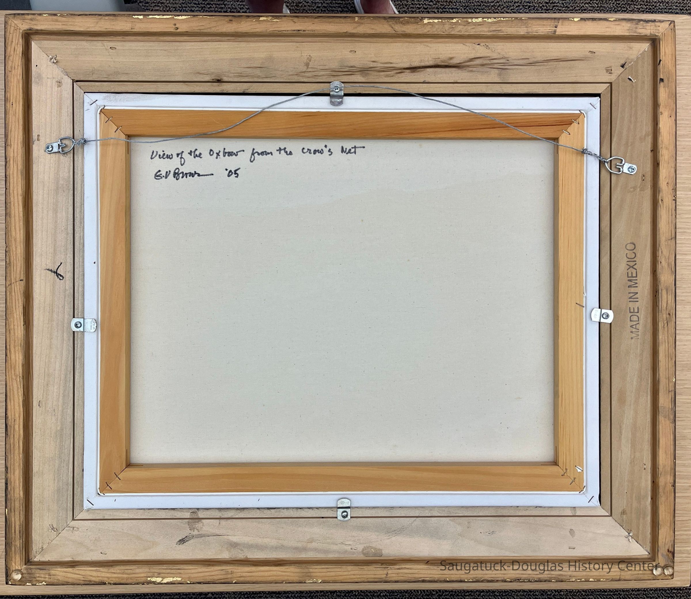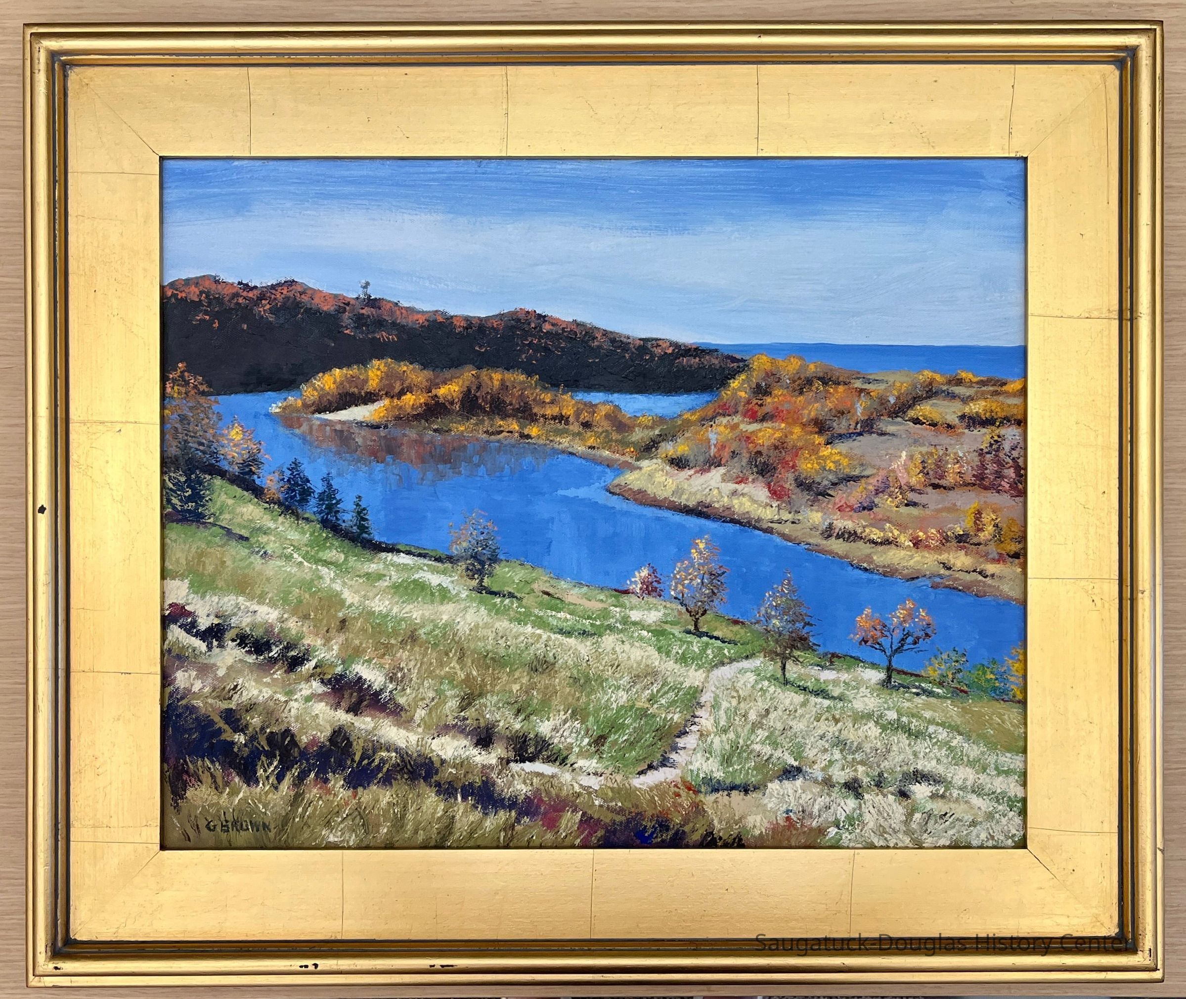 George Vincent Brown III 1937-2018 View of the Ox-Bow from the Crow's Nest 2005 acrylic on canvas Painter George Brown came to painting later in life but left an impressive legacy at the Art Coast of Michigan. A Bostonian by birth, he led a successful career in real estate finance in the Midwest, playing key roles in projects such as the John Hancock Tower in Chicago and Renaissance Center in Detroit. His passion for painting led him to study at the Ox-Bow School of Art. He also ran a gallery in Douglas where he painted and displayed his work. His painting of this storied hiking spot and overlook known as the Crow's Nest captures a perfect autumn day at the Lake Michigan dunes. SDHC Collection Gift of Gregg Kurek, husband of George Brown III Accession number 2024.37.01