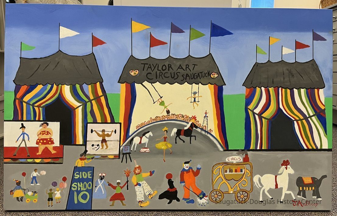 Painting inspired by Taylor Art School student mural project (see 2022.36.02).