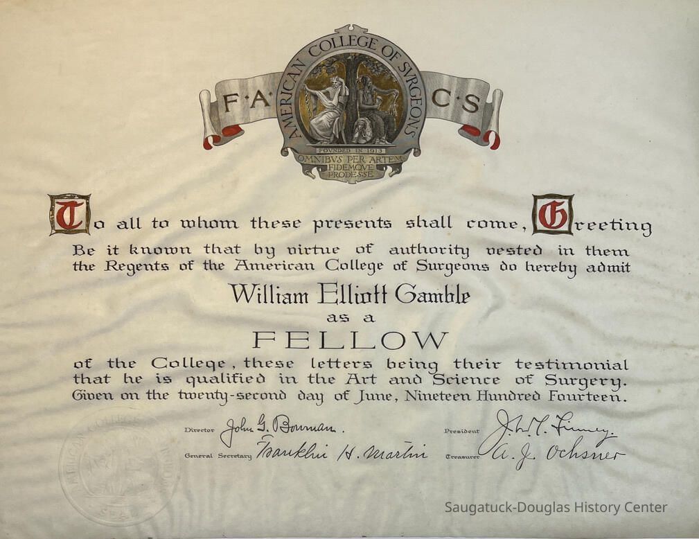 Surgical fellow, American College of Surgeons, to William Elliott Gamble, undated