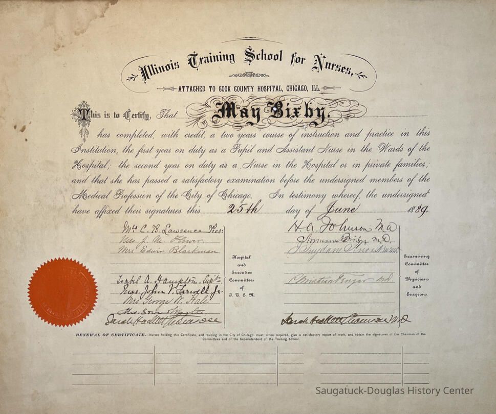 Nursing, Illinois Training school for Nurses to May Bixby, June 25, 1889