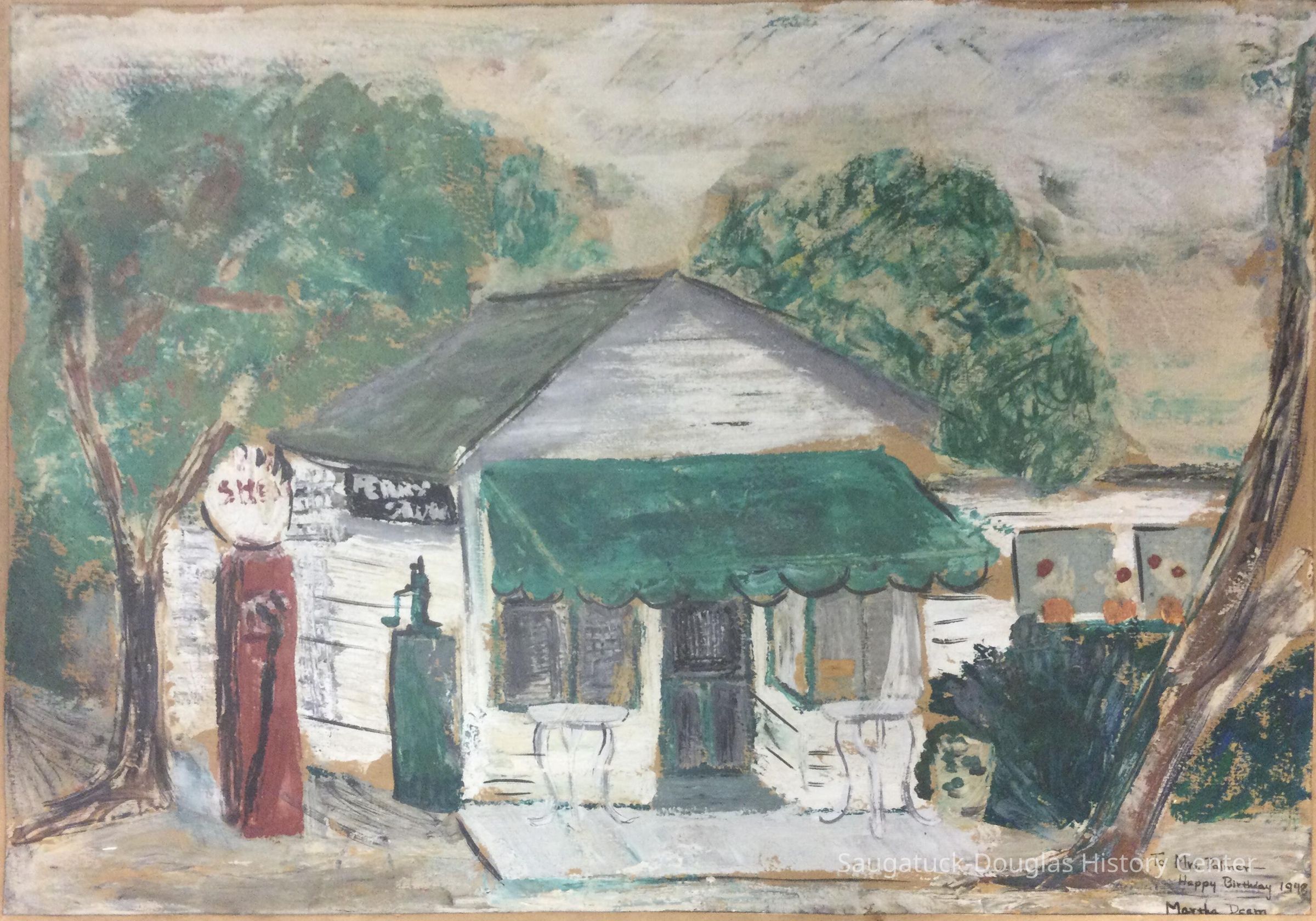 Martha Deam Severt The Ferry Store c. 1940 | watercolor Notes: Martha Deam Severt studied art at Ox-Bow and the University of Pennsylvania as well as in many countries of the Orient and Southeast Asia where she traveled in her work with the U.S. government. She has had one-man shows in Japan, Taiwan, Burma, Malaysia and Singapore. She taught painting during the winter at the Deland Museum in Florida. (From Painting the Town, Kit Lane) This painting was a gift from a young Martha to Jean Palmer, who owned the Ferry Store. For many years it was displayed in the Mary Kay cottage at Ox-Bow where Mrs. Palmer spent her summers. Collection: Saugatuck Douglas Historical Society Gift of: Chris Spencer and Charles Aschbrenner