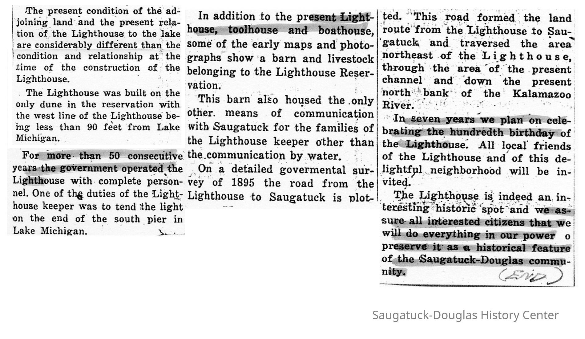 Deam, Norman Arthur 1932-2022Deam, Arthur "Art" Francis 1895-1974Deam, Constance "Connie" (Graves) 1933-2019Deam, Thyra (Sonderberg) 1900-1977Ulbricht, Elsa 1885-1980Fursman, Frederick Frary 1874-1943Stafford, BobKalamazoo Lighthouses 1839/1858/1956-presentOld Harbor/Channel piers pre-1906/Ox-Bow Lagoon