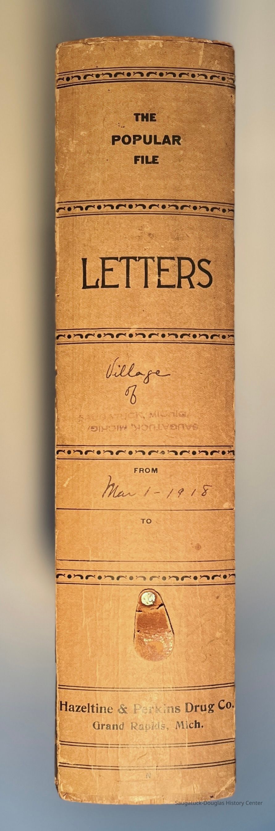 "Village of Saugatuck" is written on the cover and "Mar 1 - 1918" is noted on the spine.