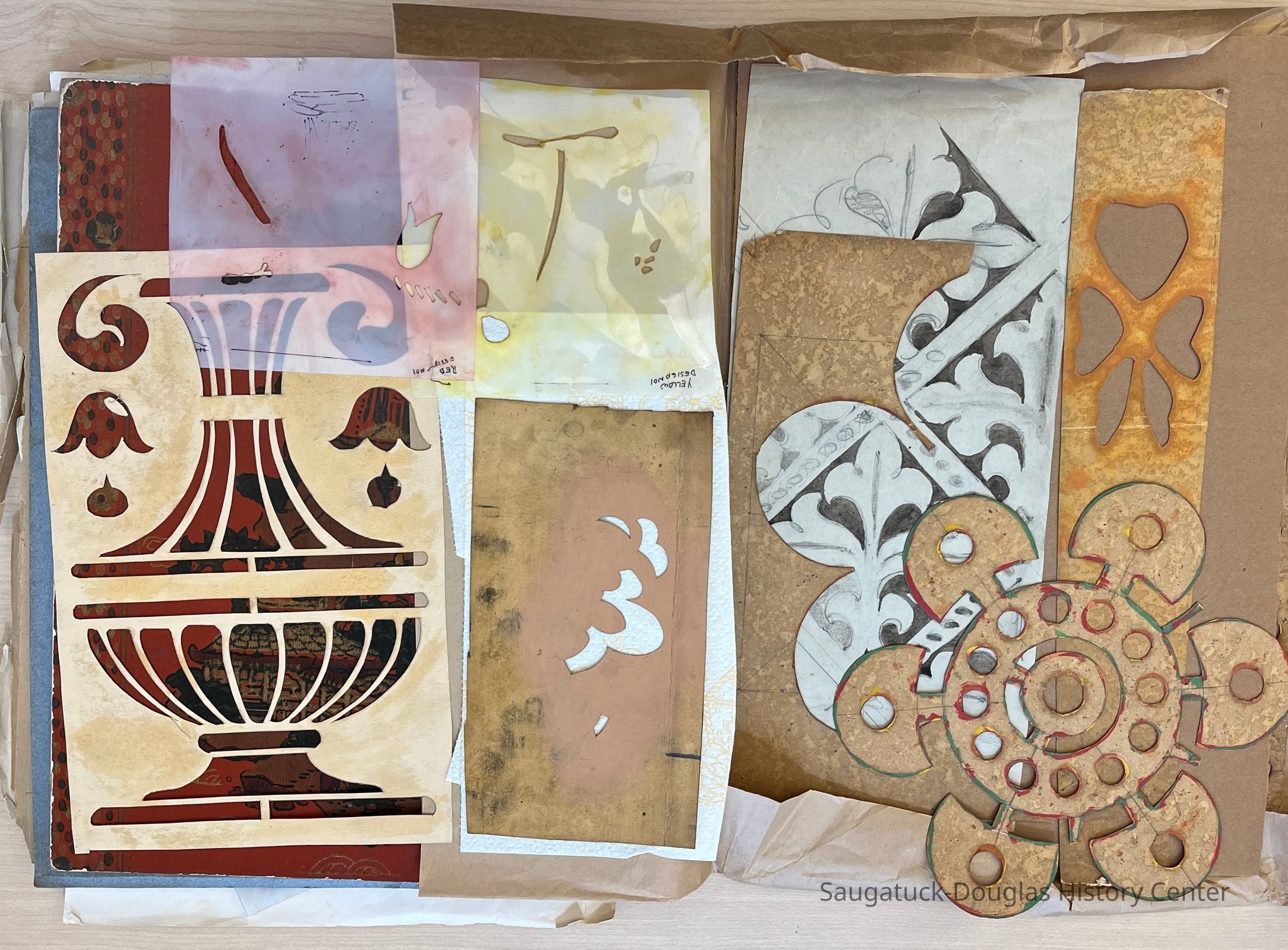 A variety of painting stencils made by Florence Hunn, used to decorate the rooms that she designed. She worked mainly out of Chicago.