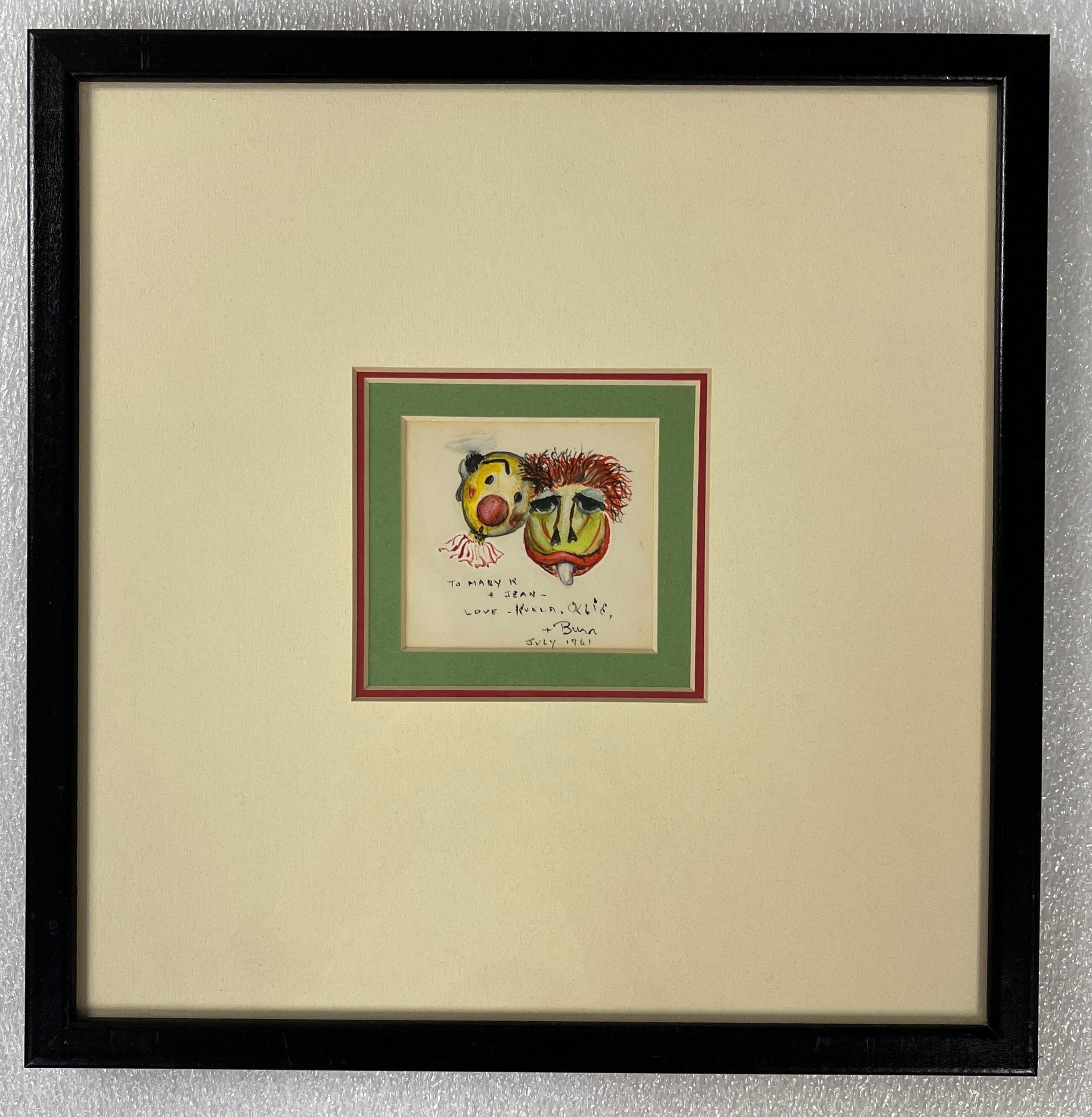 Framed drawing of Kukla and Ollie with the words: "To Mary K and Jean Love, Kukla, Ollie and Burr, July, 1967”