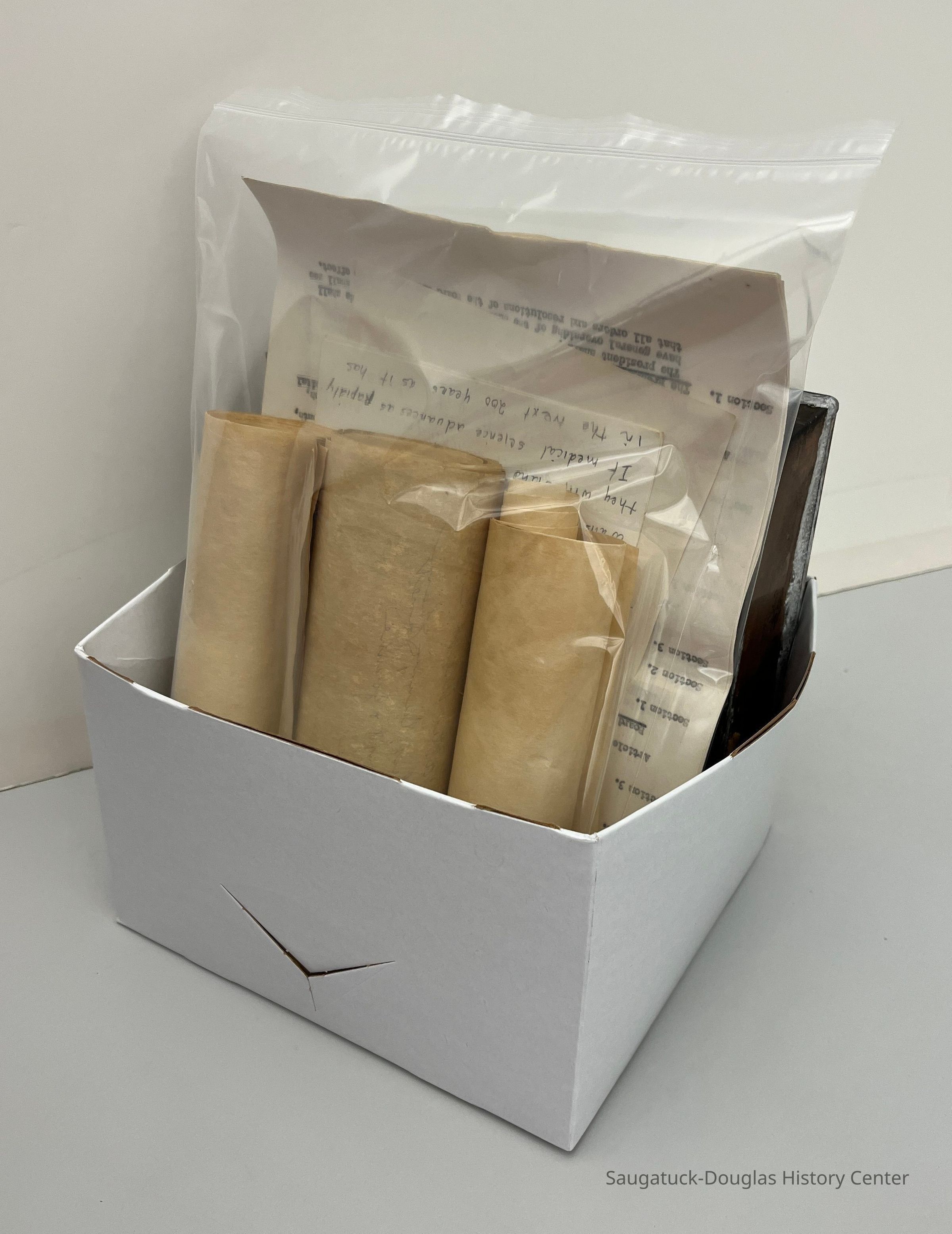 This box of mementos was buried when the hospital construction began in 1958