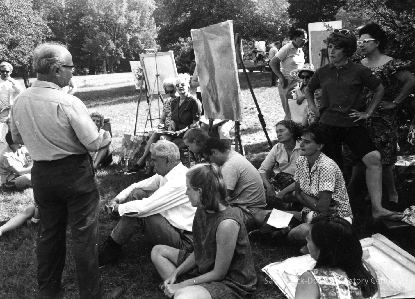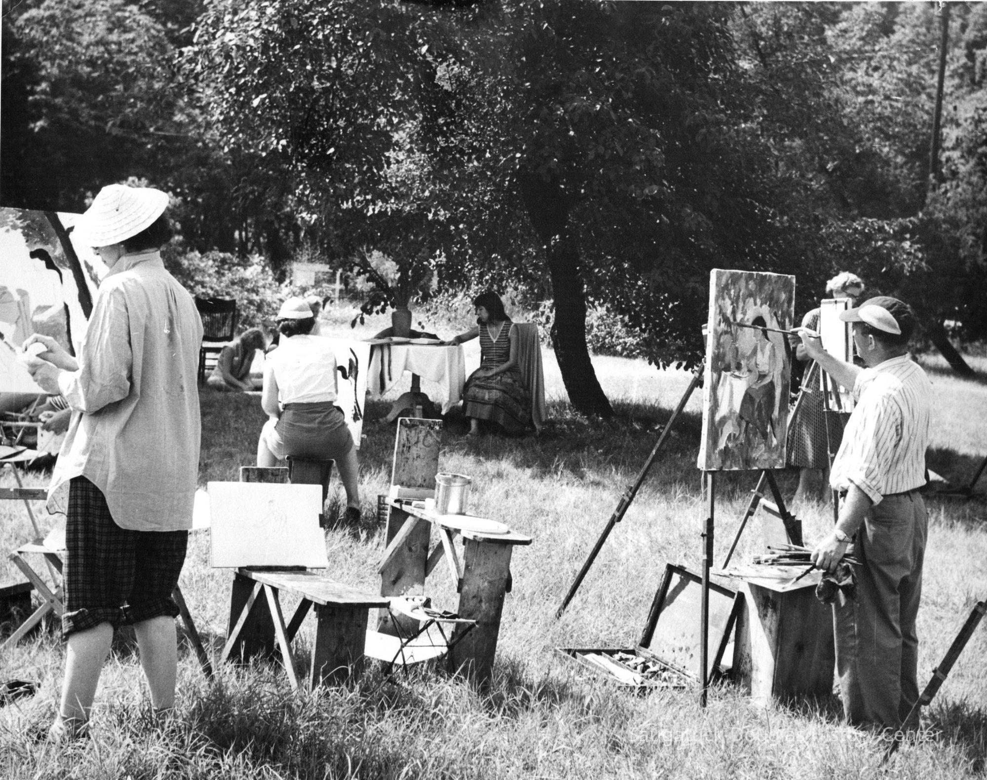 Digital images of Ox-Bow students and staff in classes, painting plein air, at critiques, or enjoying their leisure time.