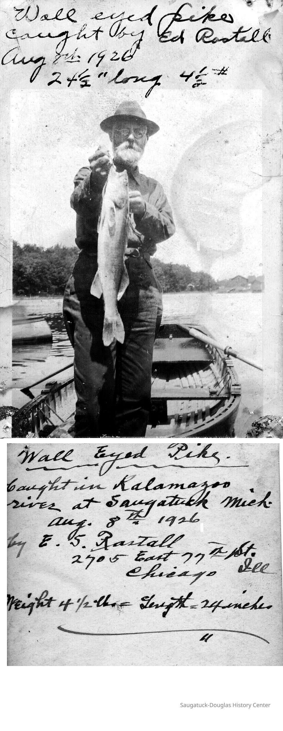 A collection of digital photos pertaining to Bert Rastall, a Saugatuck fisherman. The original, physical, photos are the property of Bert's daughter Rita Rastall. Many shots of Ed Rastall showing off his catches of fish. The family had both leisure/recreational fishermen and commercial fishermen.