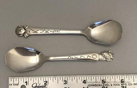 Two childrens spoons. 5.5" One with an illustration of Kukla and one with an illustration of Ollie embossed on the handels. The spoons were made by Wallace Brothers Plate