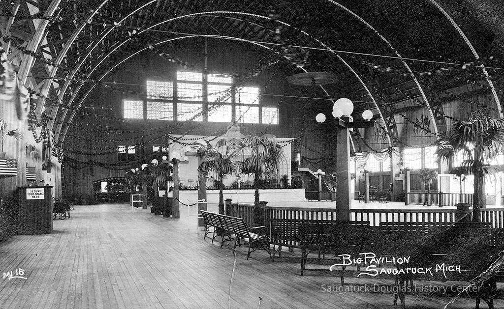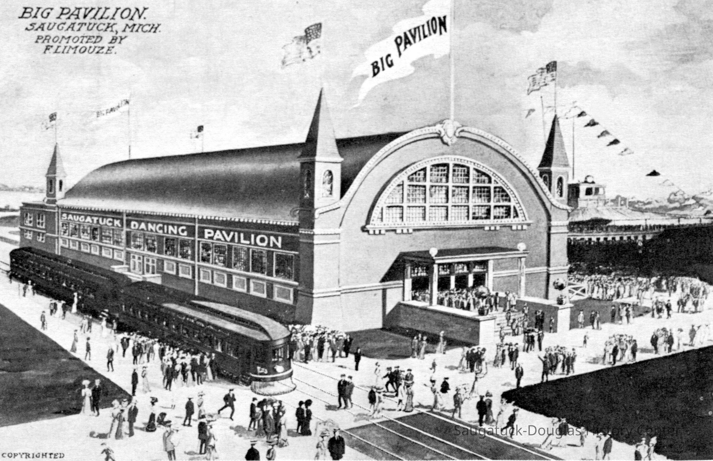 FIRST LIGHT In an area rich with gems of the past, the Big Pavilion story is the crown jewel. The Pavilion’s mere existence evokes superlatives. Impossible, marvelous, largest, brightest, unforgettable, famous and finally tragic are just a few. The Pavilion defined the Saugatuck area from 1909 to 1960 and made the resort business major league. In an era of small town summer pavilions the “The Brightest Spot on the Great Lakes” was king. The historical tale of the Pavilion is best understood by recounting changes that occurred in the area. By 1905, lumbering, tanning, ship building and fruit growing had peaked and were going-going-almost gone. But the beautiful and glorious Saugatuck location on river and lake -—a quick boat ride from burgeoning Chicago—were newly discovered and appreciated. Saugatuck sported a new municipal water system and electricity was just around the corner. The interurban brought visitors from the north and east. The new Leiendecker Inn and the Butler Hotel graced the waterfront. Opportunity was a knocking. By the fall of 1905 Frederick Limouze--a man with big ideas—had found what he was looking for and began to knock. The real story is thin of hard facts but logical clues abound. The Commercial Record broke the story with the headline: “SAUGATUCK HAS SECURED BIG PRIZE”. The story related, “Mr. Limouze of the North Shore Company and Mr. H. H. Engle of South Haven purchased Monday the dock property owned by Roger E. Reed and Alfred S. Taylor. The property is one of the choicest locations in Saugatuck and is in the heart of the village. The property consists of one square block having a frontage of over 300 feet and a depth of over 20 feet of water. It is now the landing of the John A. Aliber. The property is now occupied by Mr. Reed as a coal yard and also the waiting room of the terminal electric road. A new pavilion will be erected on the site by the first day of May, next, and will be put on a much grander scale than the one now built in South Haven”. Mr. Limouze and others (probably including H. H. Engel) had just completed the North Shore Pavilion dance hall which was built in less than a month on the lakeshore in South Haven. The involvement of Limouze and Engle in its operation is unknown. It burned in 1913. The Saugatuck coal yard property consisted of four city lots in the area between The Butler Hotel (now the Butler restaurant) and Leindeckers (now the Coral Gables). Per the 1907 tax assessment roll this property was owned by H. H. Engle & Co., so he probably supplied capital to purchase the land. Frederick Limouze appears to have been the sparkplug and the promoter. Census records show that he was born in 1856 in New Jersey – his father was a barber and a French immigrant. In the 1900 census for Chicago Mr. Limouze is single, engaged in real estate and residing in a boarding house. By 1910 he had come up in the world – the Federal census of Chicago for that year has him married to Emily, age 35, and owning a home without a mortgage. His occupation is listed as promoter of pavilions. Some time passed before Limouze, Engle and others formed the Saugatuck Amusement Company. Finally in 1909 they were ready for their first move. In March of that year the Commercial Record reported; “In an interview with Mr. Frederick Limouze of California, he tells of the immense pavilion he and his associates are about to commence on the dock property just south of Leiendecker’s Inn”. Stay tuned… By Jack Sheridan Thanks goes to Kit Lane and her book “Saugatuck’s Big Pavilion: The Brightest Spot on the Great Lakes”. It is available from the Historical Society and at most local book stores.