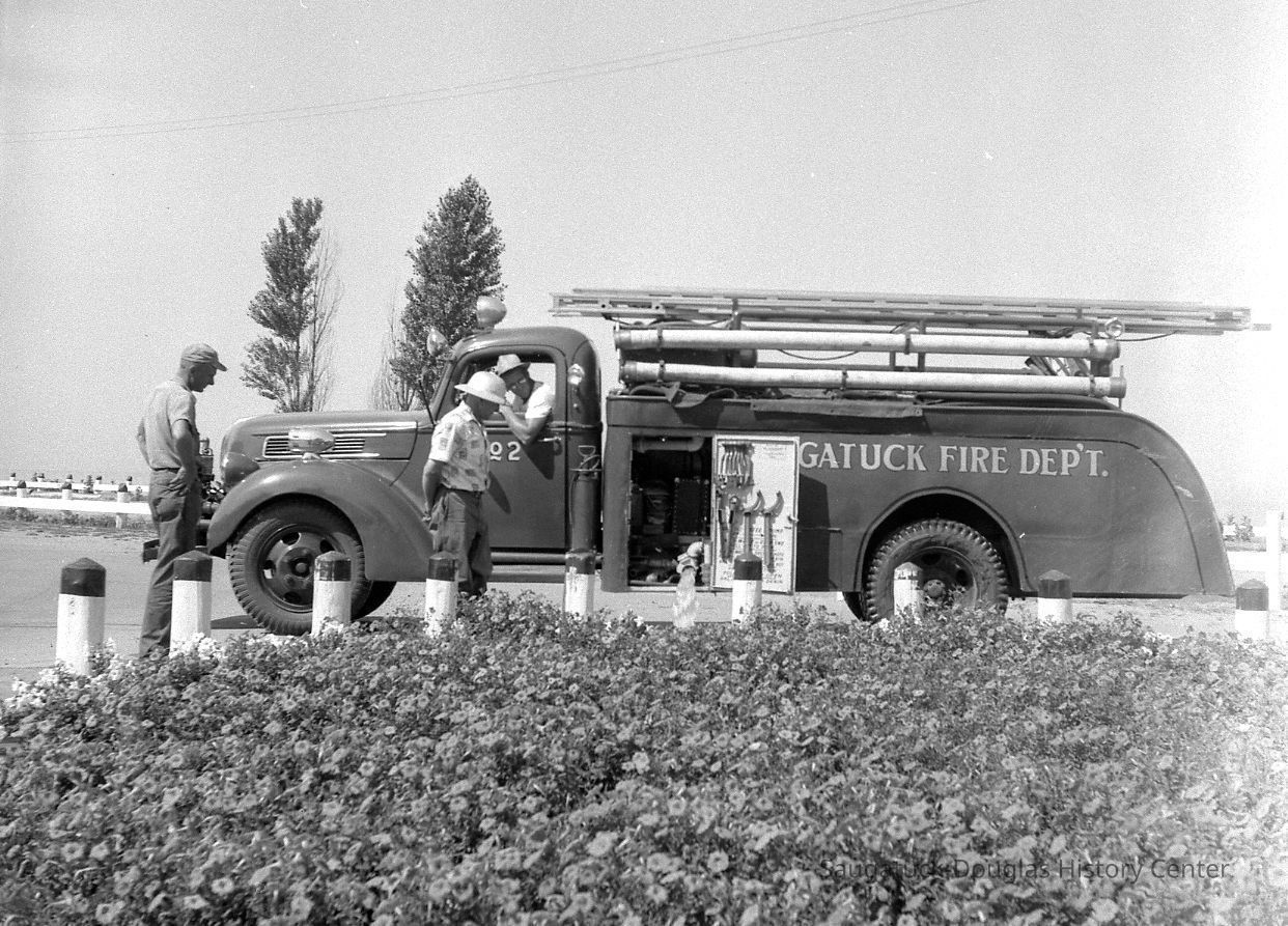 711 0/8 Saugatuck - Beach 1957 Fire truck watering petunias