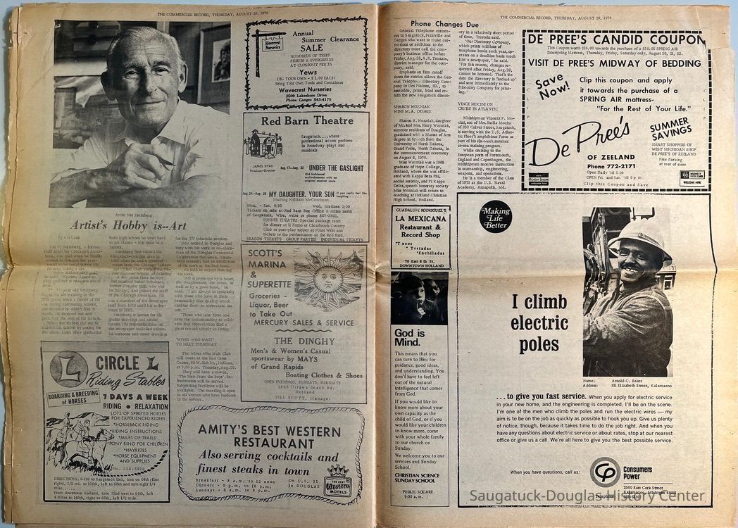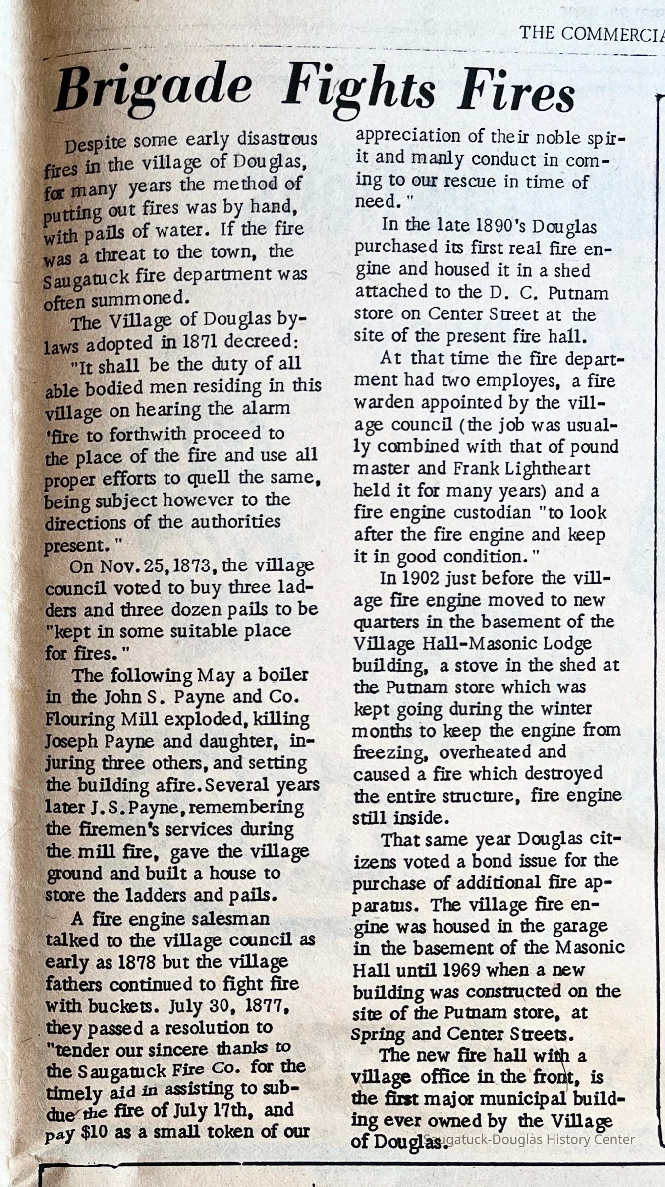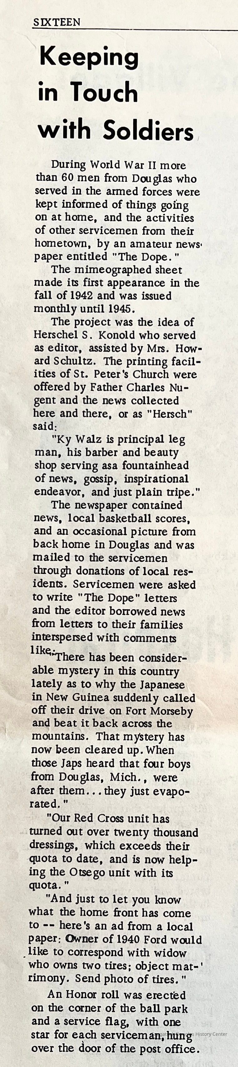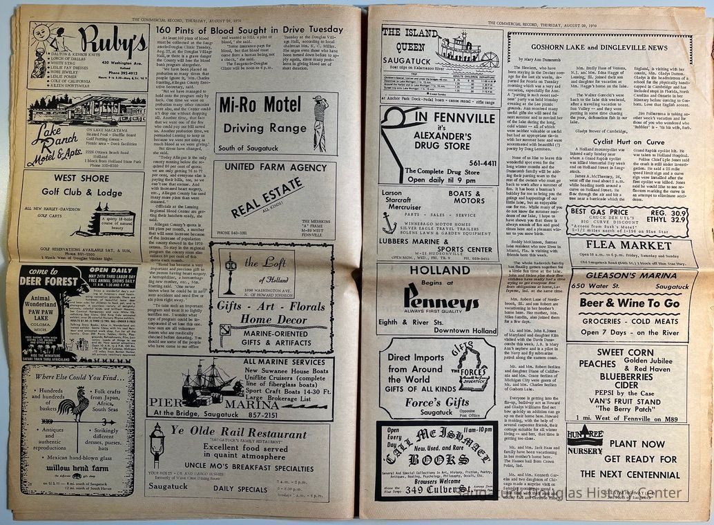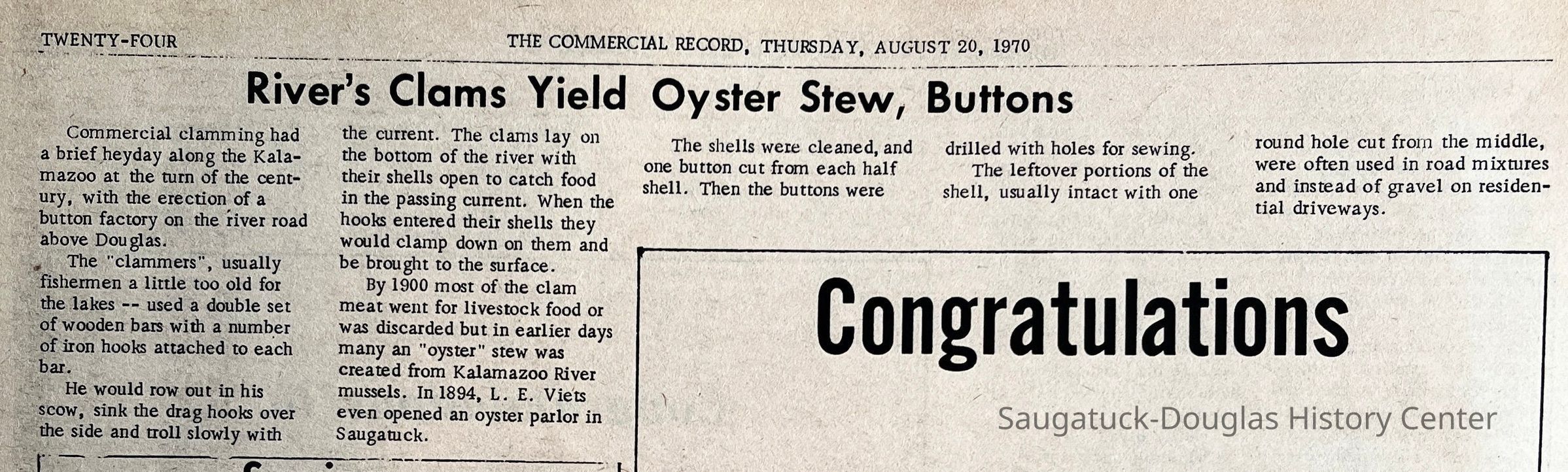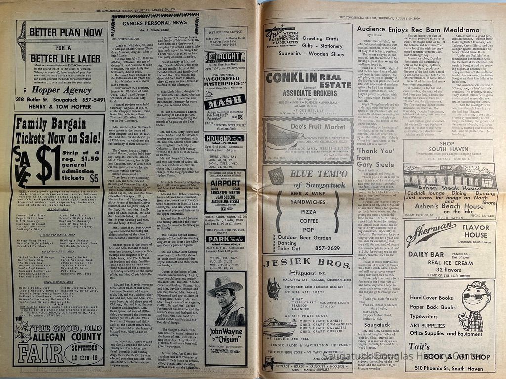 NewspapersDouglas, government1870 Fruit growing, farming, agricultureCommercial businessesTransportation: highway and road infrastructureTransporation: Rail - other than Interurban1875 Basket factoriesEducation and schoolsSports: baseballHospitals, medical care and doctorsMilitary, wars and veteransChurches and religion1880 Tourism steamship era -1930Sports: golfFires and fire departmentsClubs and social organizations1830 Settlement, pioneer era1900 Lakeshore community
