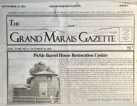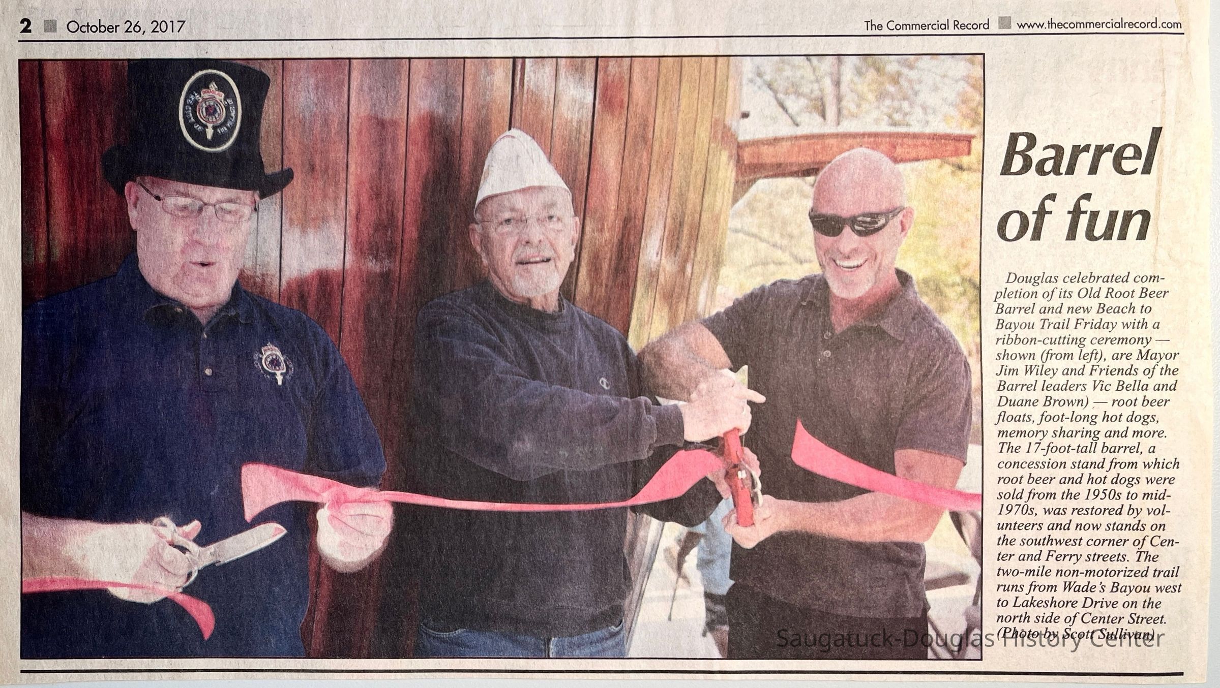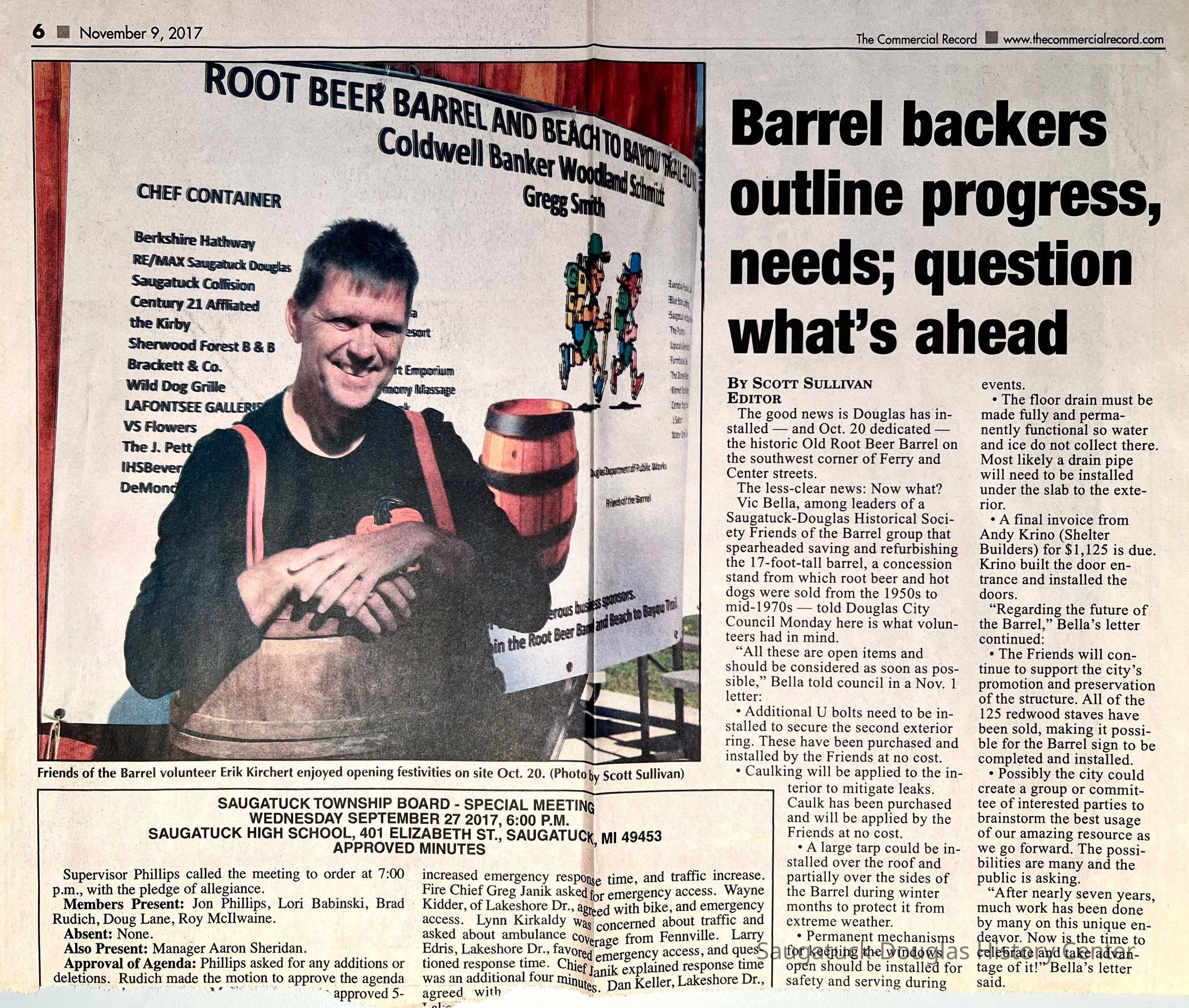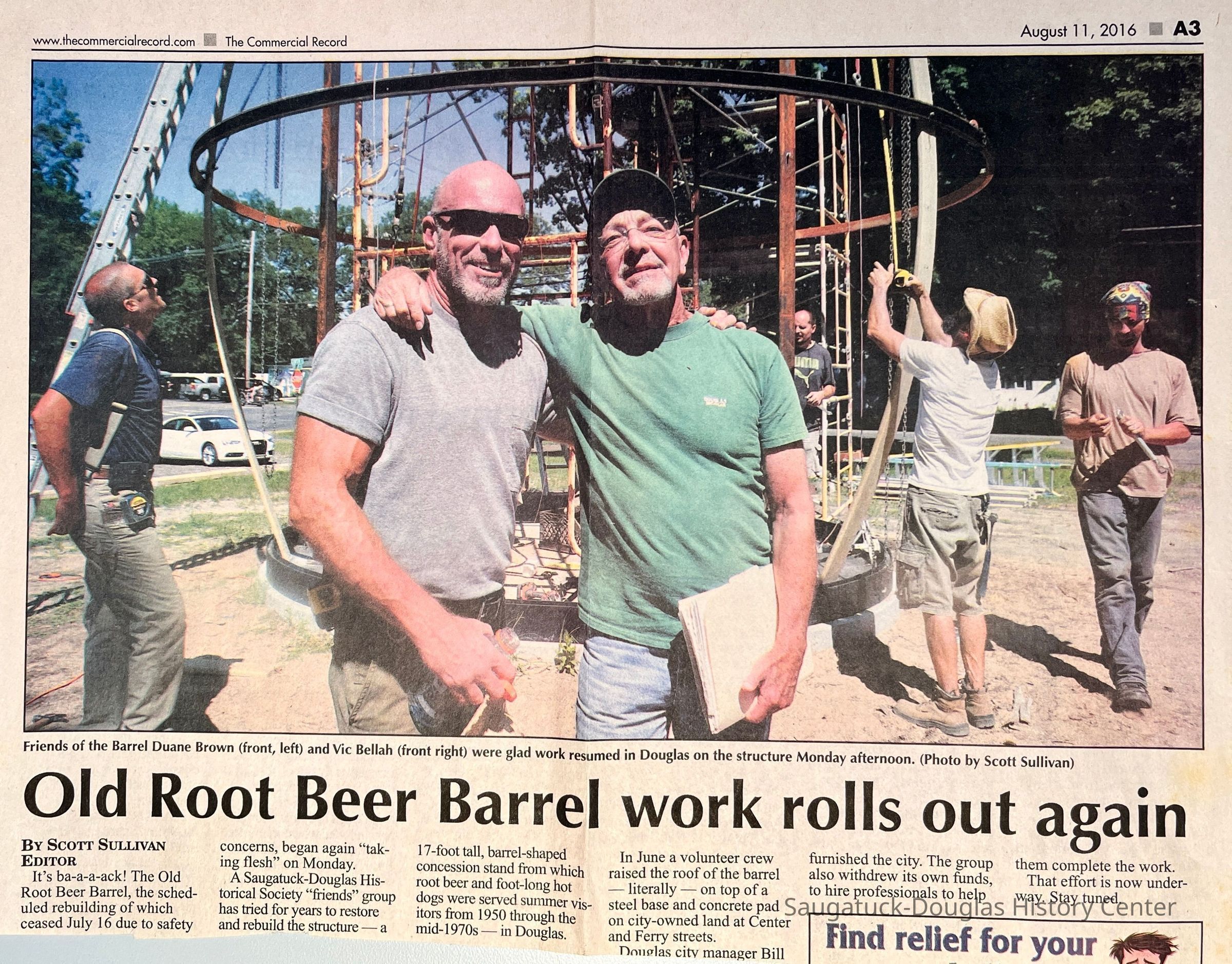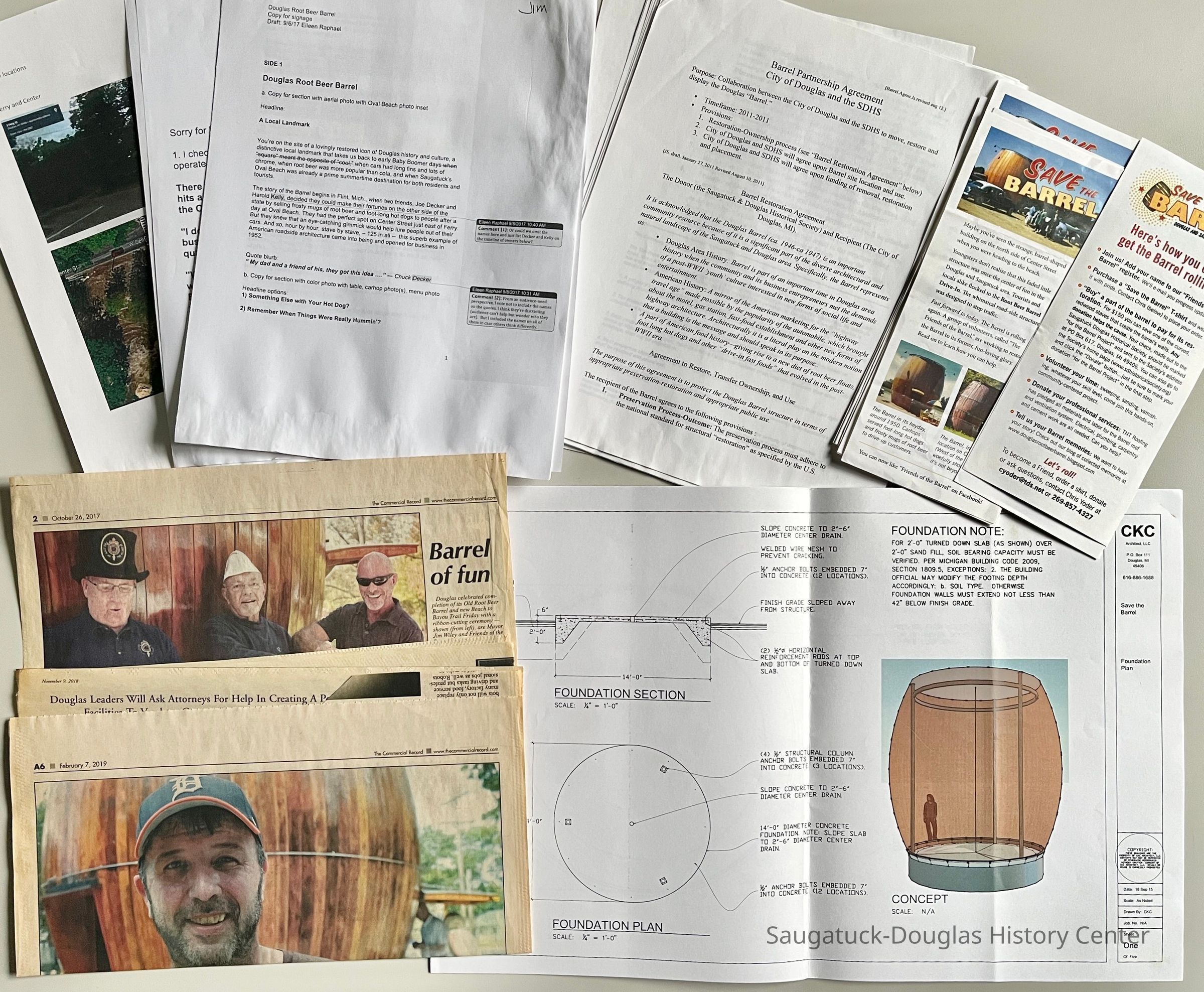 The iconic barrel was dismissed as beyond saving and nearly demolished until community members came together to "Save the Barrel!" This collection was compiled by Vic Bella with additional material from James Schmiechen, Judy Hillman, Chris Yoder, Chuck Carlson, Duane Brown, Brent Birkholz, Dick Lyons, Eric Smith, Greg Harvath, Al Lyon, Sharon Kelly, Bob Sapita, Sally Winthers and "Friends of the Barrel."