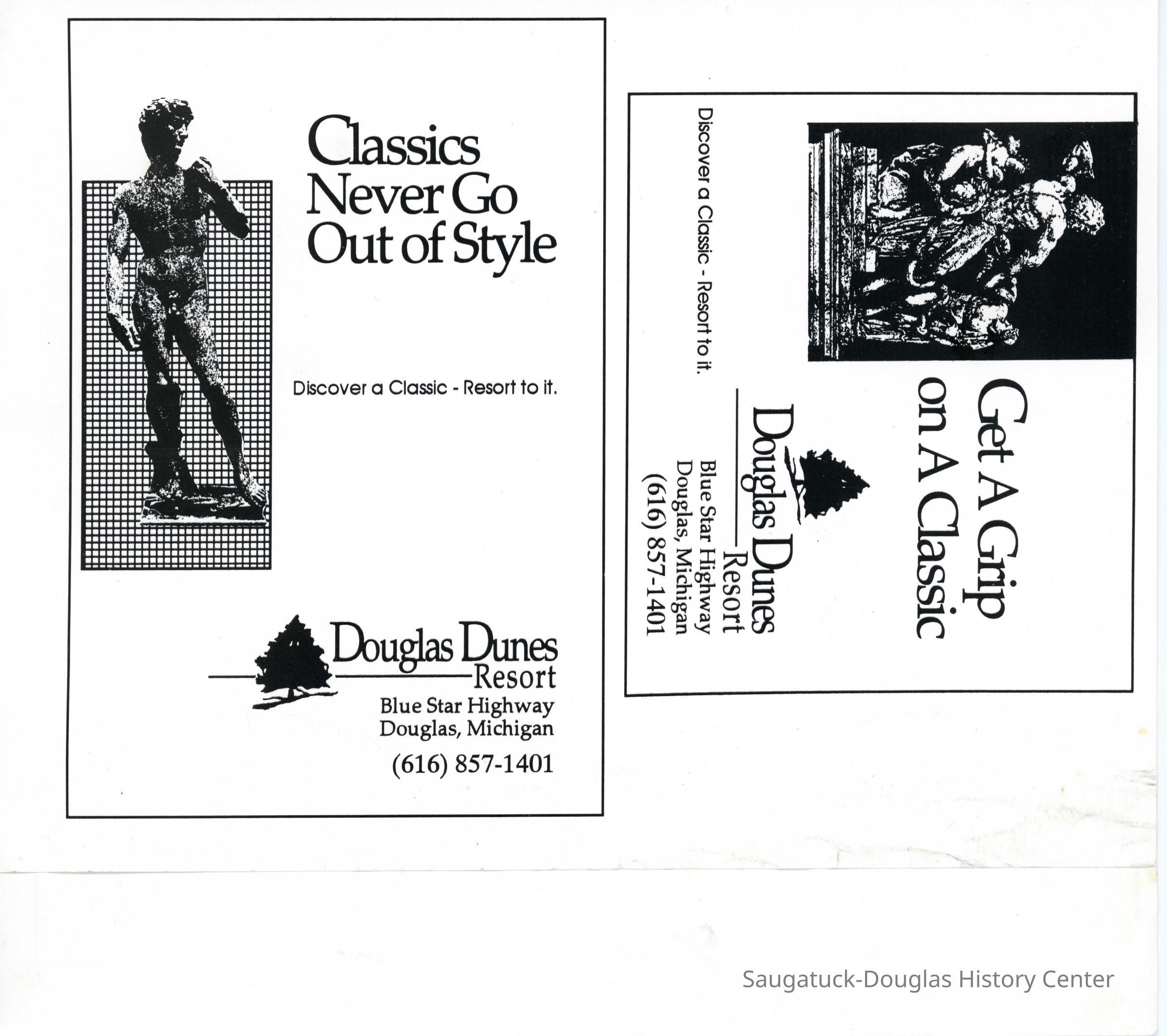 Promotional materials for Douglas Dunes. Materials refer to the Dunes as a classic to resort to.