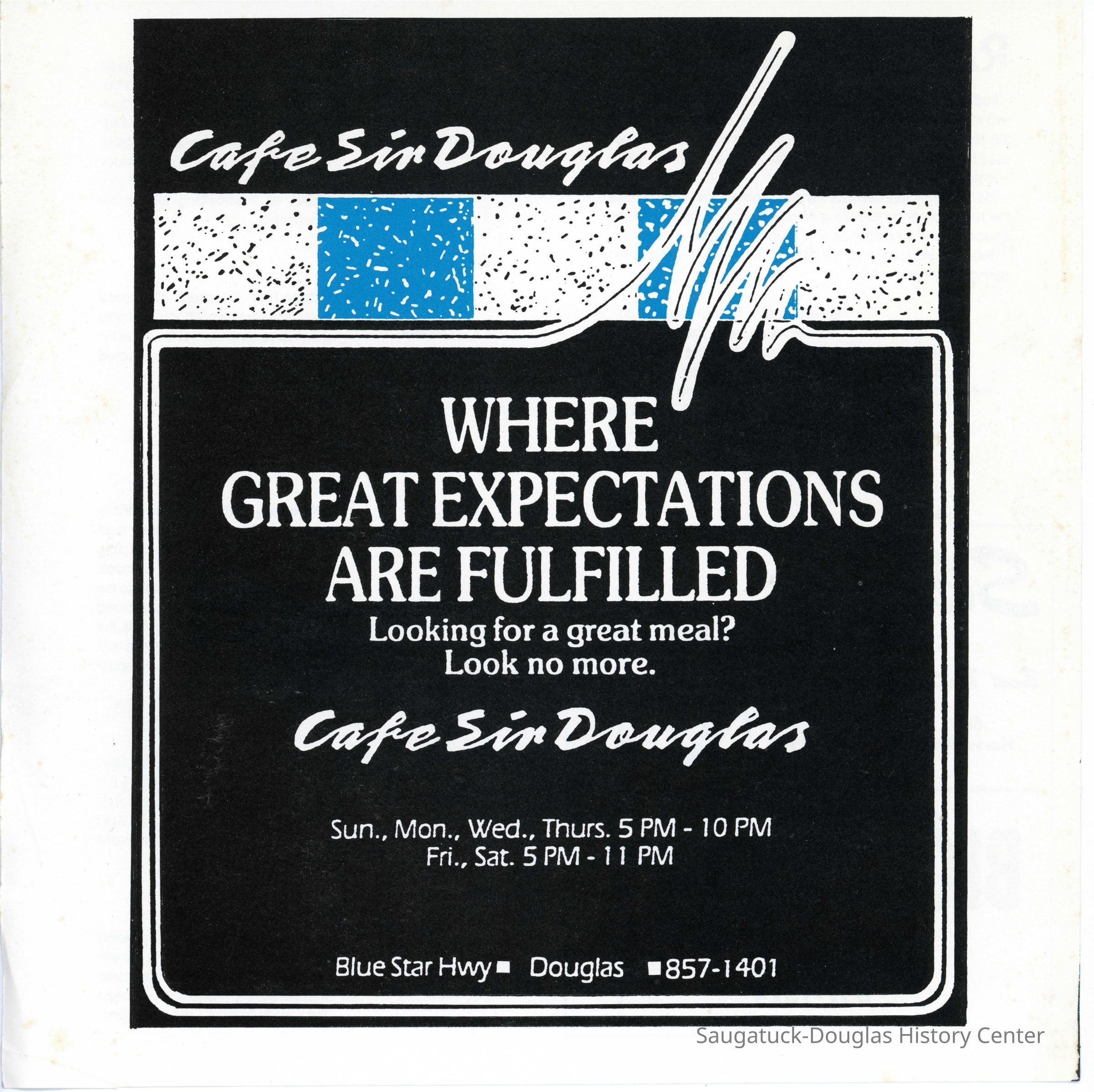 An advertising poster for the Cafe Sir Douglas.