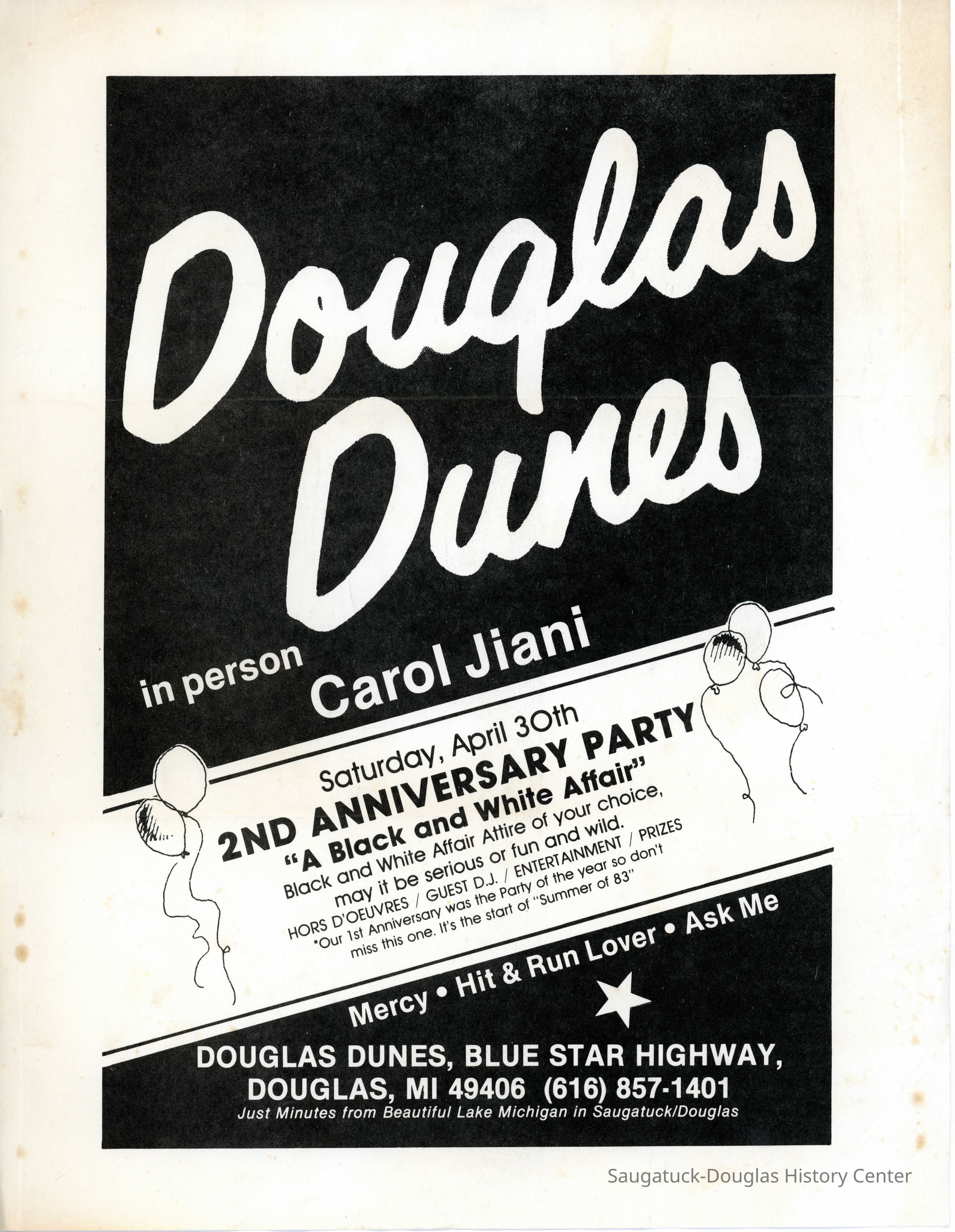 An advertising poster for the Douglas Dunes Second Anniversary Party