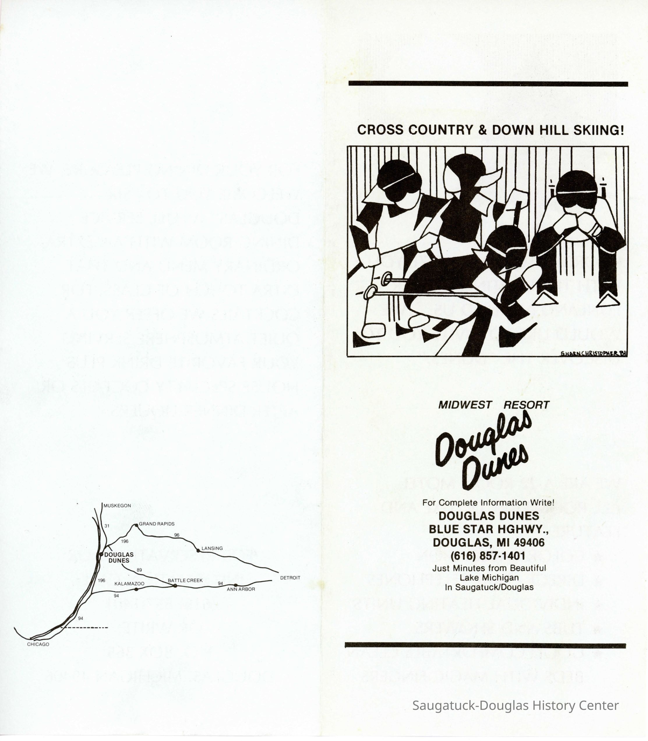 A brochure that explains the cross country and downhill skiing offerings at Douglas Dunes.