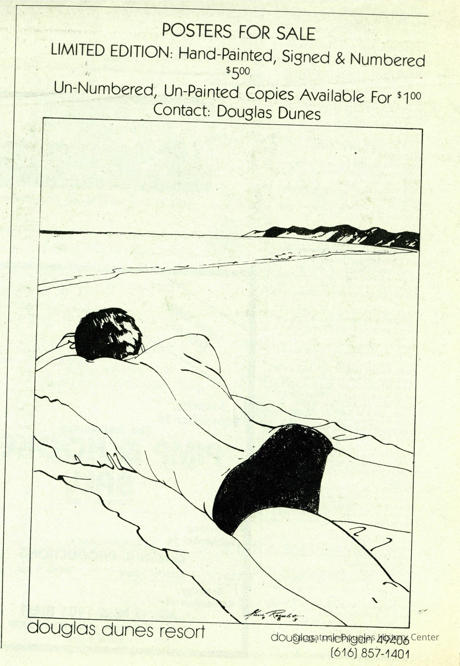 An advertisement for the sale of Douglas Dunes Resort posters