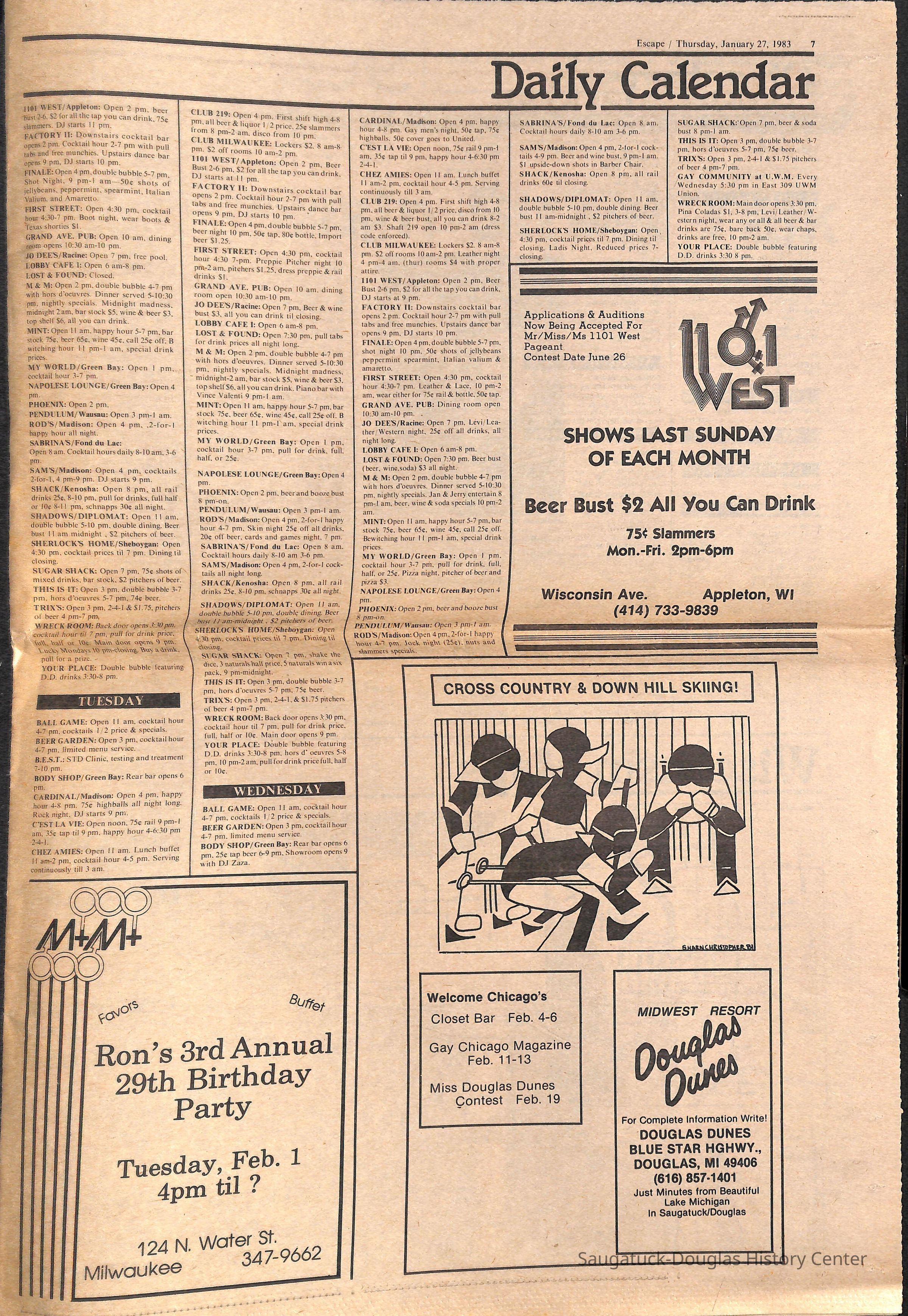 An advertisement in Gay Chicago magazine for a two day get-a-way at Douglas Dunes.