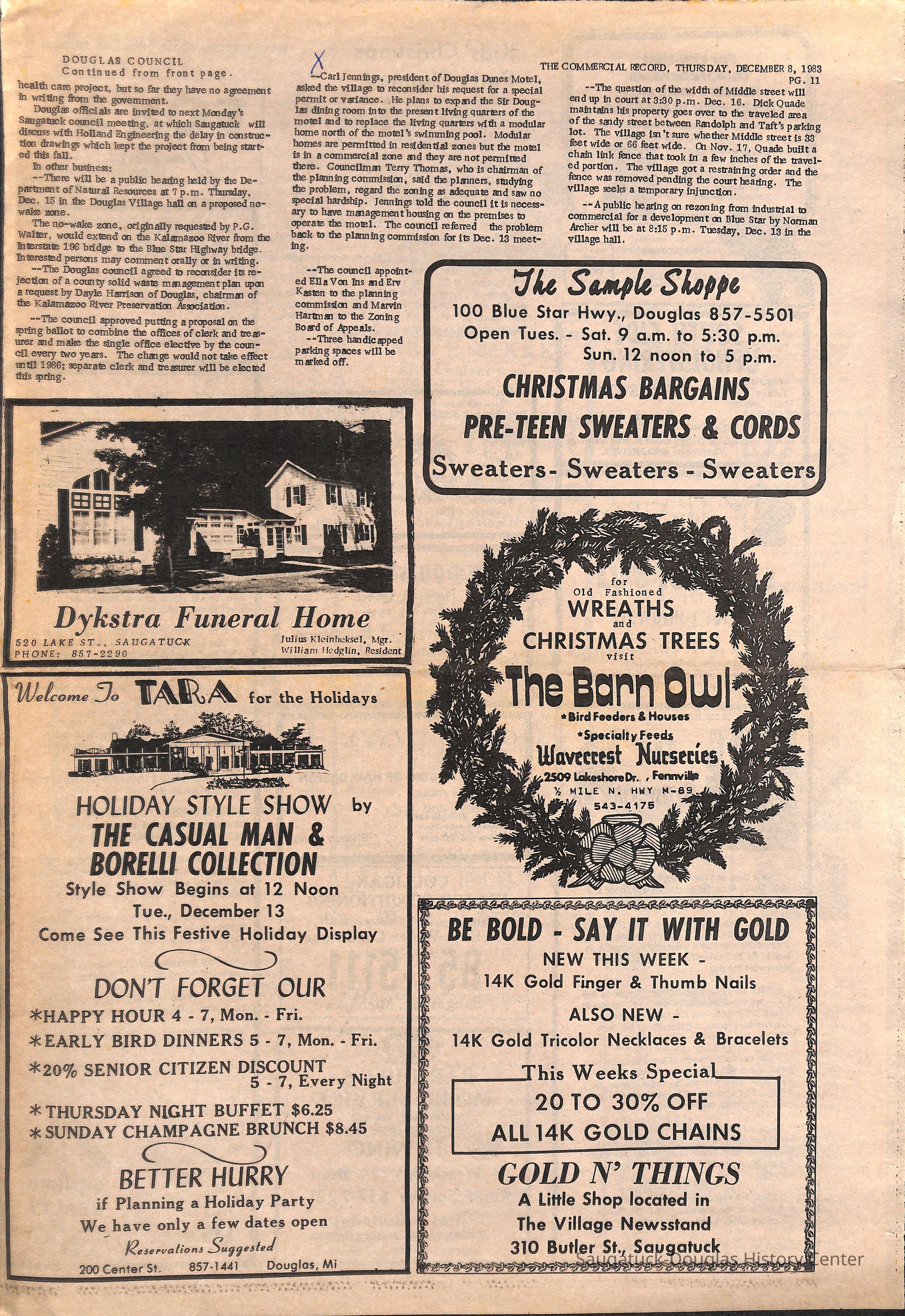An advertisement in Metra magazine for the Douglas Dune's Christmas party with Odessa Brown as Miss Santa Claus.