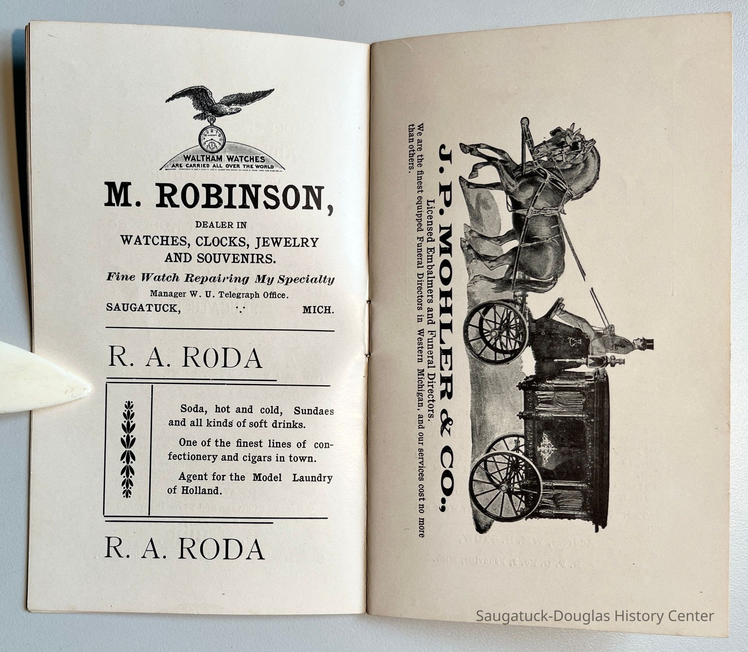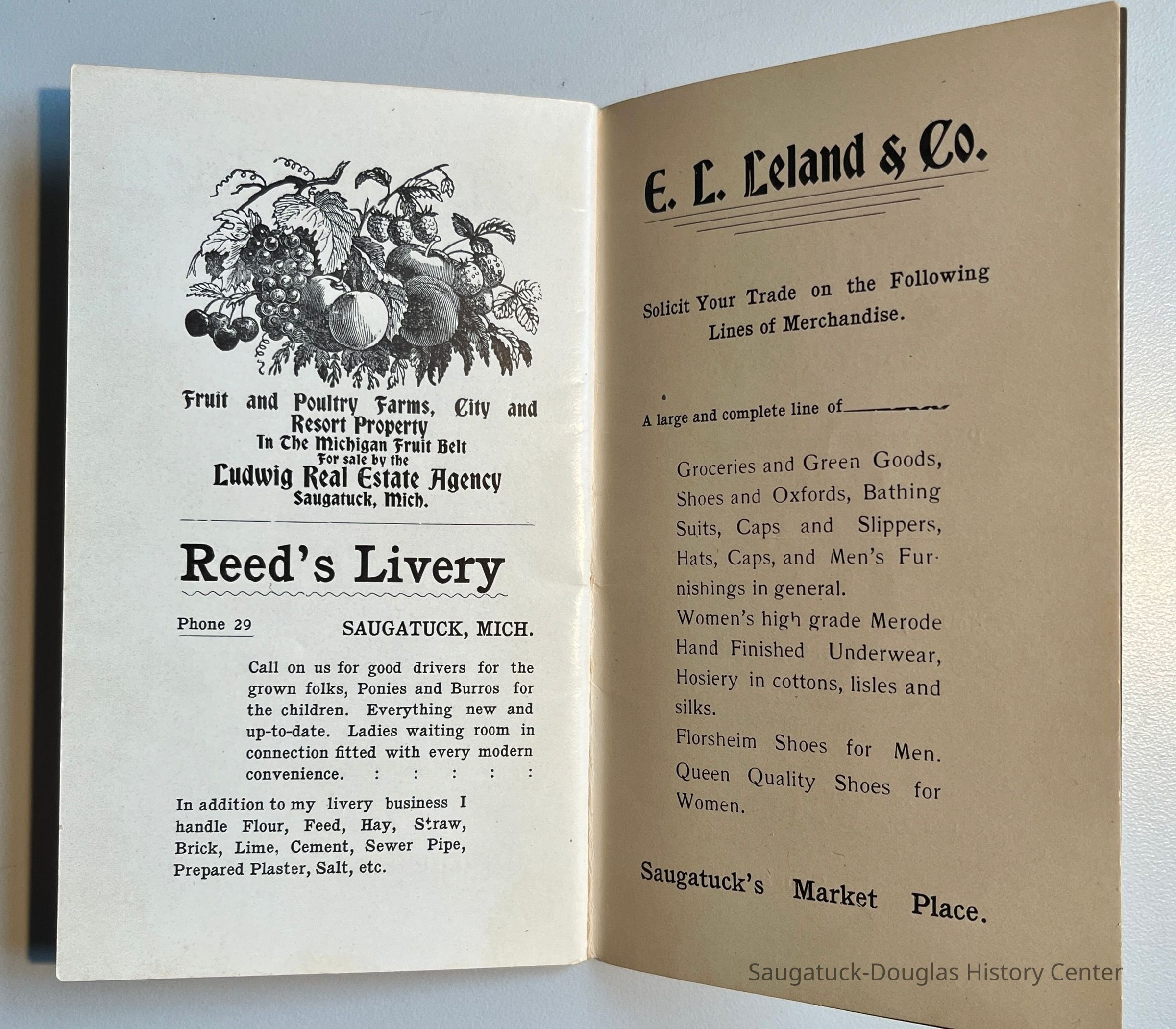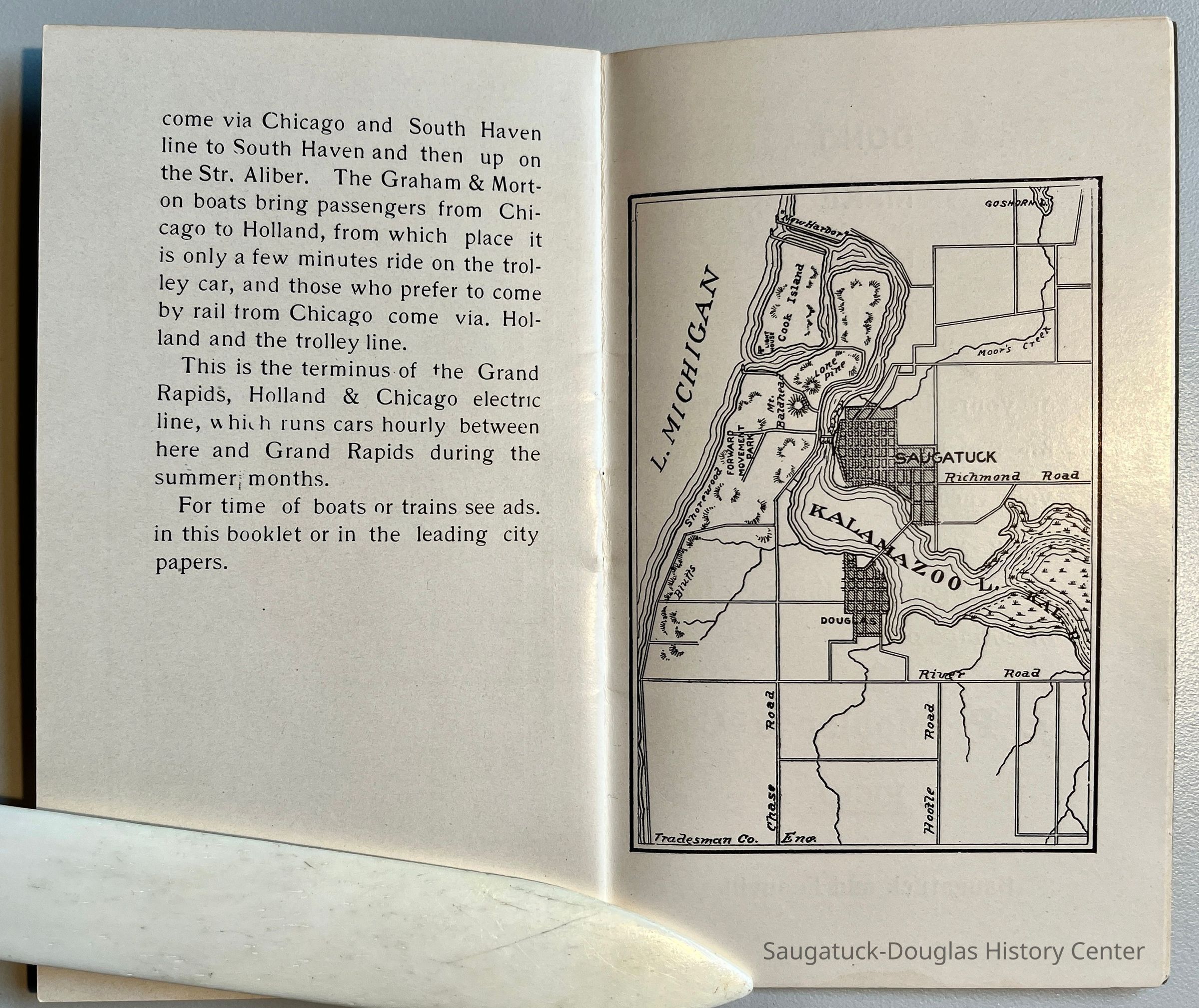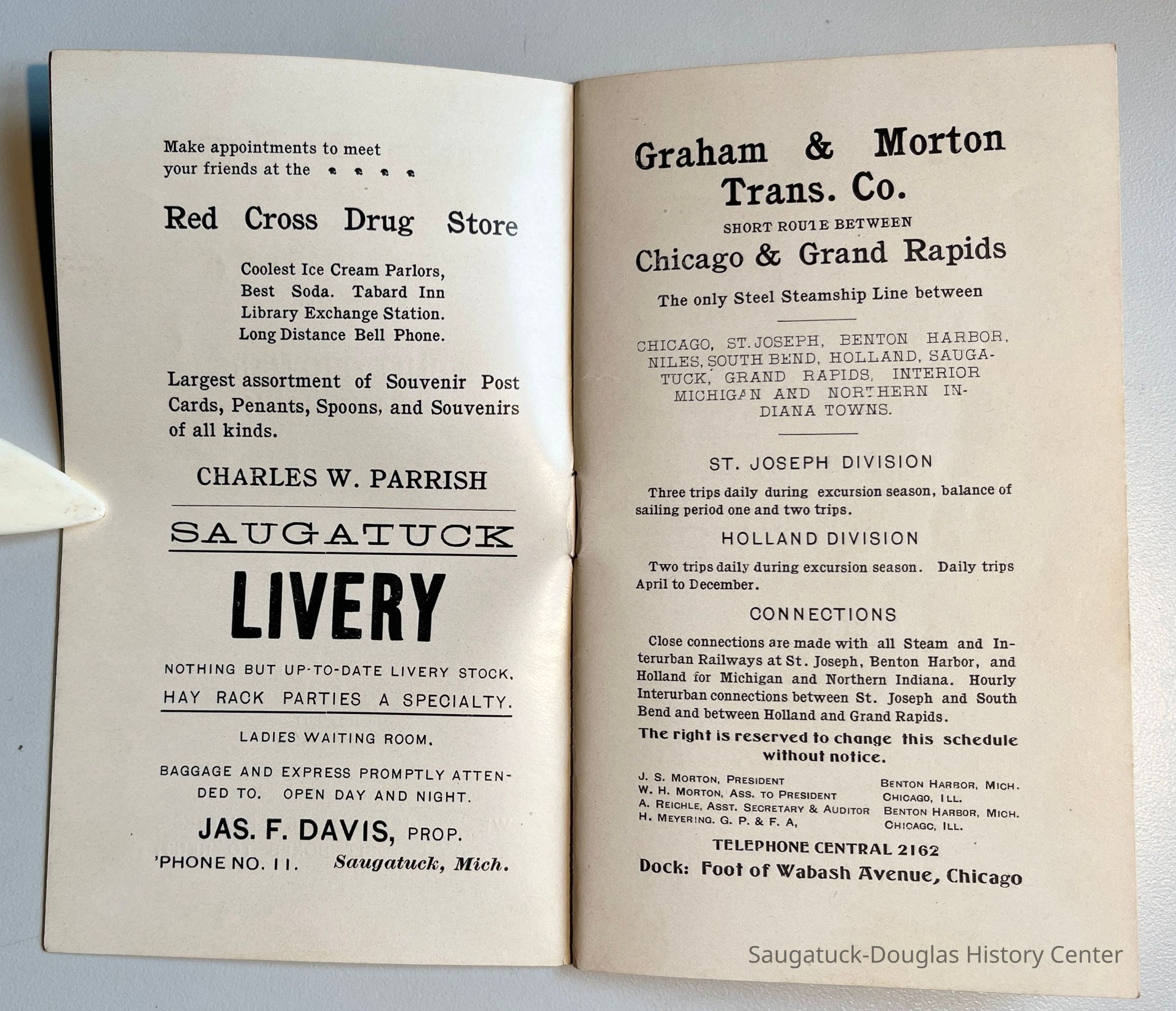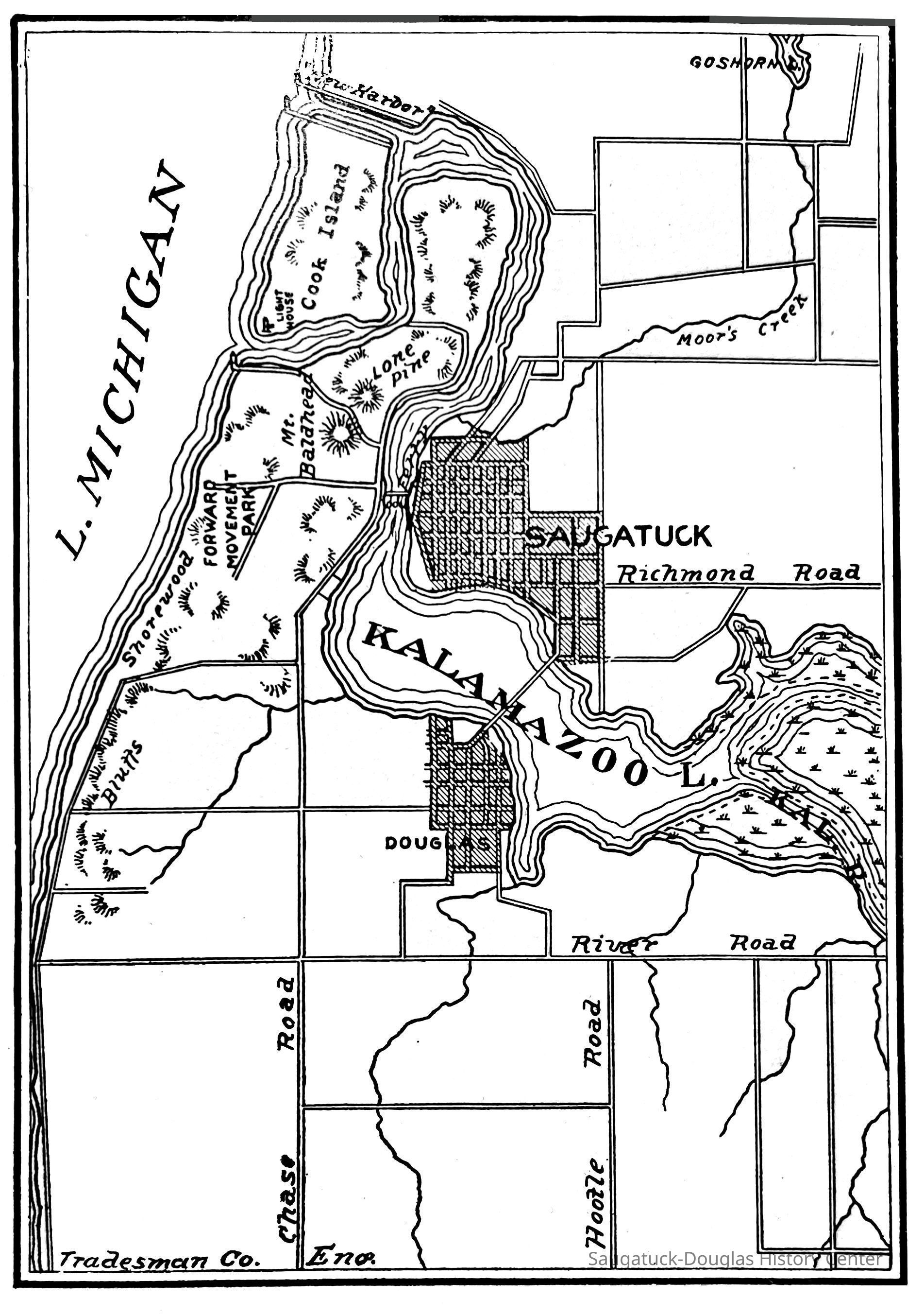 Mize Rose Garden north side/Fruit Growers State Bank/Clapp's Grocery/Flint's Shoes/Walz Meat Market/Griffin/TannerRed Cross Drug StoreDavis Livery/Heath & Stillson livery/Schaberg’s Roller RinkGraham & Morton Transportation Co. 1874-1950Saugatuck Harbor Piers/Channel 1906-presentGriffin & Henry Lumber Yard/Griffin & Henry Sawmill/Griffin & Williams/Stockbridge & Johnson/Wells & Johnson/M.B. Spencer Mill317 Butler/Saugatuck Gallery/Singapore Bank Book Store/Kozy Koffee/Variety Shop/Aliber Grocery/Moore BuildingAliber, James Amos 1853-1920Bird, Harry Moffat 1877-1914326 Butler/Grins/Martha Shop/Dr. Walker's office/Miller Robinson/Turell BuildingRobinson, Miller 1859-1940Roda, Richard August 1875-1940202 Butler/Pumpernickle's/Carl's AG/Richard Roda's Billiard Hall/Union Hotel 1870Presbyterian Camp/Camp Gray/Forward Movement Park 1899-2014Saugatuck Harbor Natural Area/South Denison Property/Gay/Nude Beach;J.P. Mohler & Co.Upham, Sherman D. 1858-1940Brilliant Bakery and Lunch Room306 Butler/Landsharks/Tripp's/Kruger's/C.E. Bird's/Ensign Drug Store/Wilcox BuildingCommercial Record newspaper, TheWalz, Fritz "Fred" 1858-1934439 Butler/Butler Pantry/Wilkins/Koning/Nies HardwareLudwig Real Estate Agency119-121 Butler/Leland's Department Store Building 1907Leland, E.L. "Lee" 1878-1963246 Culver/Restaurant Toulouse/Reed's Livery/Union HouseGoshorn, George Washington 1868-1934Mount Baldhead Dune/ParkPottawatomie Club c1906