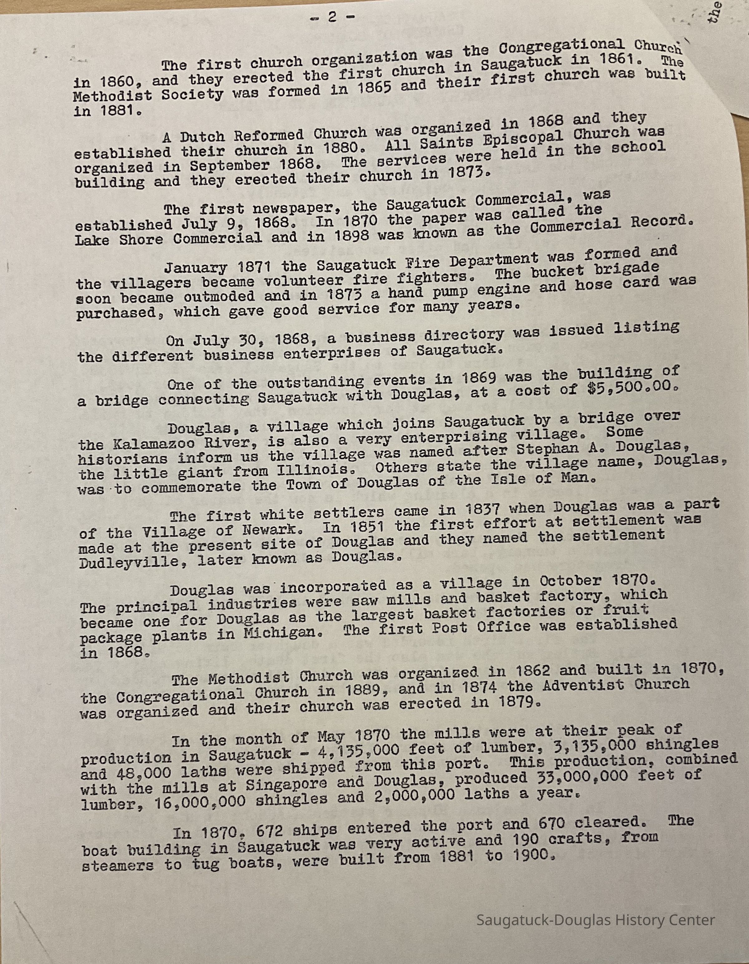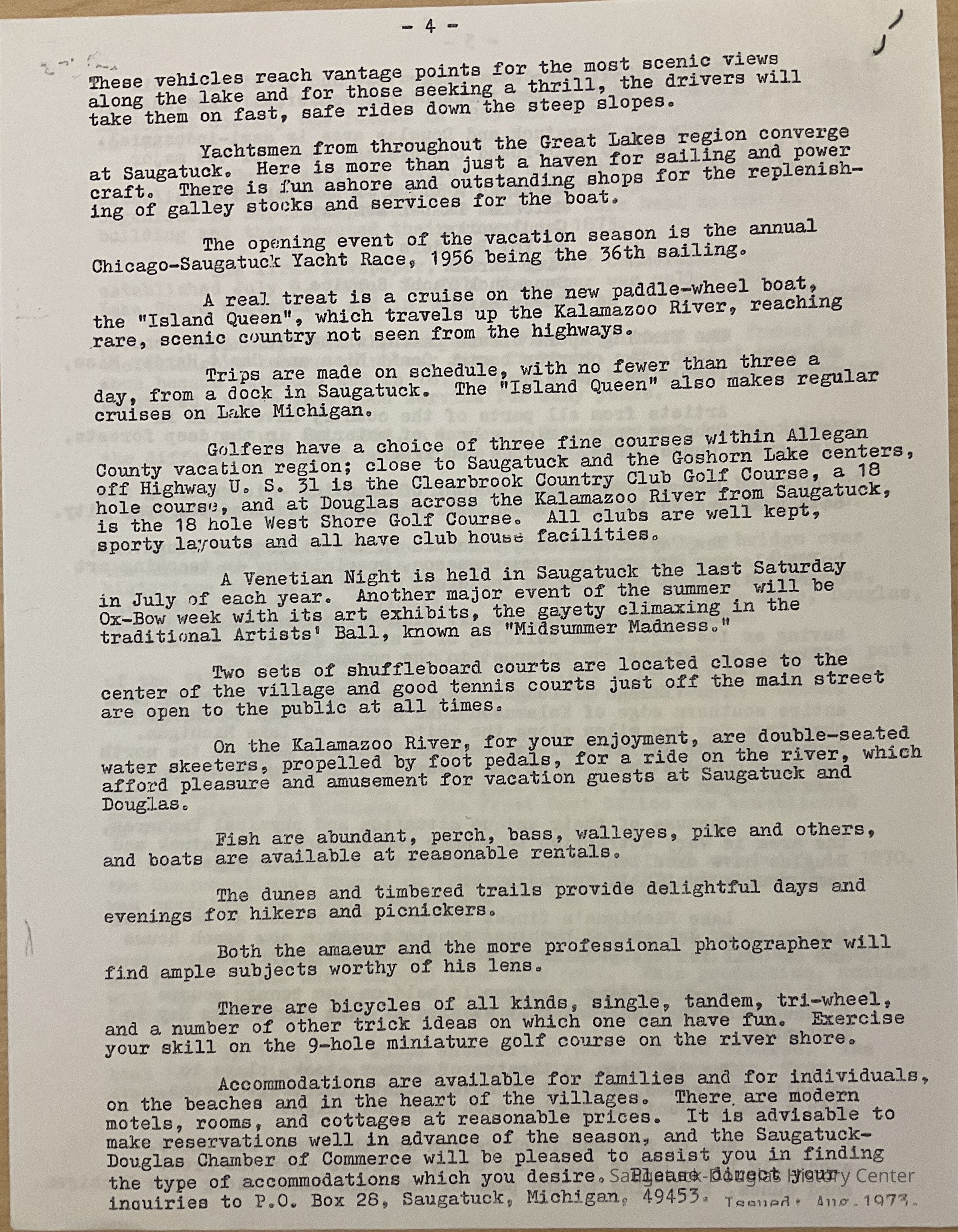 Saugatuck History article by the Chamber of CommerceSaugatuck History