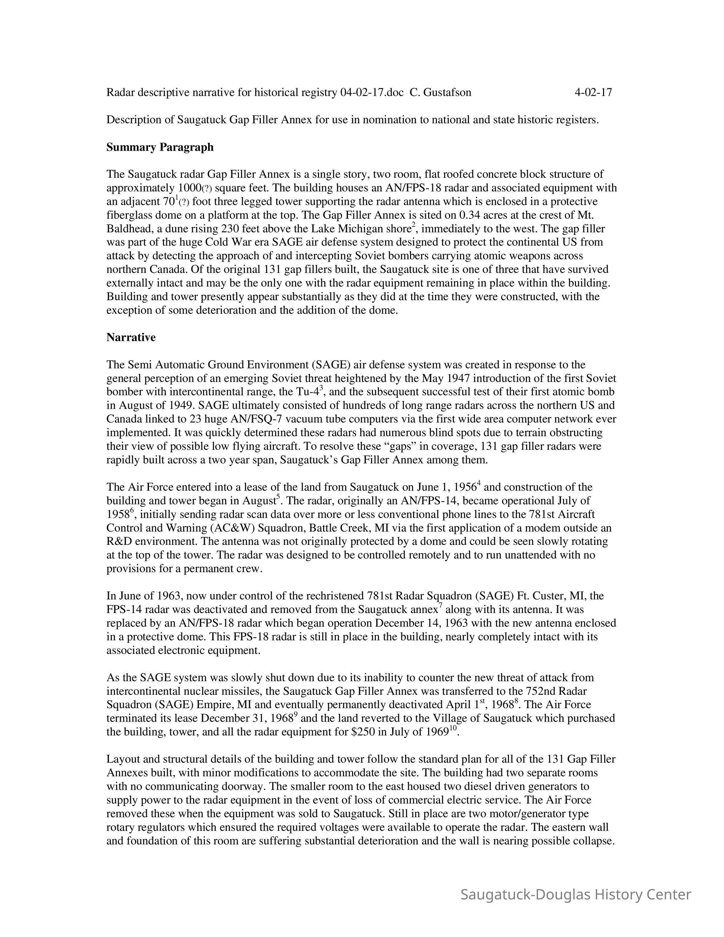 The module is a part of the FST-1 Coordinate Data Transmitter that sent the radar data from the Mt. Baldhead Gap Filler Radar Station down phone lines to the Fort Custer Direction Center in Battle Creek. The module was part of the first radar digital signal processing unit and first modem used in an actual application. From the radar cabinet panel from the SDHC Cold War/Hot Towns exhibit (2017-18): "This FST-1 power supply cabinet was removed from the Mt. Baldhead Gap Filler Radar Annex in the 1980s. It includes components from the AN/FST-1 Coordinate Data Transmitter. The FST-1 sorted radar data to distinguish legitimate targets and transmitted the radar data down telephone lines in the first-ever use of a modem outside a research environment. The heart of the AN/FST-1 was a RCA 6499 Radechon barrier grid tube, a state-of-the-art memory device which, like the modem, was made available mere months before deployment in the FST-1."