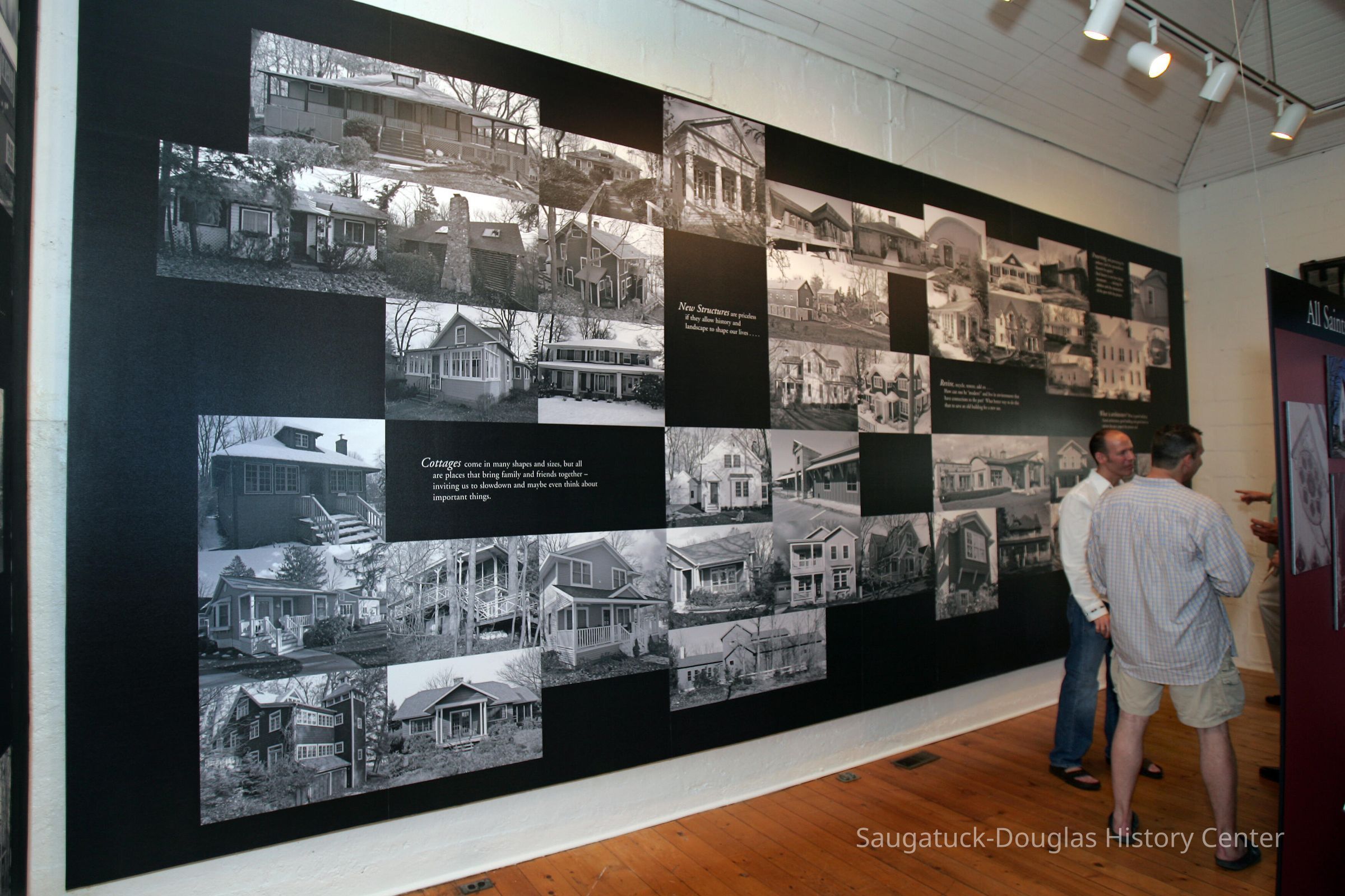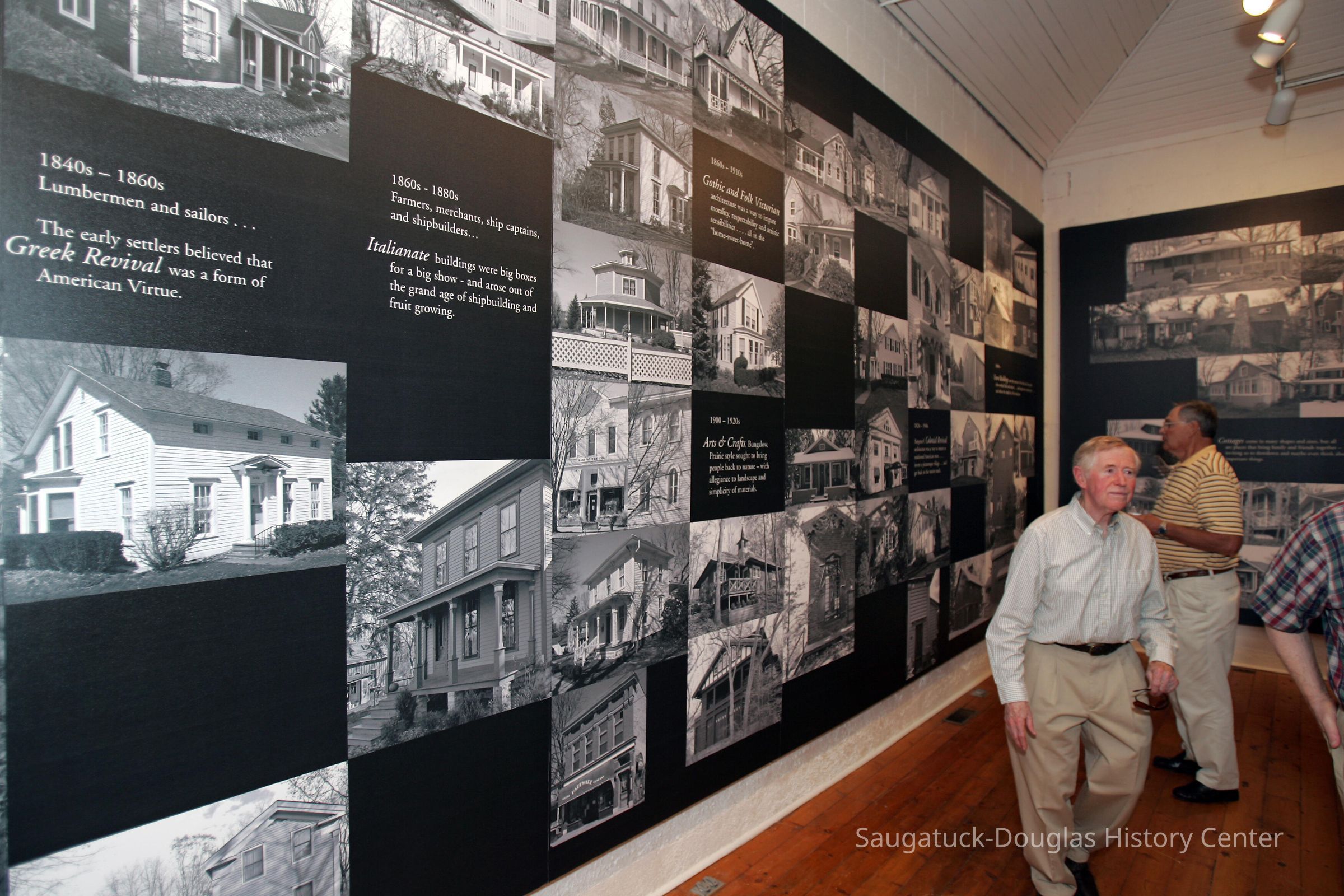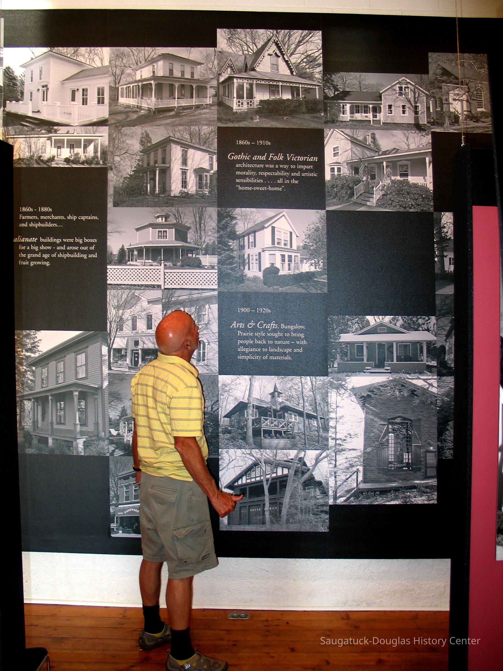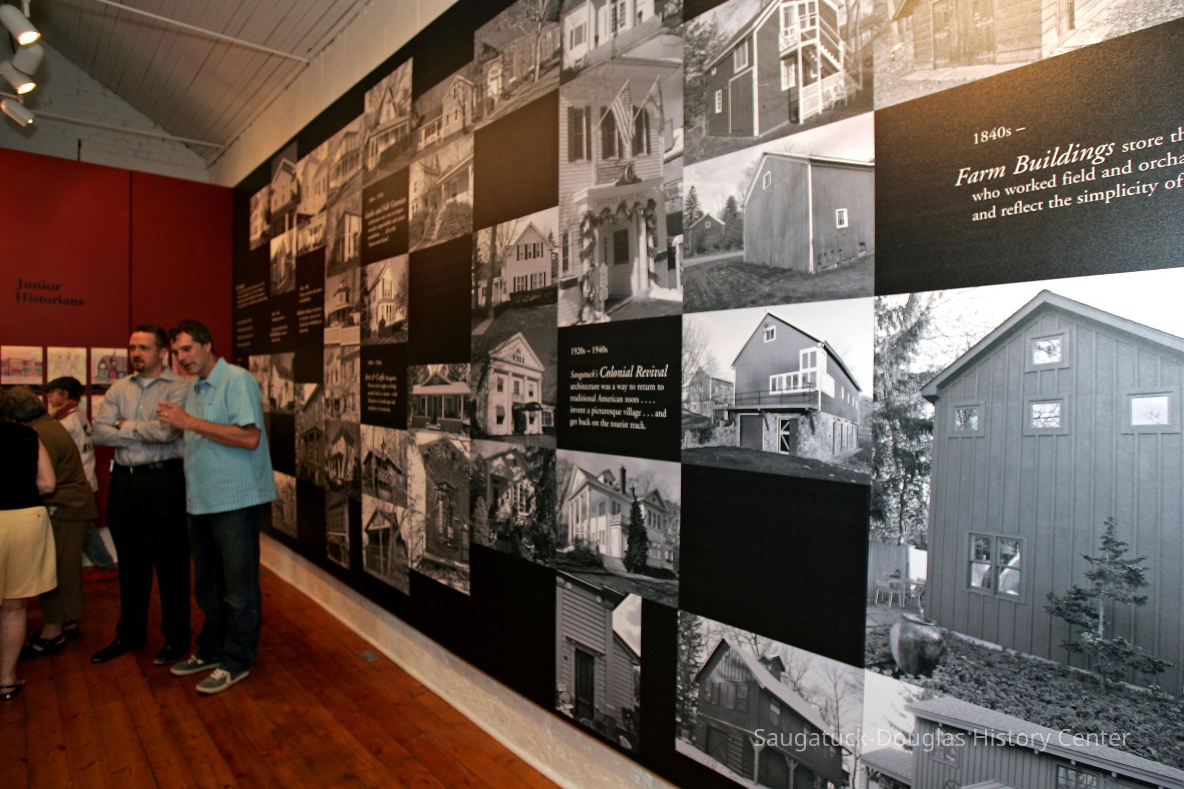 Dr. James Schmiechen, an architectural historian spearheaded an exhibit and book about local buildings titled "Raising the Roof "in 1999. In 2006, he revised both the exhibit and book as "Raising the Roof, the Second Story." Blurb for 1999 exhibit: "For many people, “Reading” buildings is a way of connecting with the past. Using high quality photo documentation, building models, and architectural artifacts, this exhibition was a complete social and spatial history of the villages." Blurb for 2006 exhibit: "This exhibition posited that architecture can reveal many layers of sometimes common, often unique history of our villages. A notable component was stories and drawings about local places by Saugatuck Middle School students."