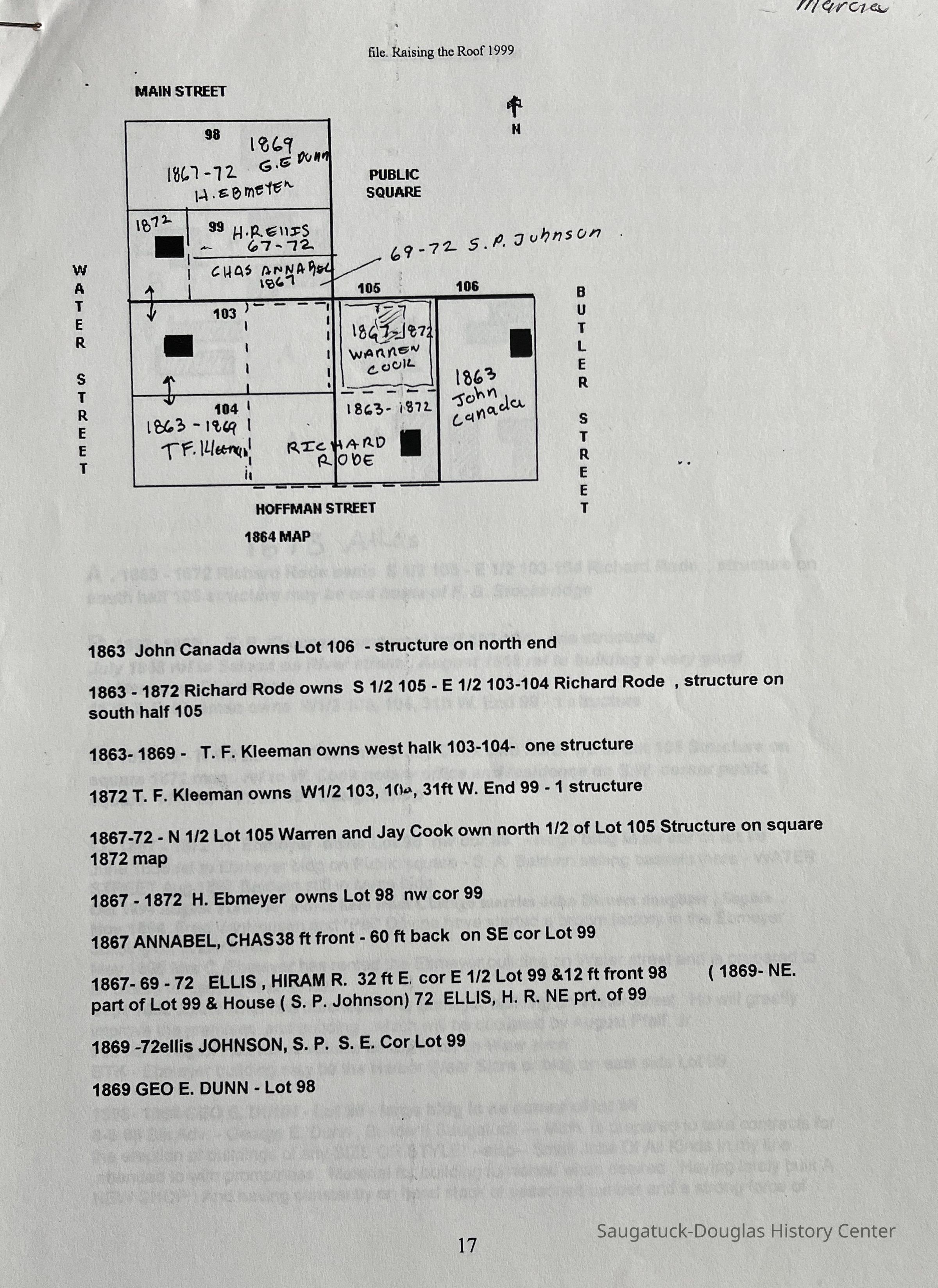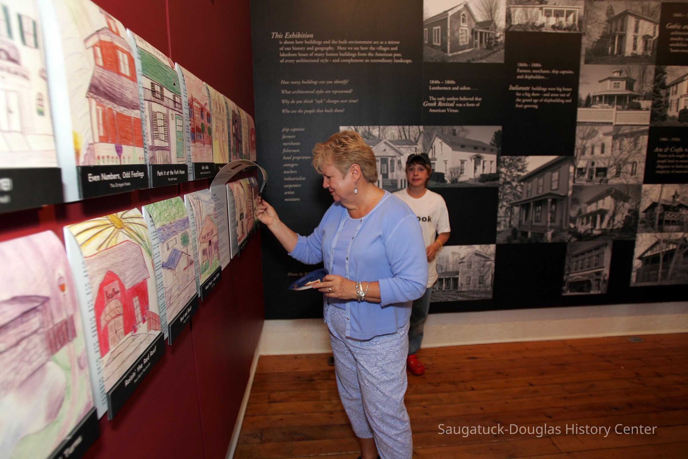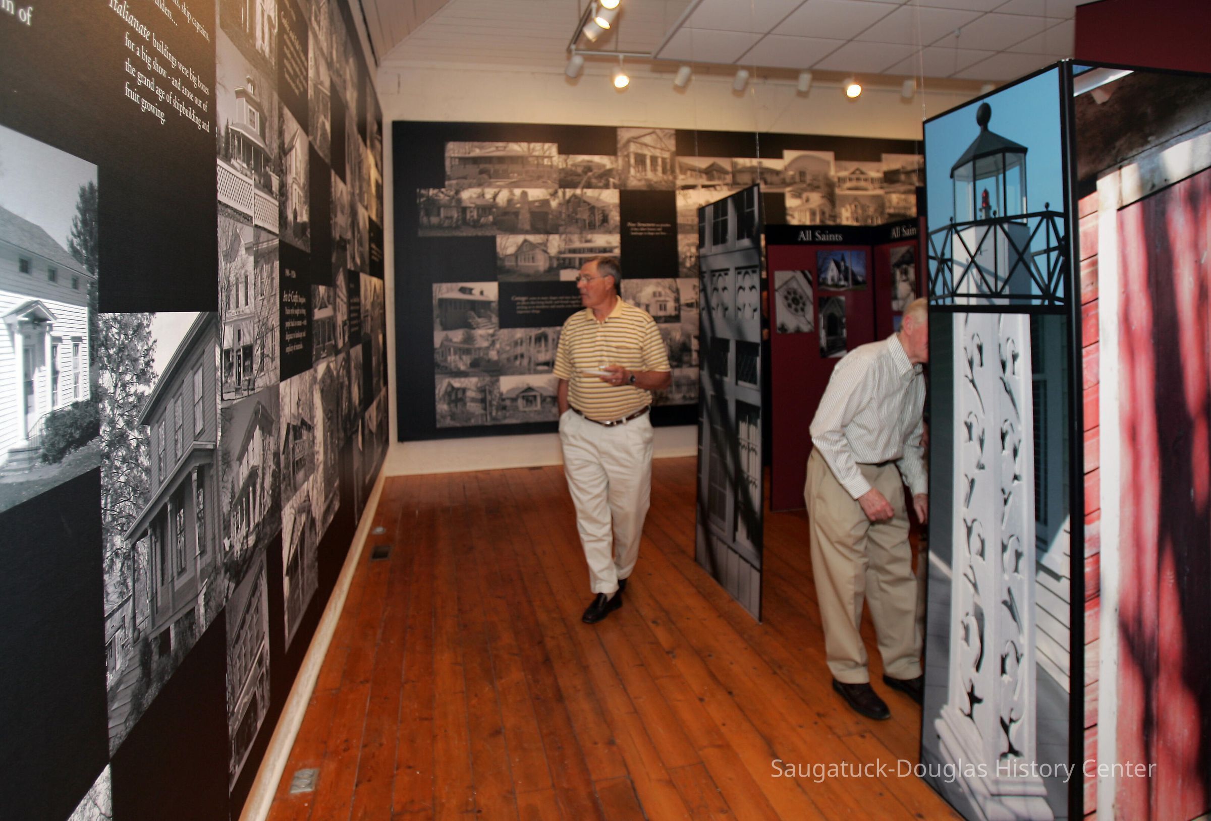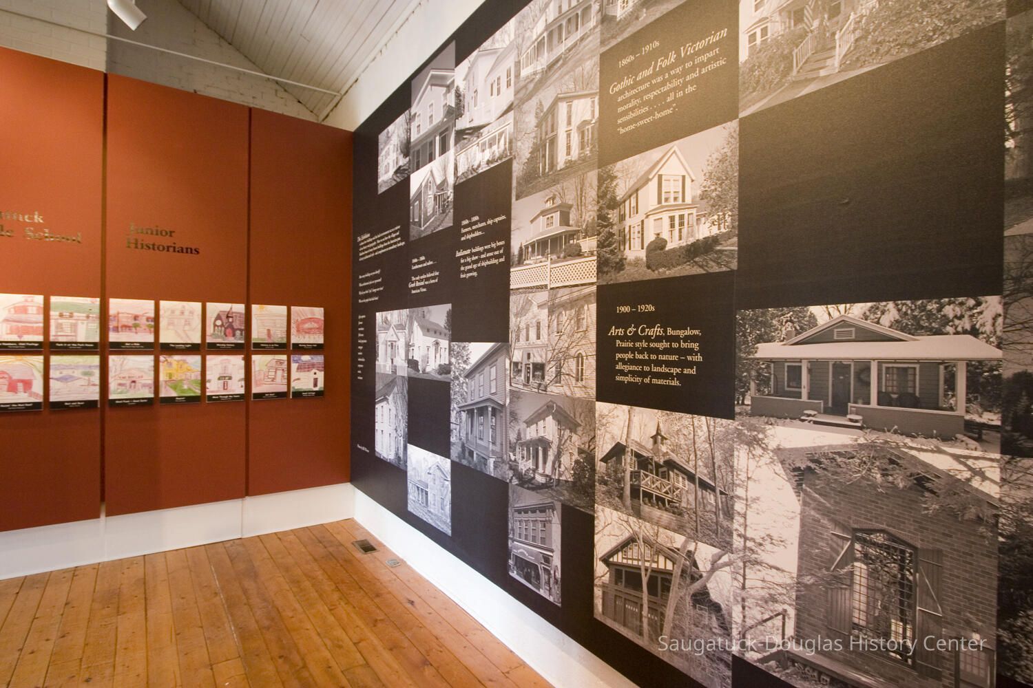 Dr. James Schmiechen, an architectural historian spearheaded an exhibit and book about local buildings titled "Raising the Roof "in 1999. In 2006, he revised both the exhibit and book as "Raising the Roof, the Second Story." Blurb for 1999 exhibit: "For many people, “Reading” buildings is a way of connecting with the past. Using high quality photo documentation, building models, and architectural artifacts, this exhibition was a complete social and spatial history of the villages." Blurb for 2006 exhibit: "This exhibition posited that architecture can reveal many layers of sometimes common, often unique history of our villages. A notable component was stories and drawings about local places by Saugatuck Middle School students."