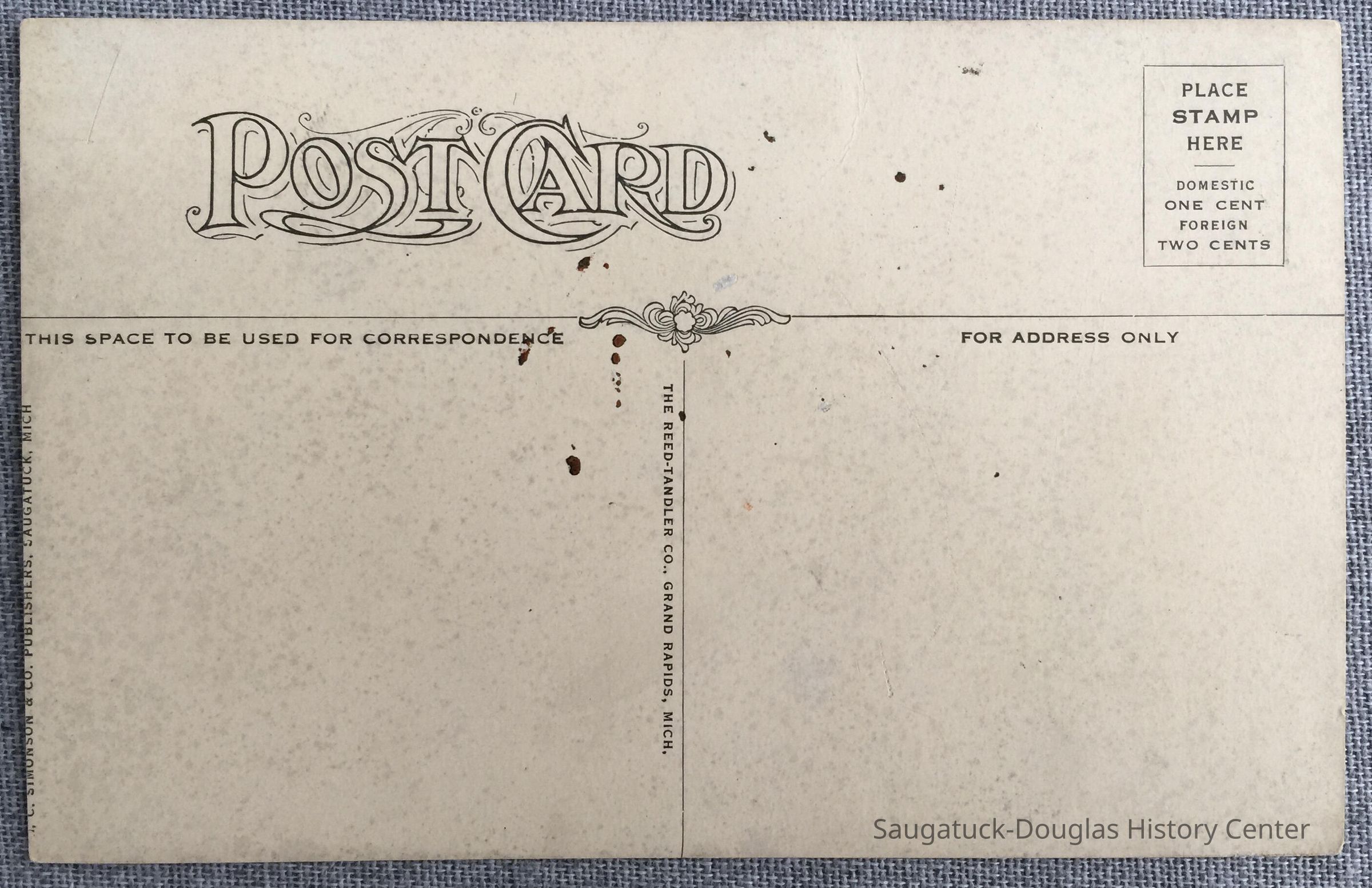 Unmailed, no writing. Black ink only on front and back. "Place stamp here" zone lists domestic postage as one cent. Image is printed, not a photo.