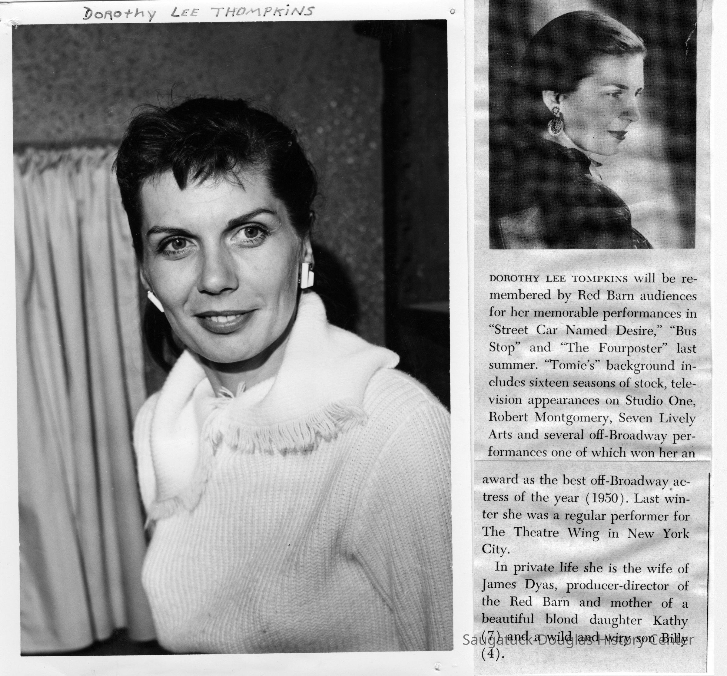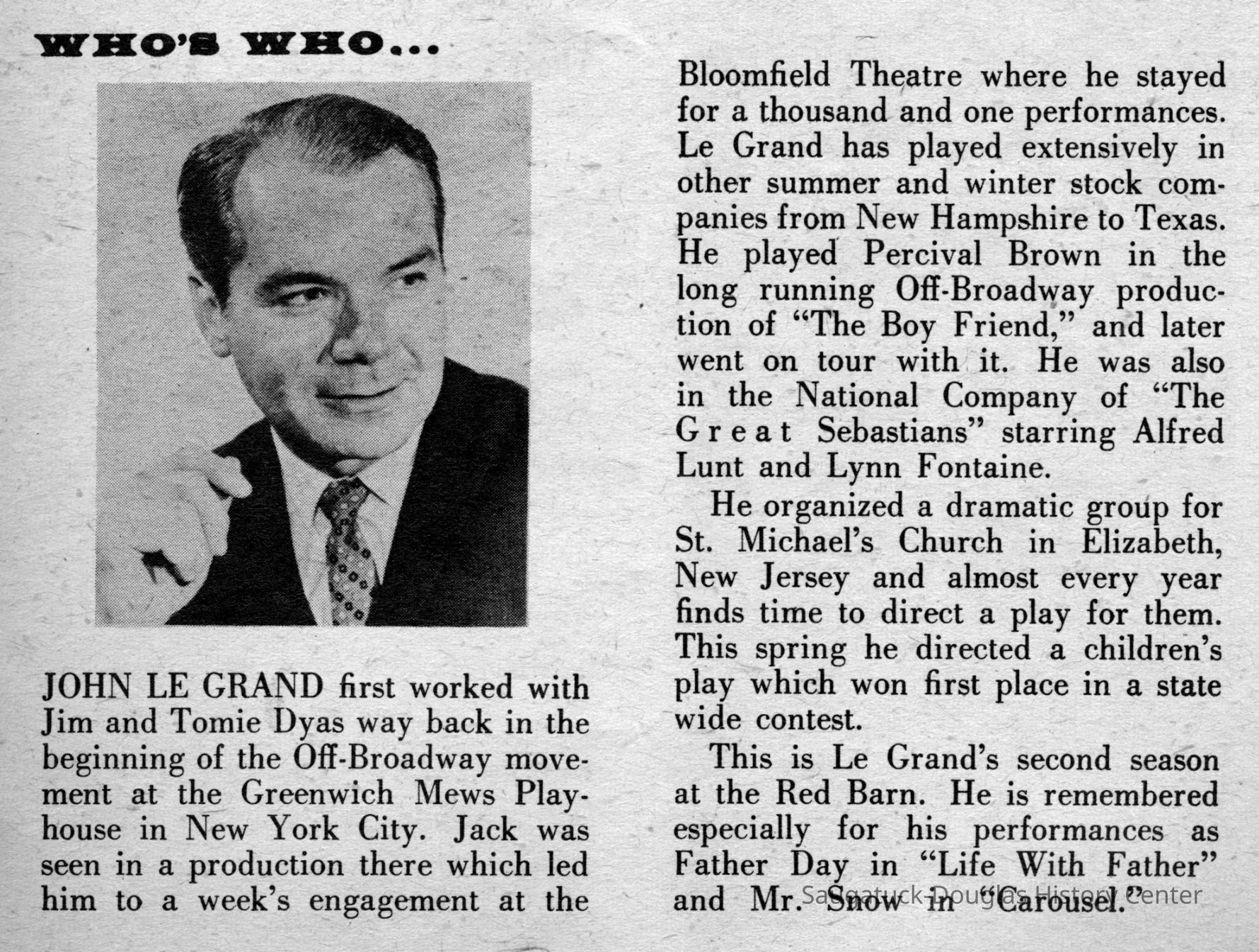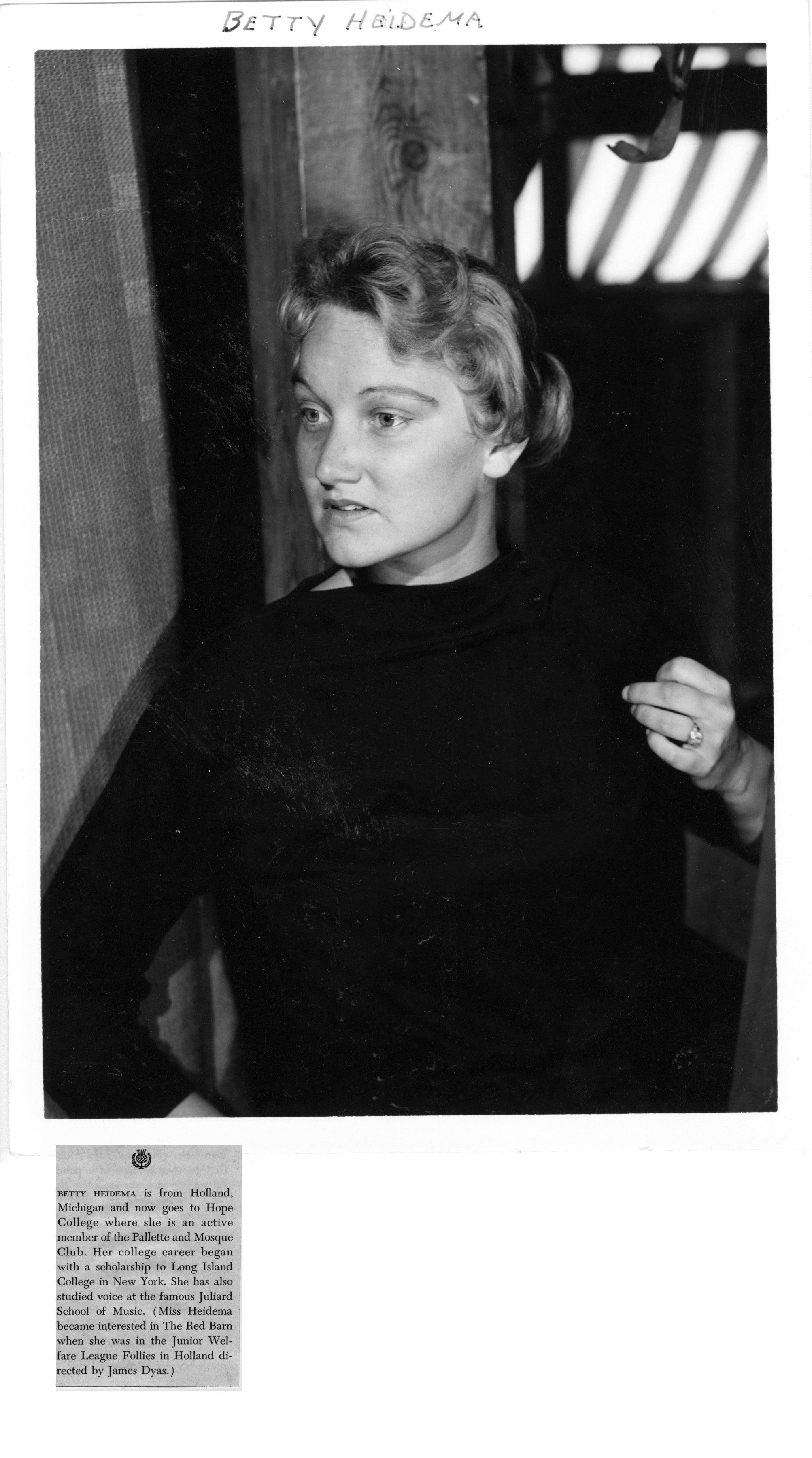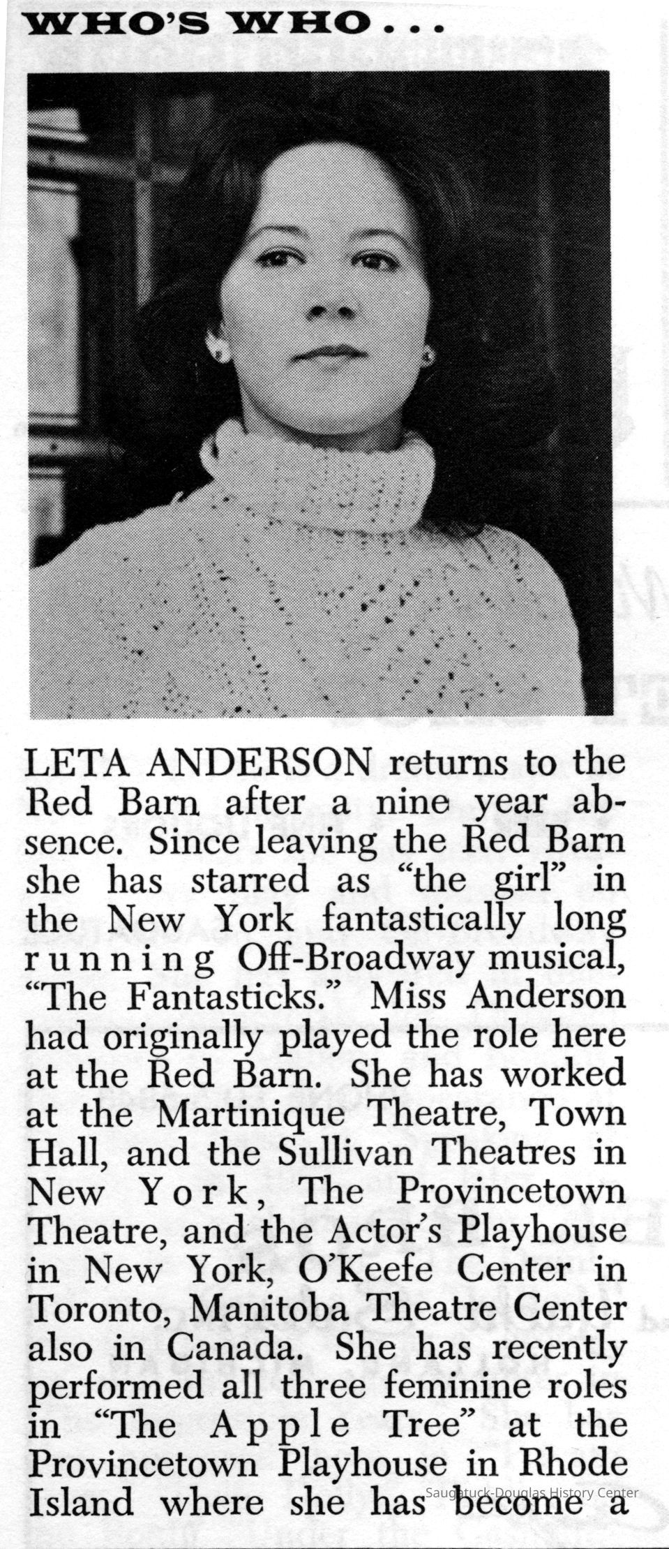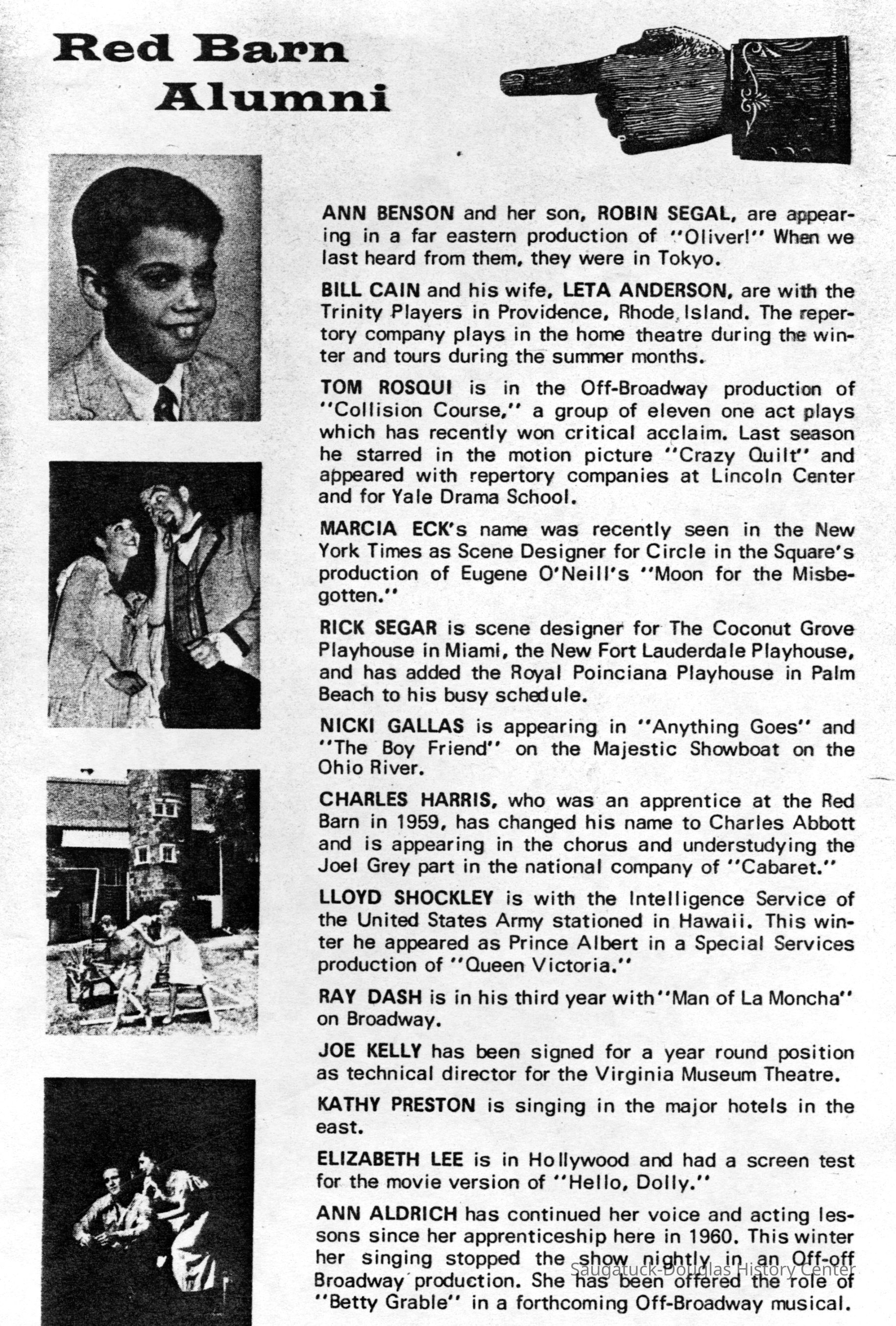 Digital scans of publicity photos or blubs about Red Barn Theatre performers.