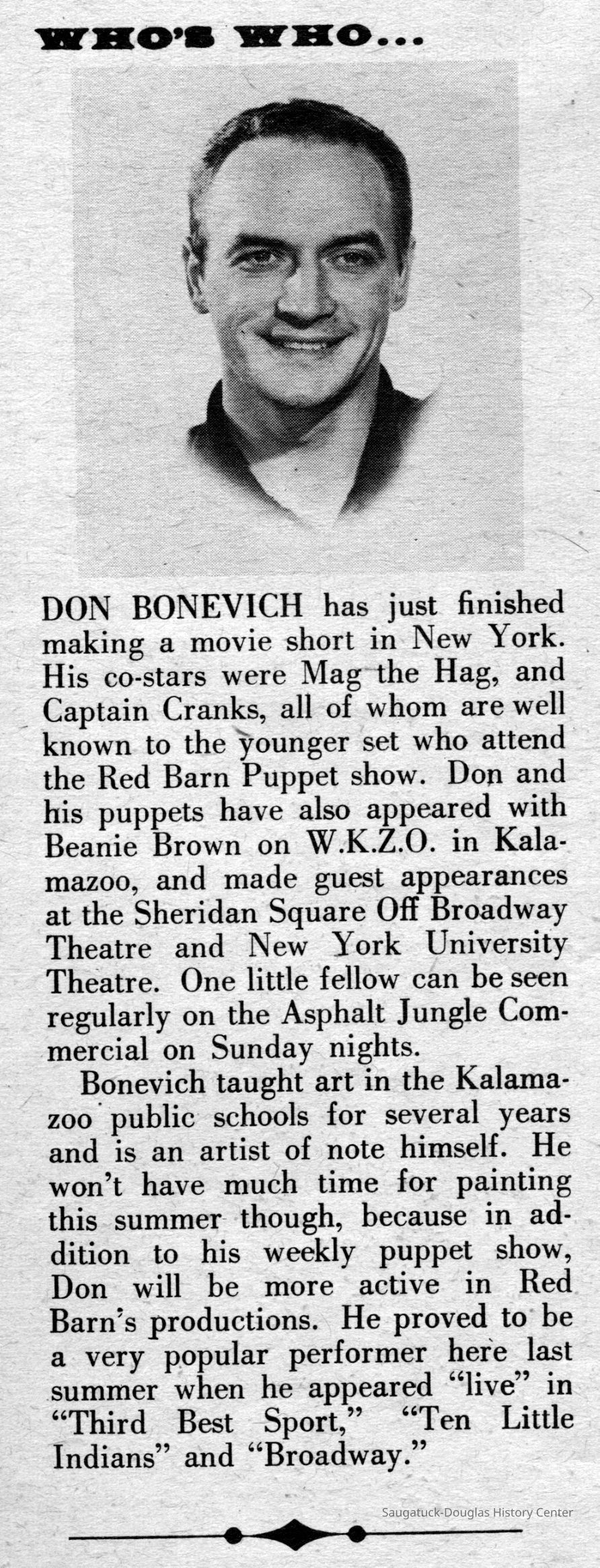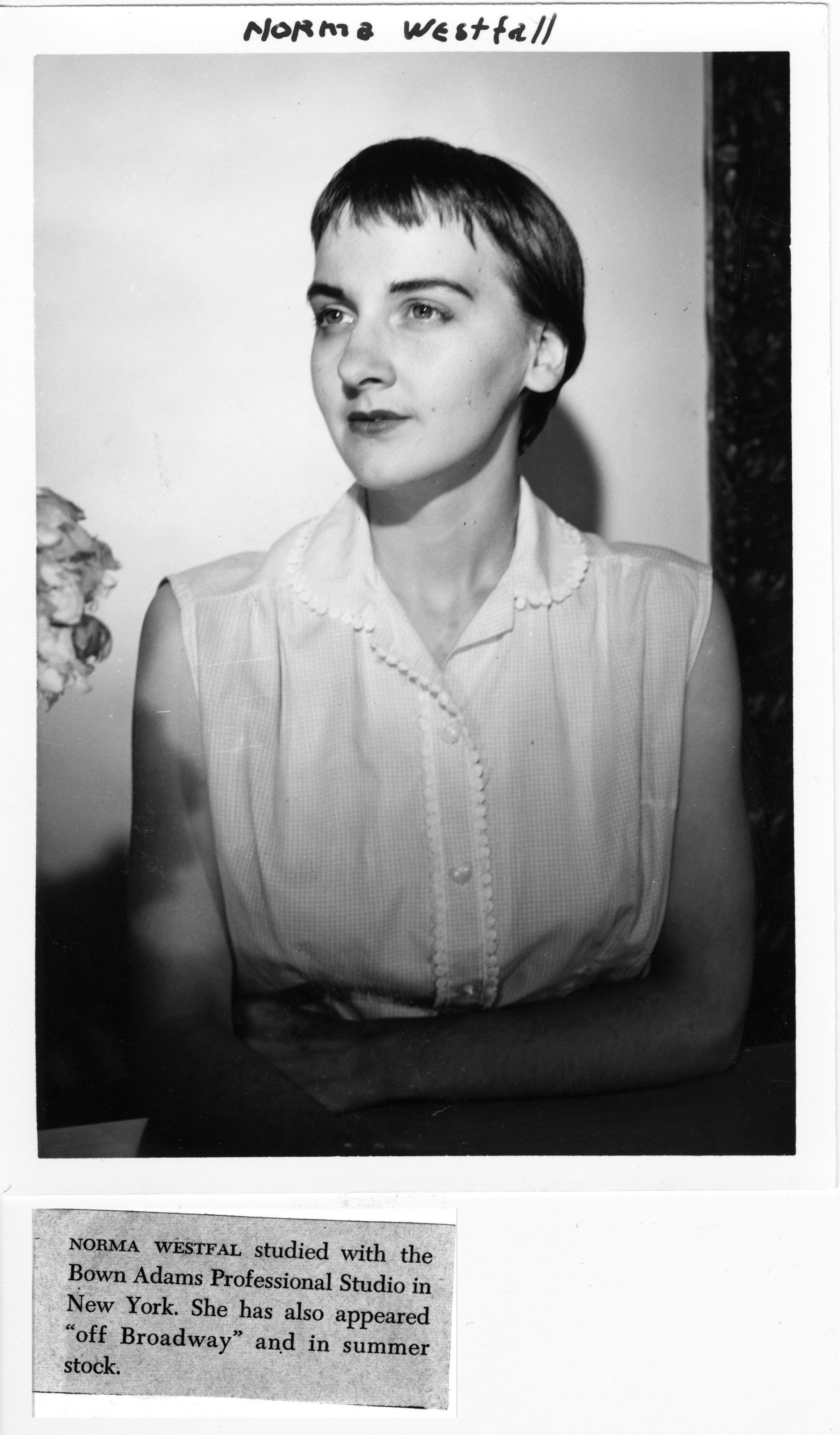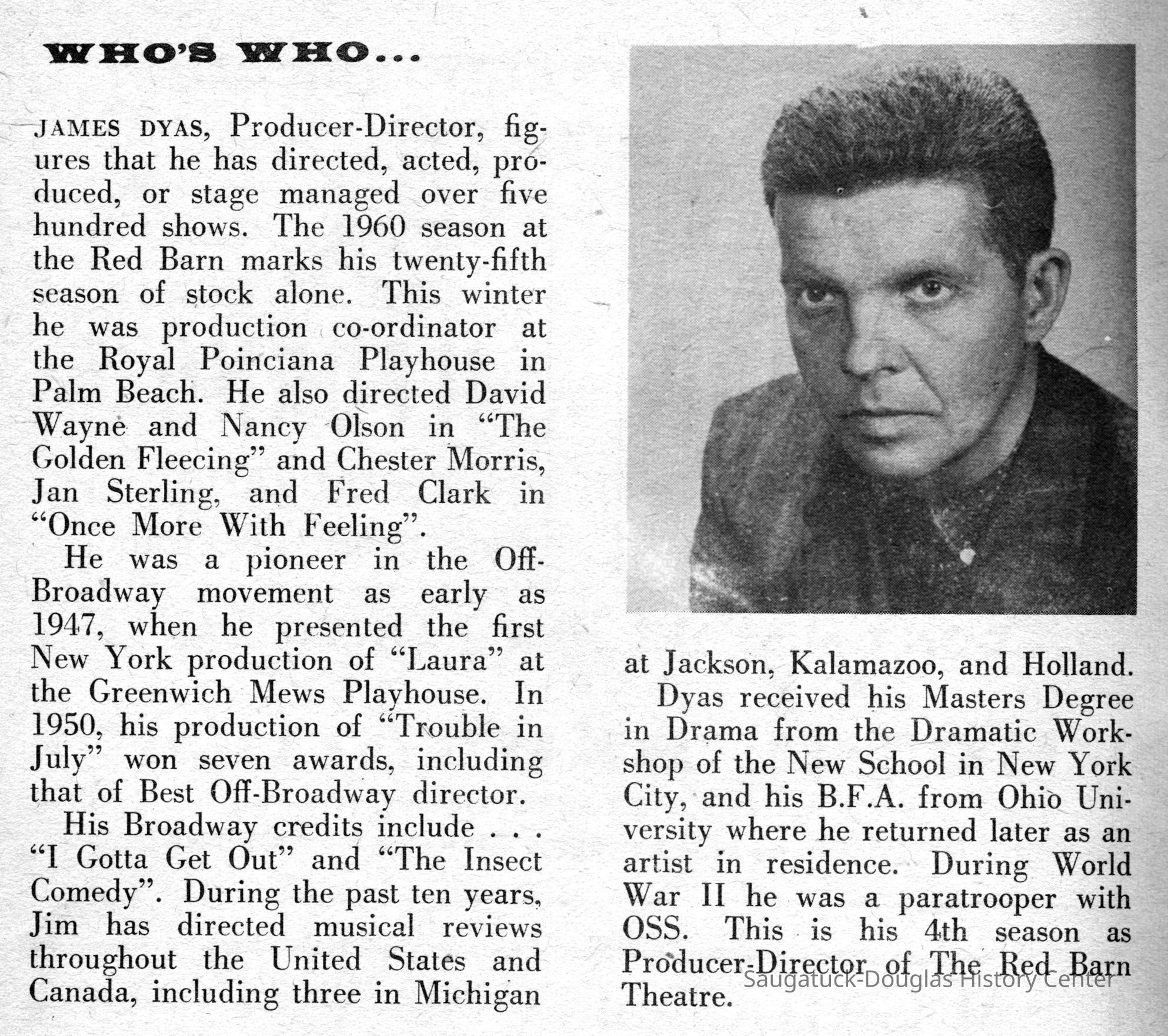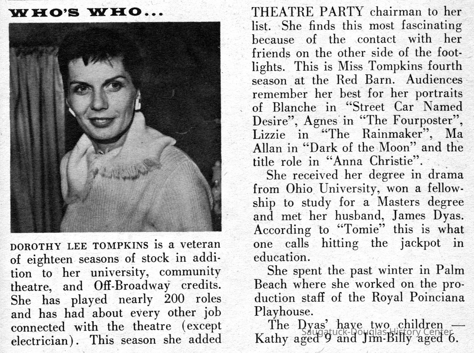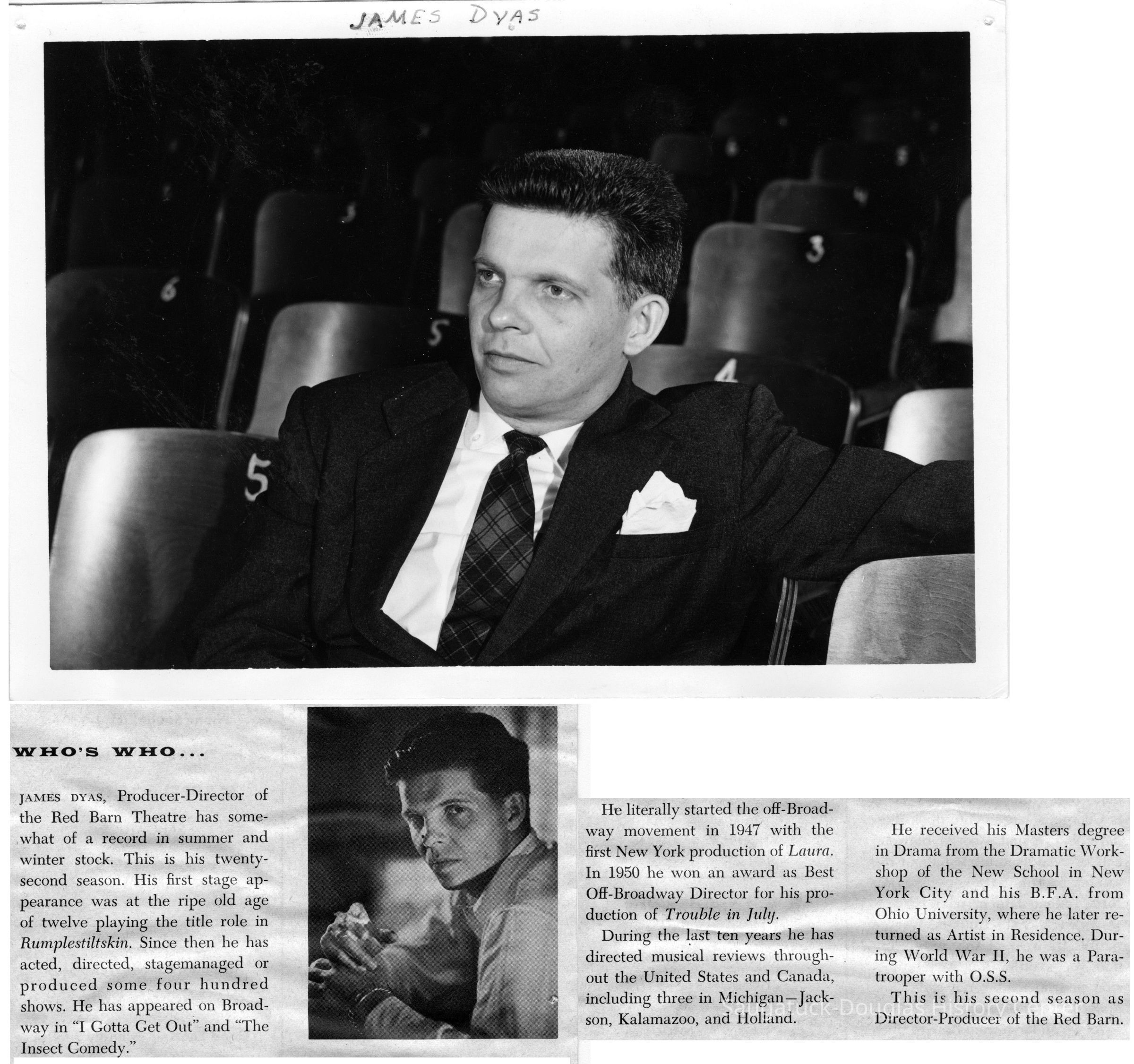 Digital scans of publicity photos or blubs about Red Barn Theatre performers.