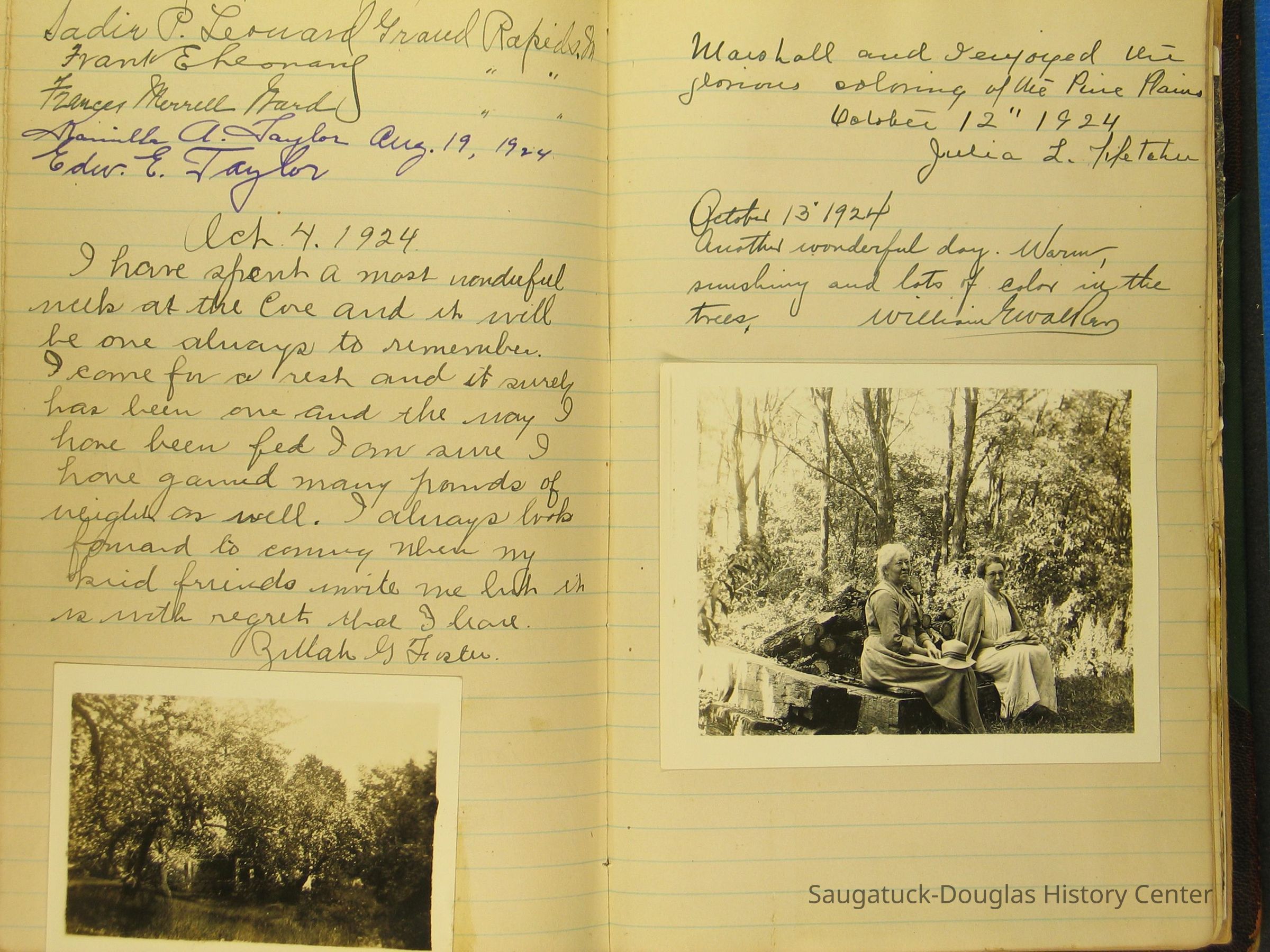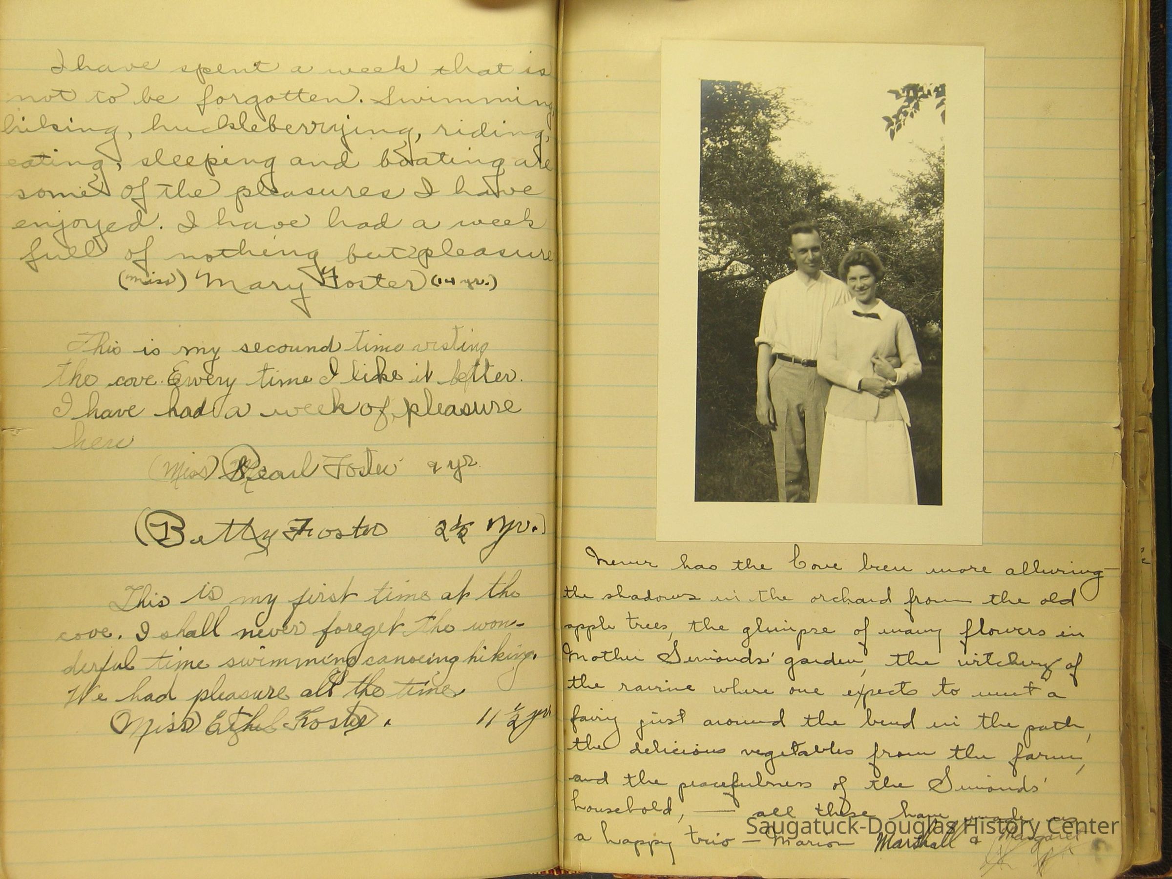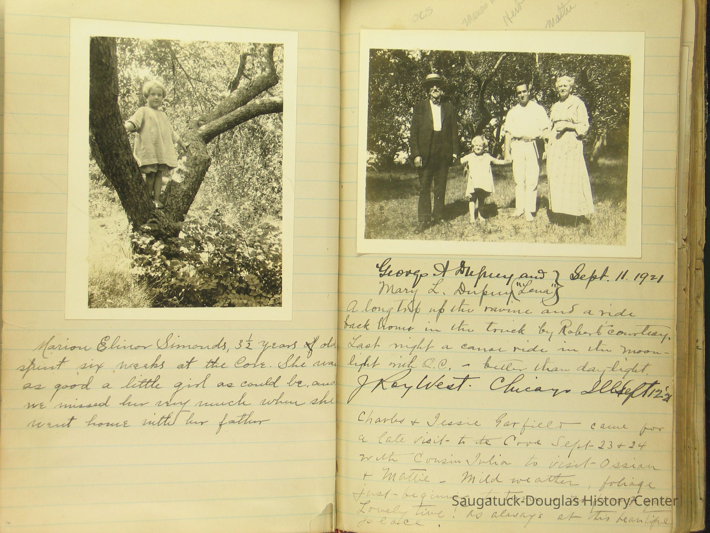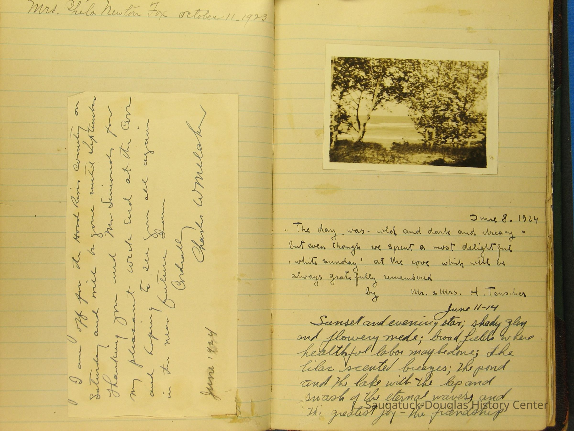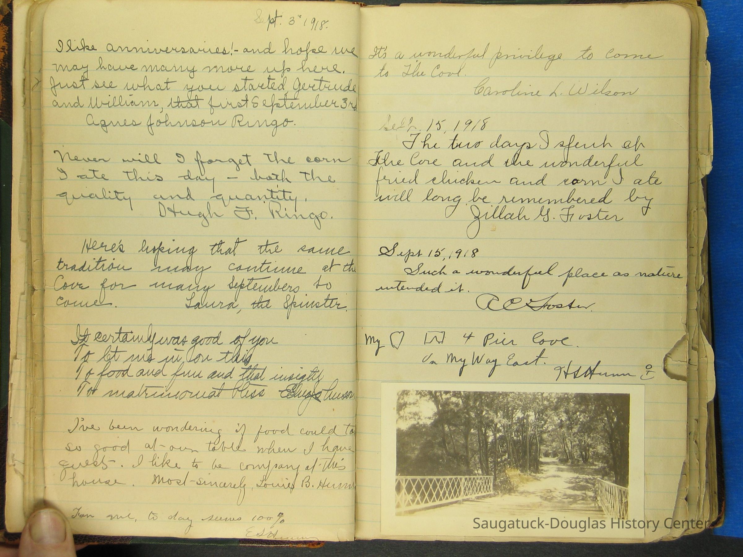 Photos of Pier Cove locations, cottagers and their activities plus notes, poems, newspaper clippings and sentiments written by guests, family and neighbors.