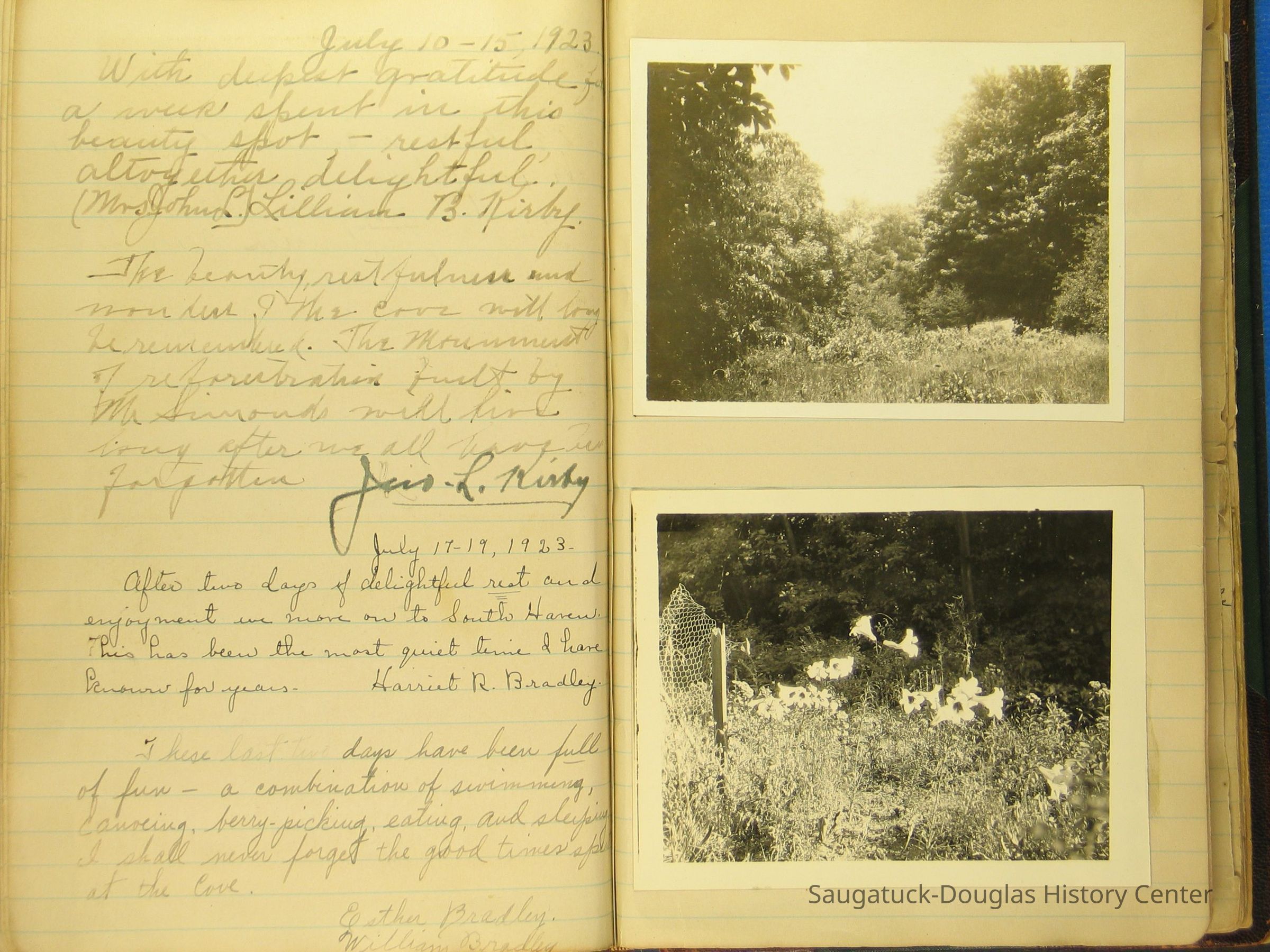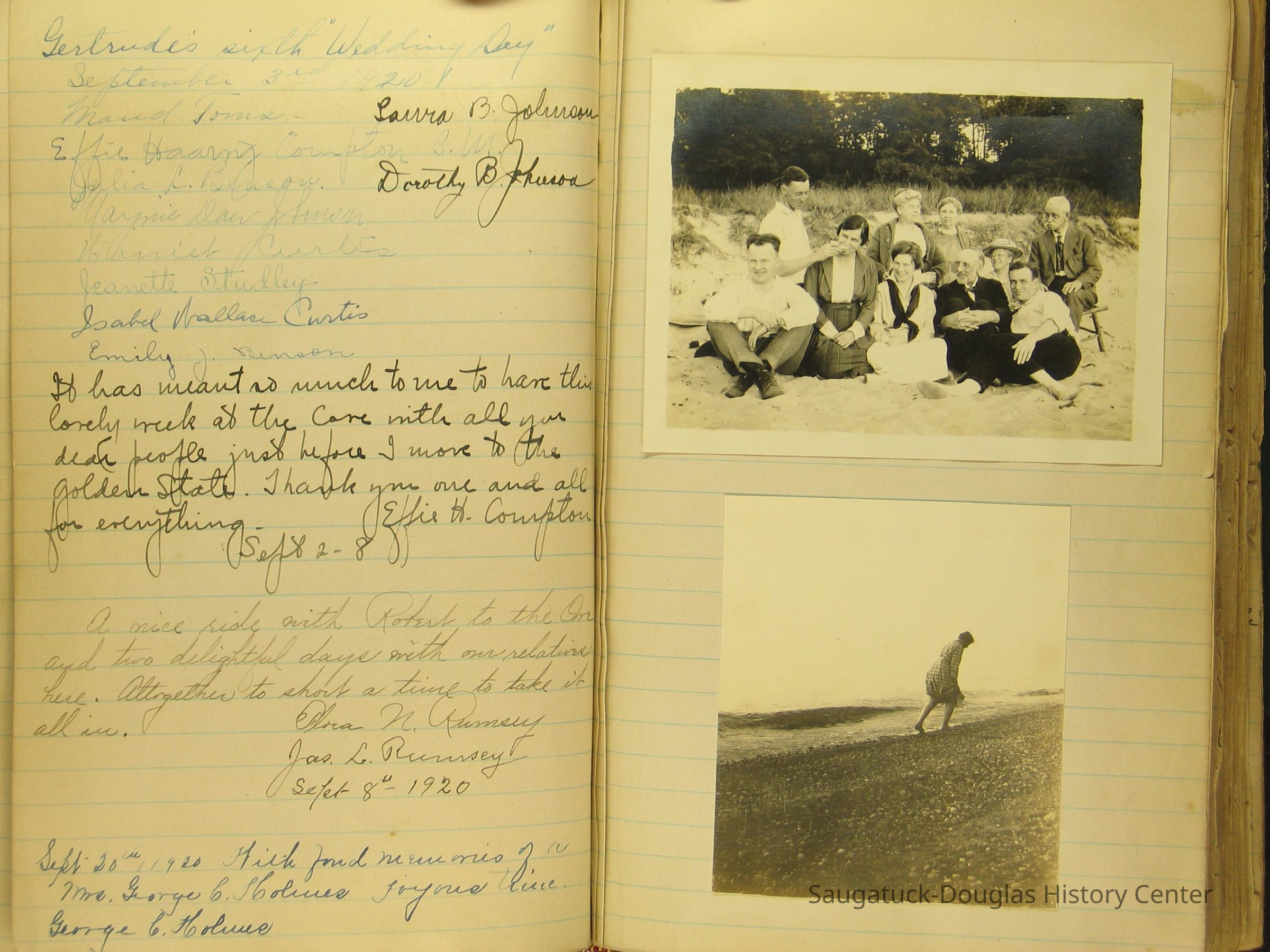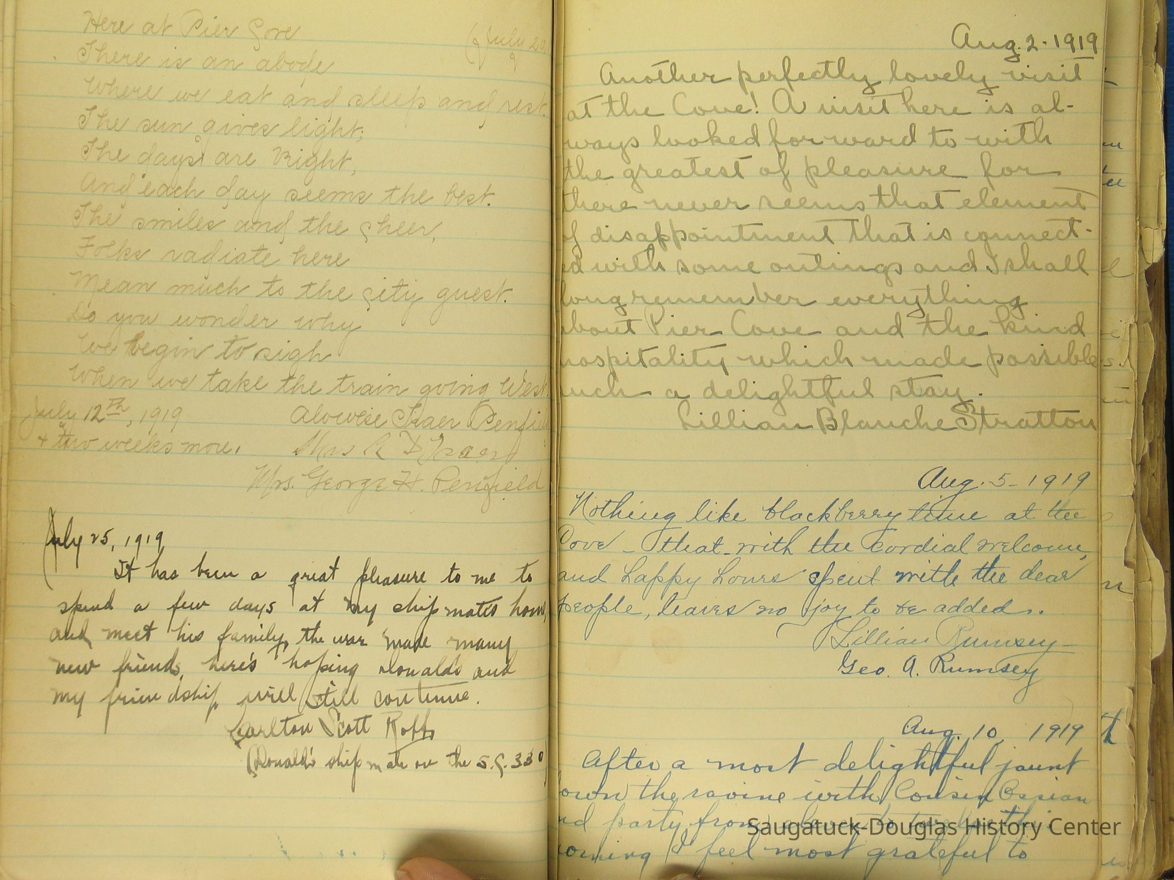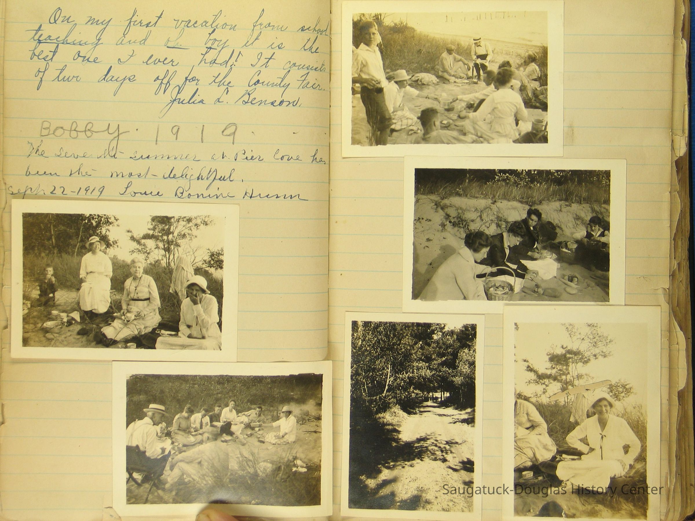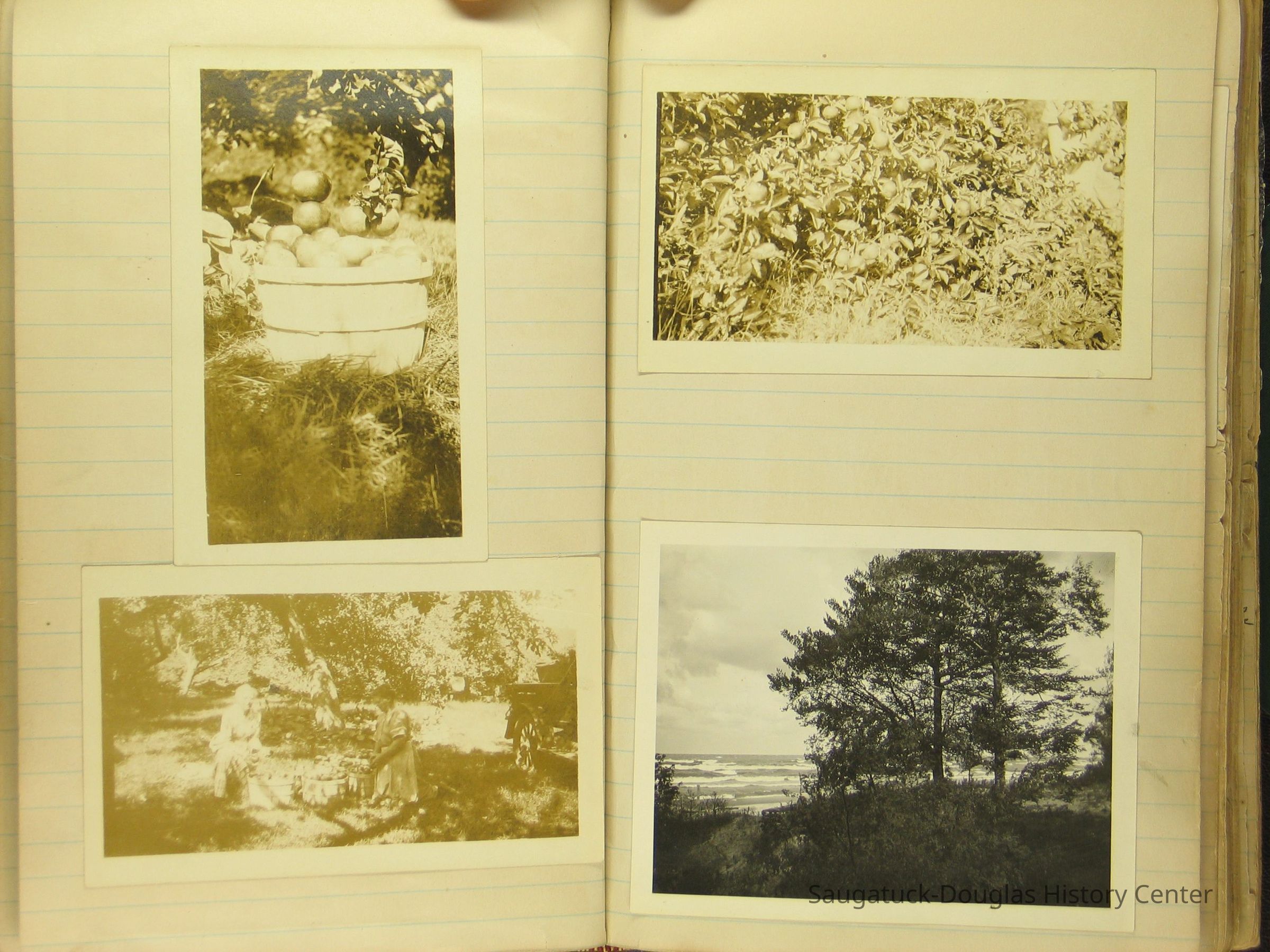 Photos of Pier Cove locations, cottagers and their activities plus notes, poems, newspaper clippings and sentiments written by guests, family and neighbors.