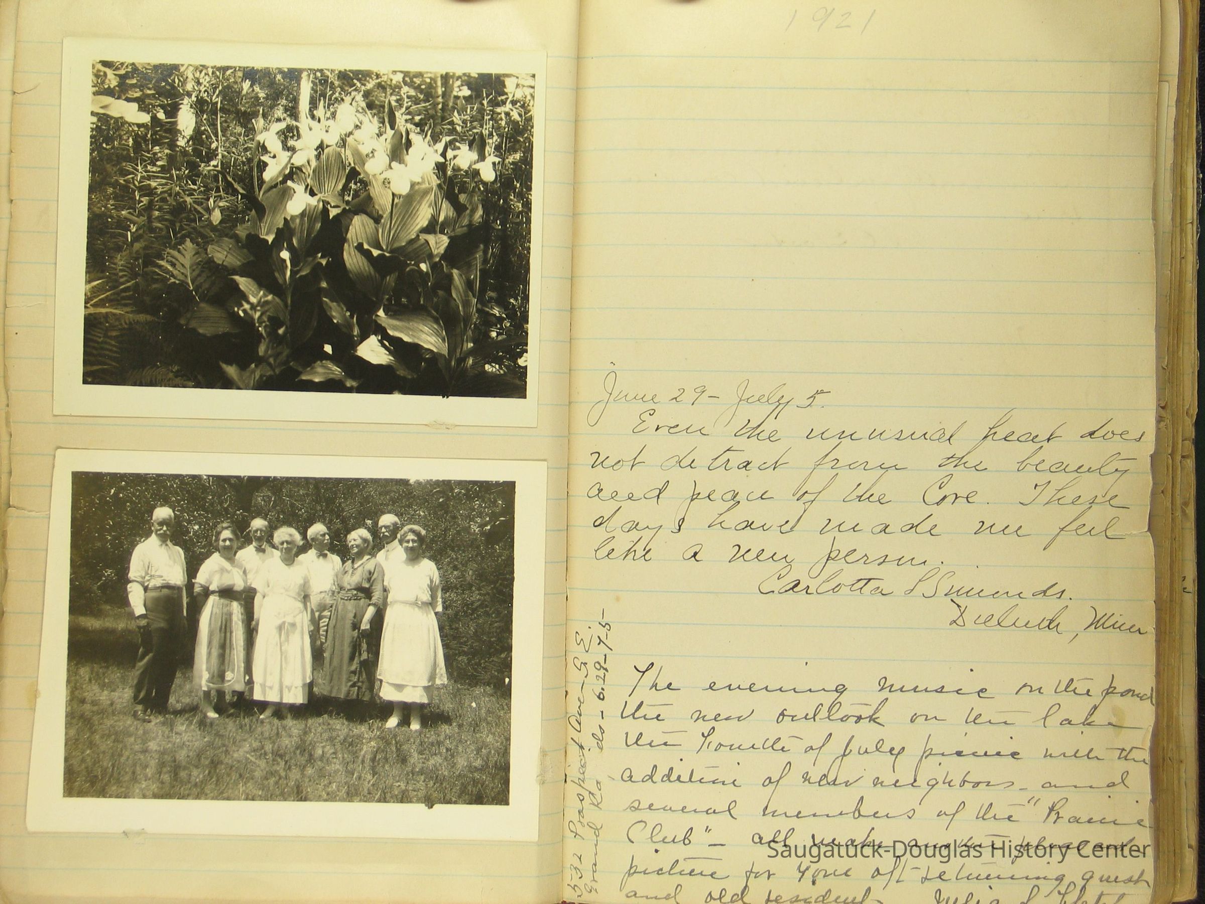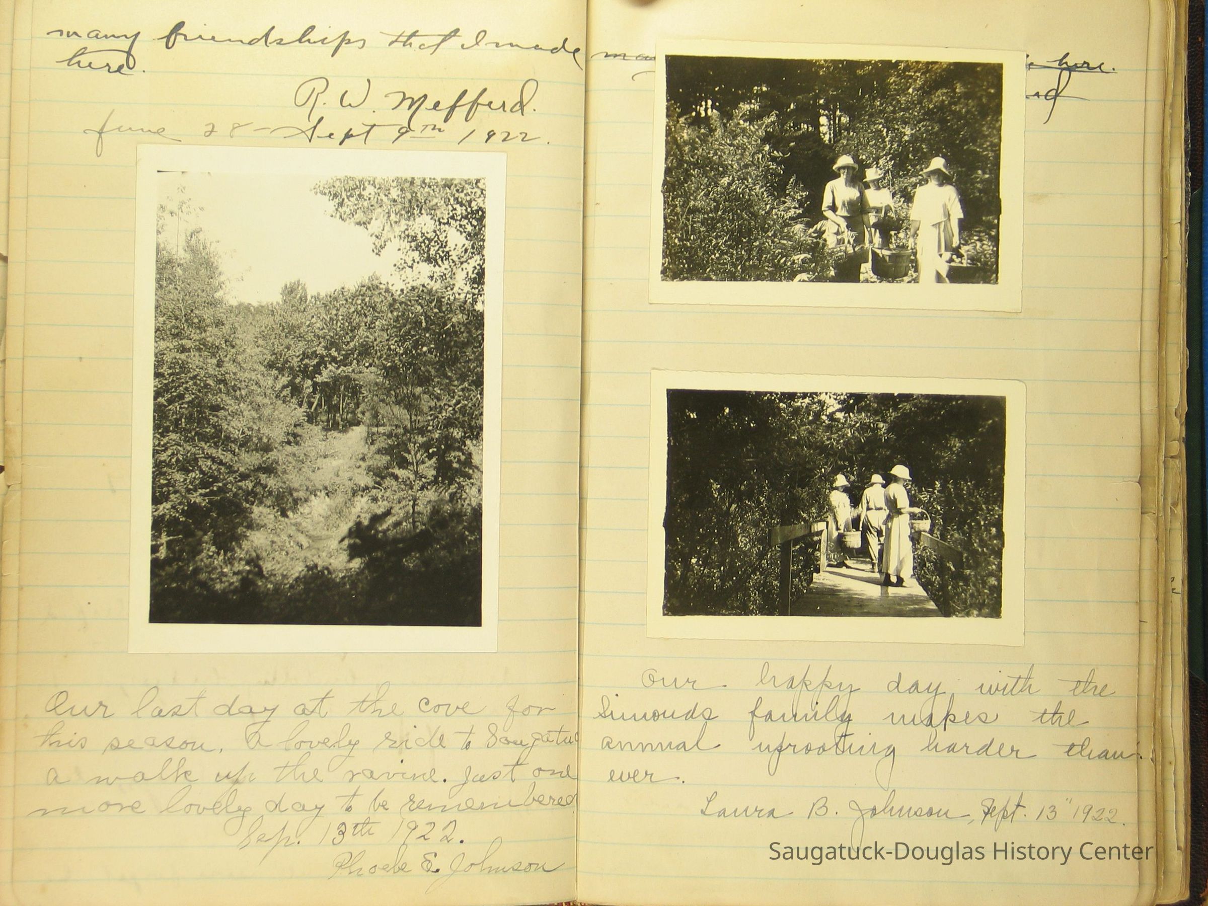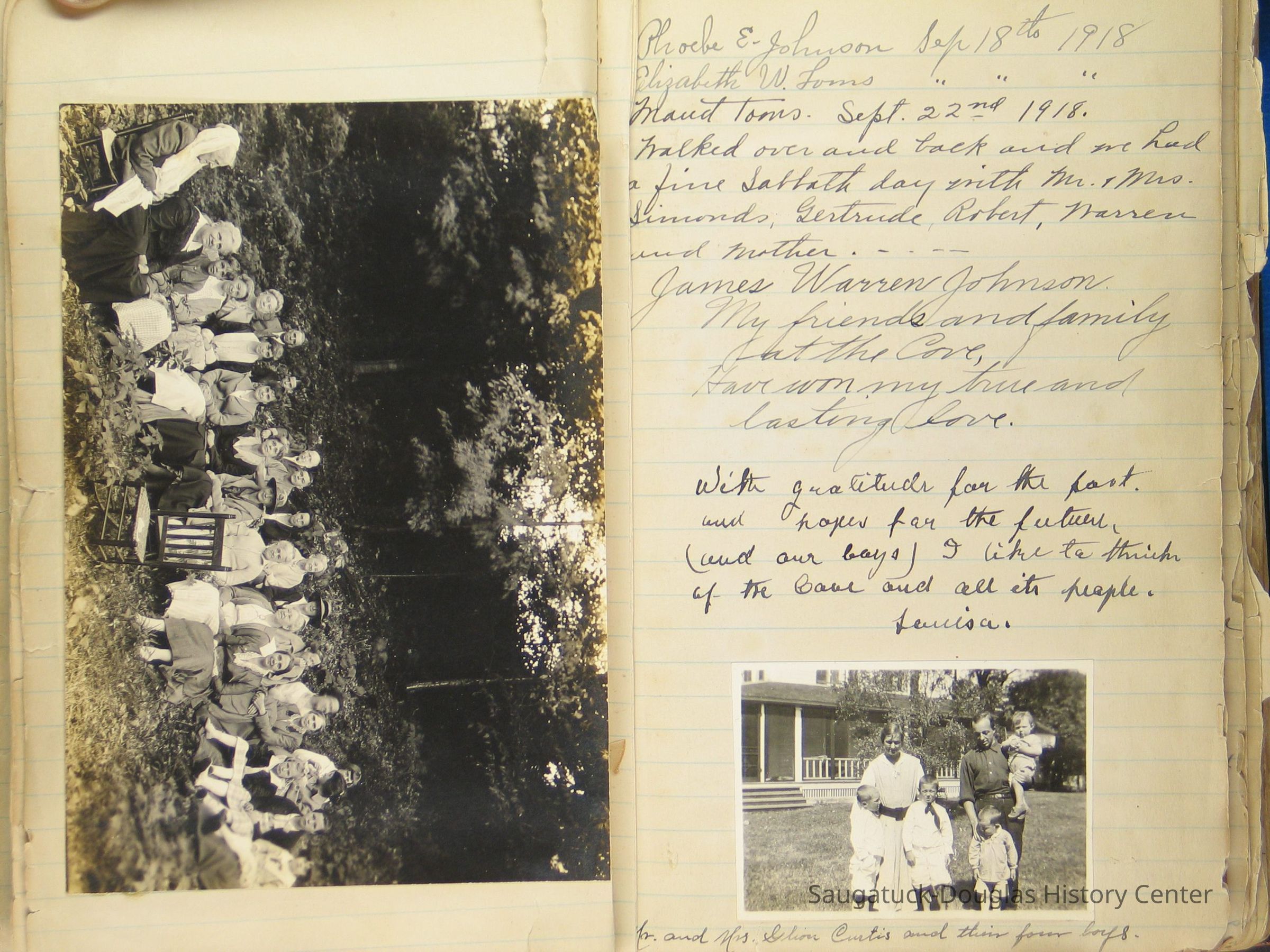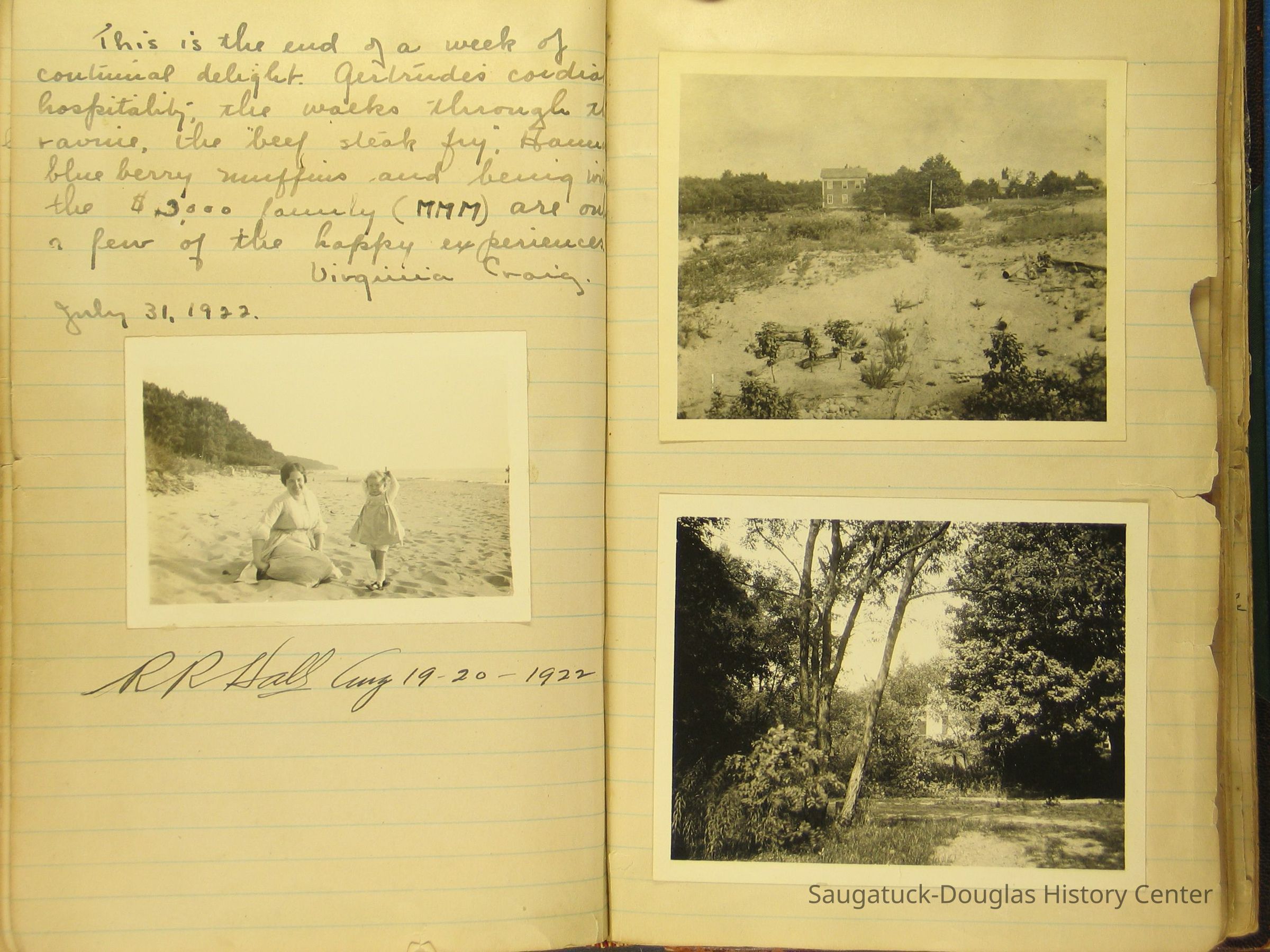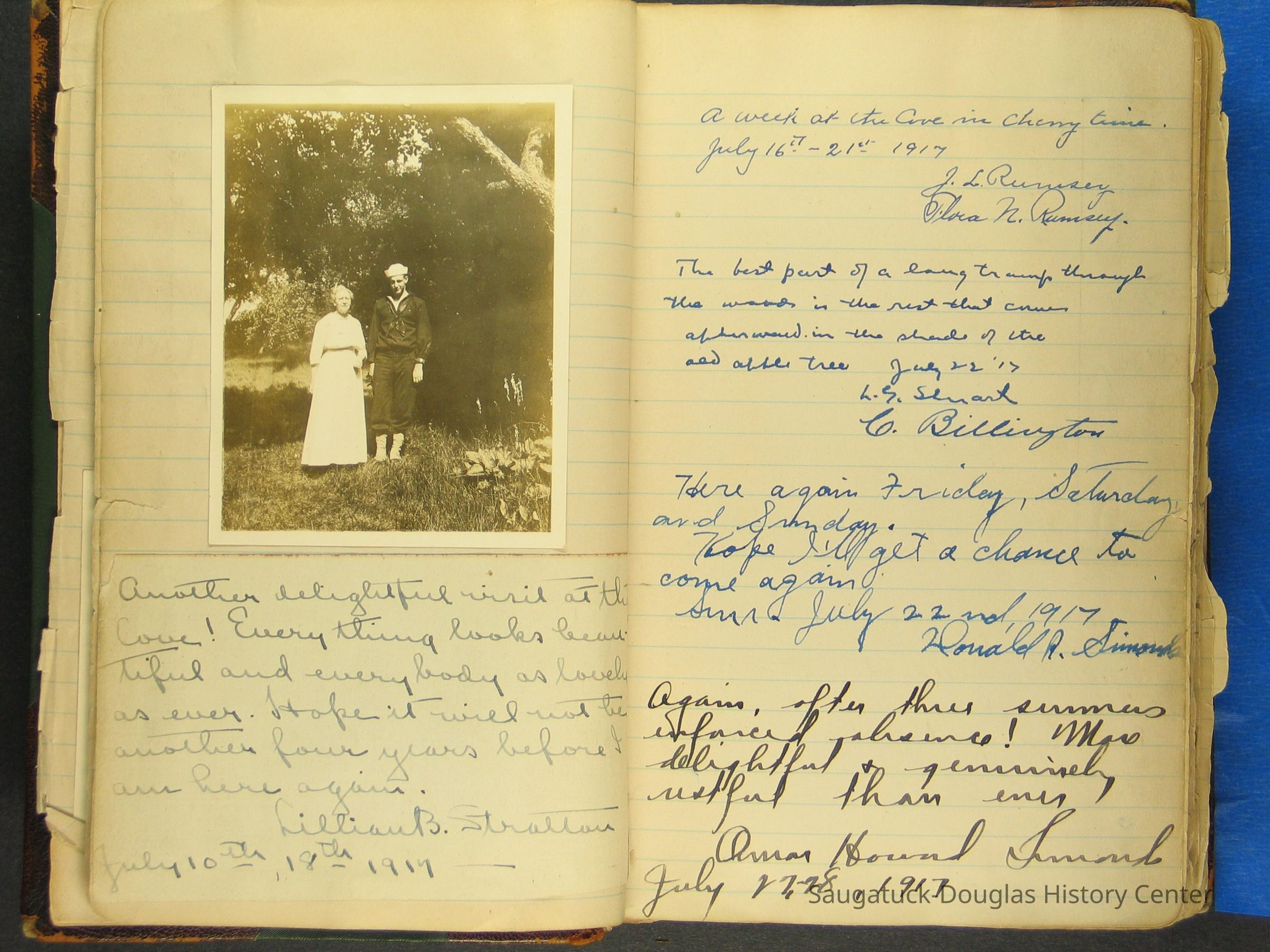 Photos of Pier Cove locations, cottagers and their activities plus notes, poems, newspaper clippings and sentiments written by guests, family and neighbors.