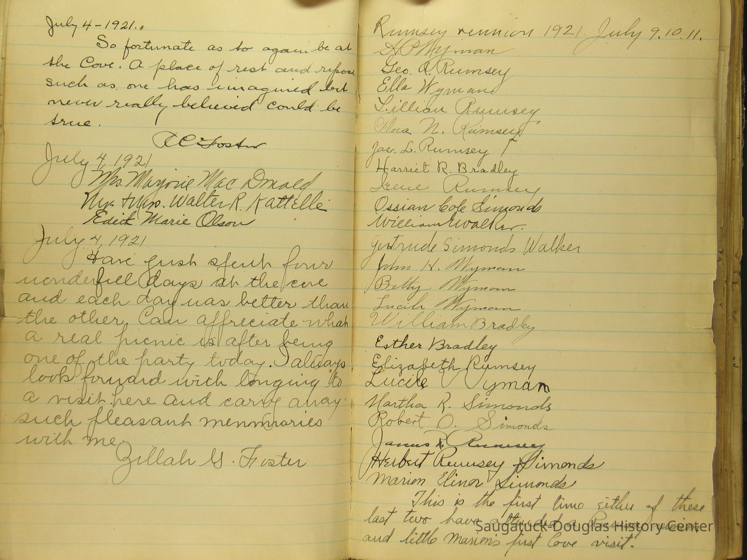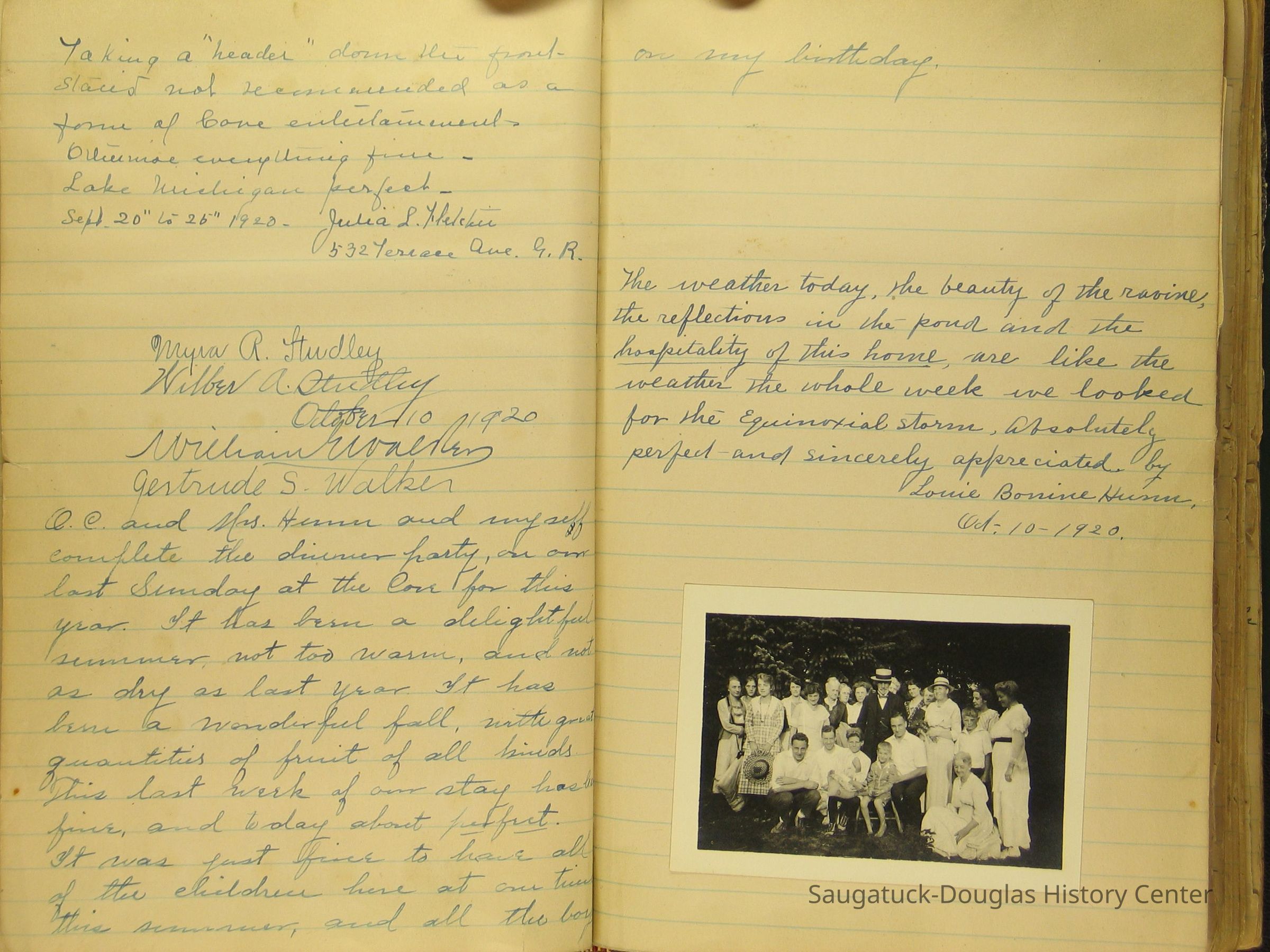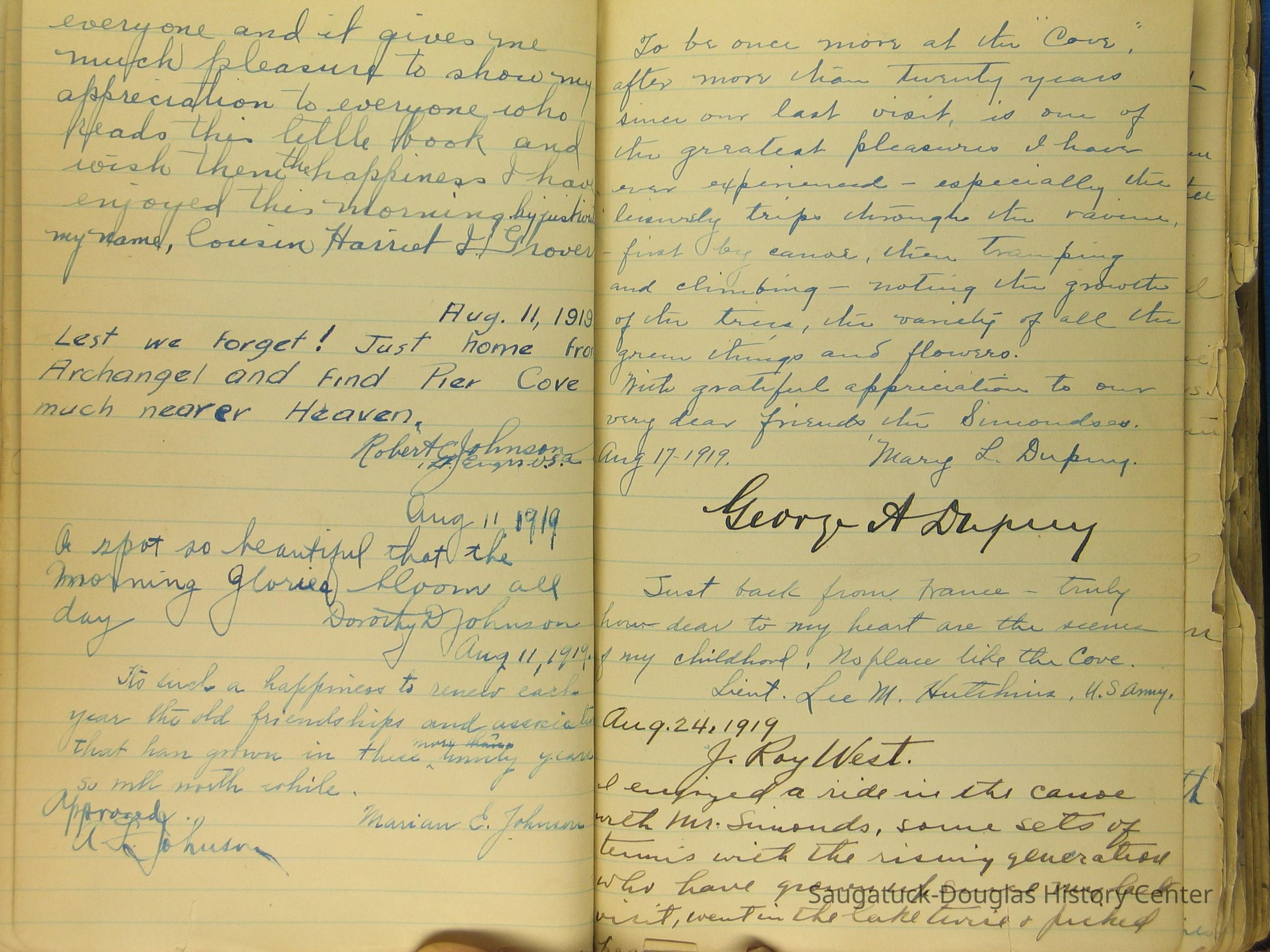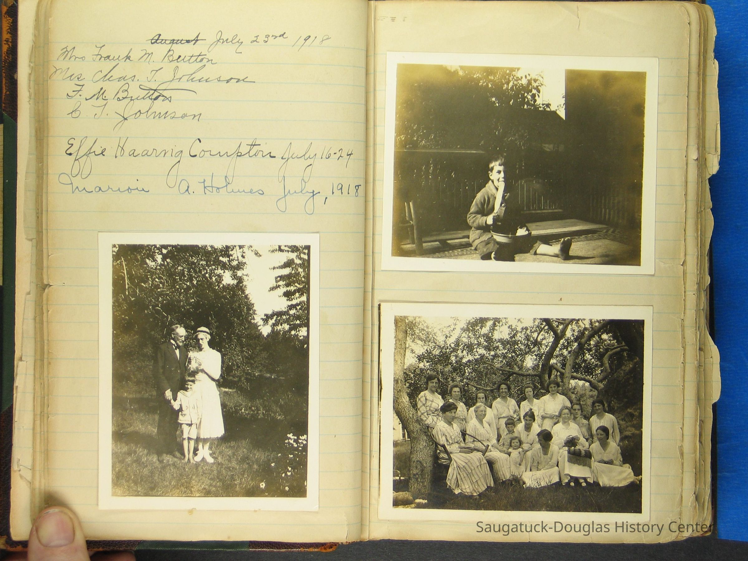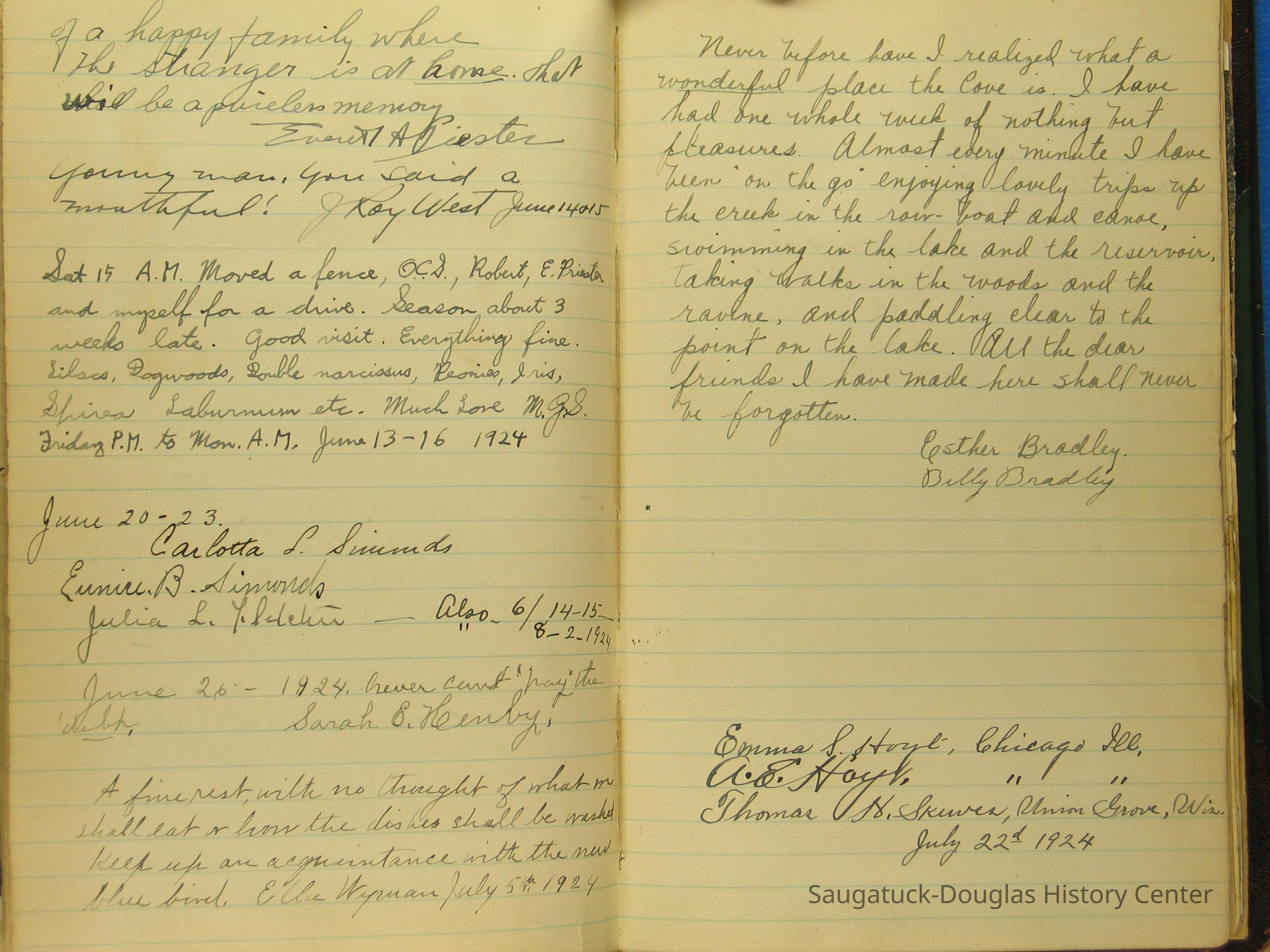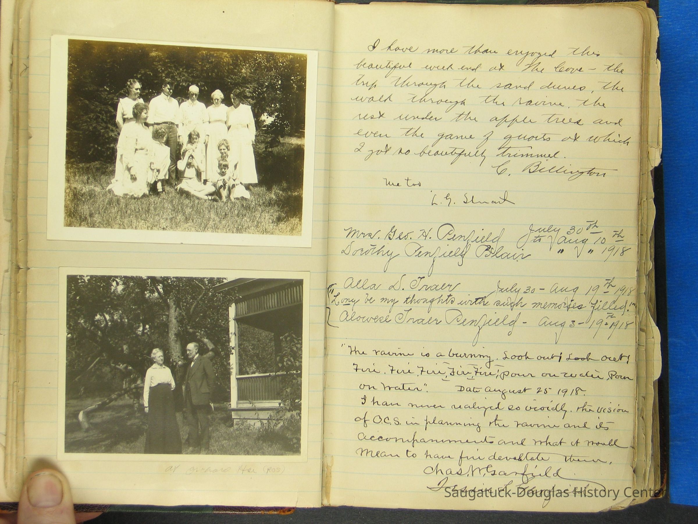 Photos of Pier Cove locations, cottagers and their activities plus notes, poems, newspaper clippings and sentiments written by guests, family and neighbors.