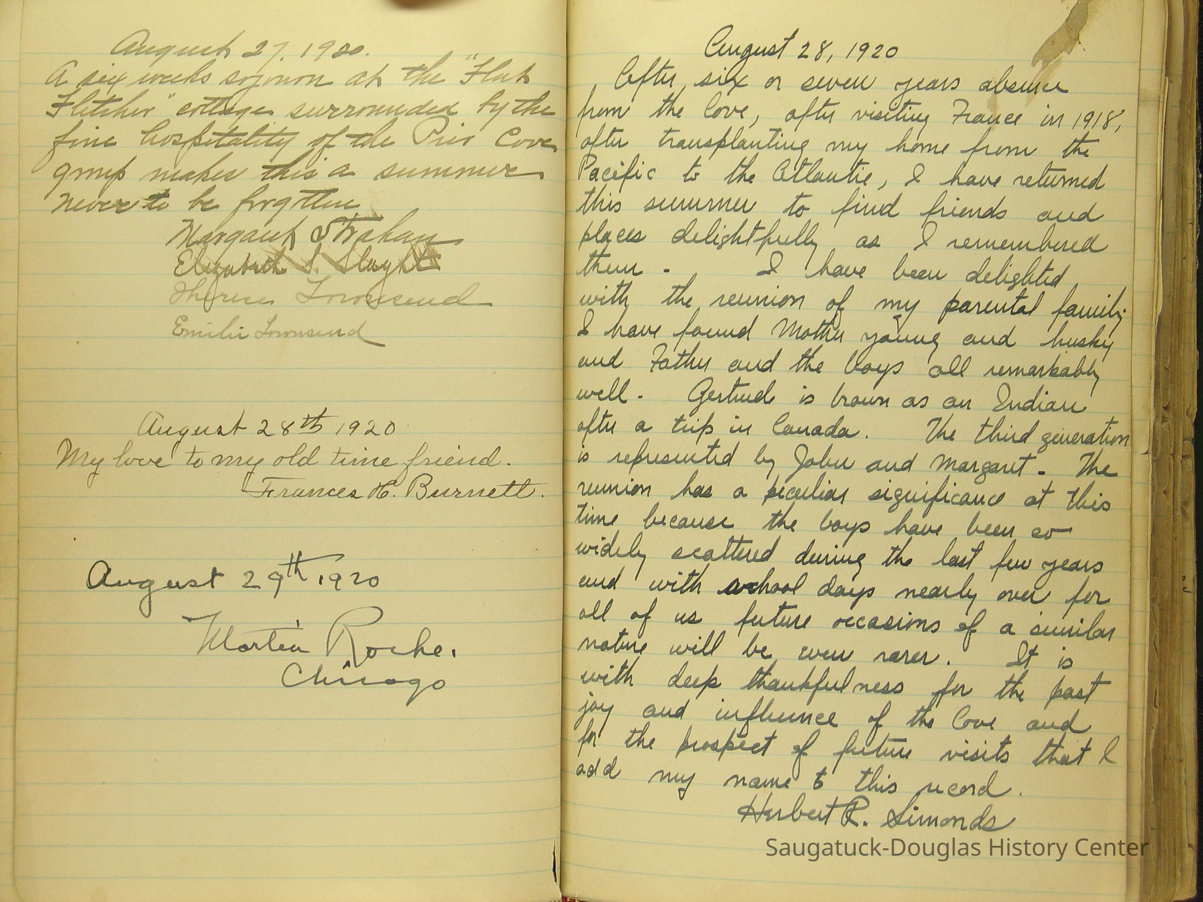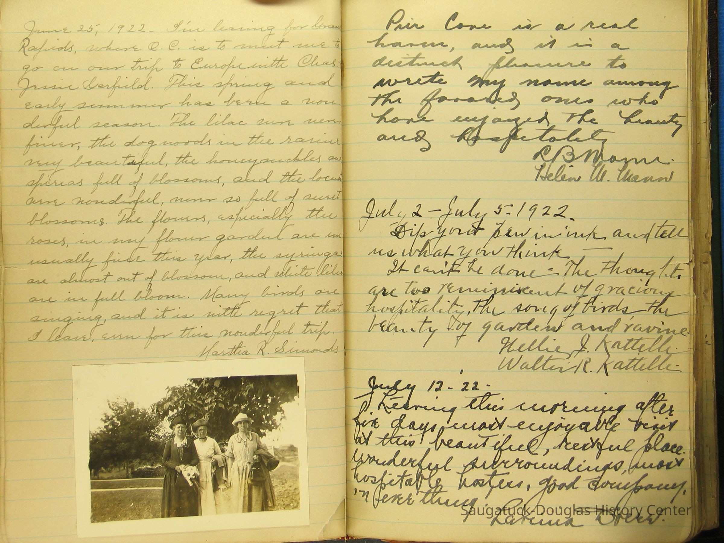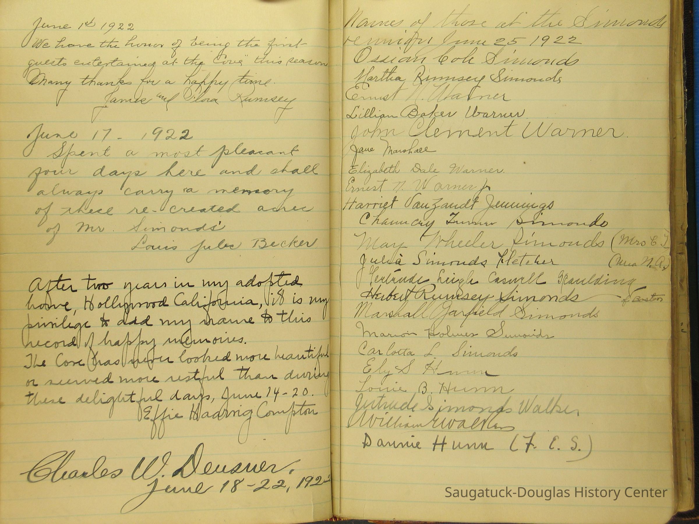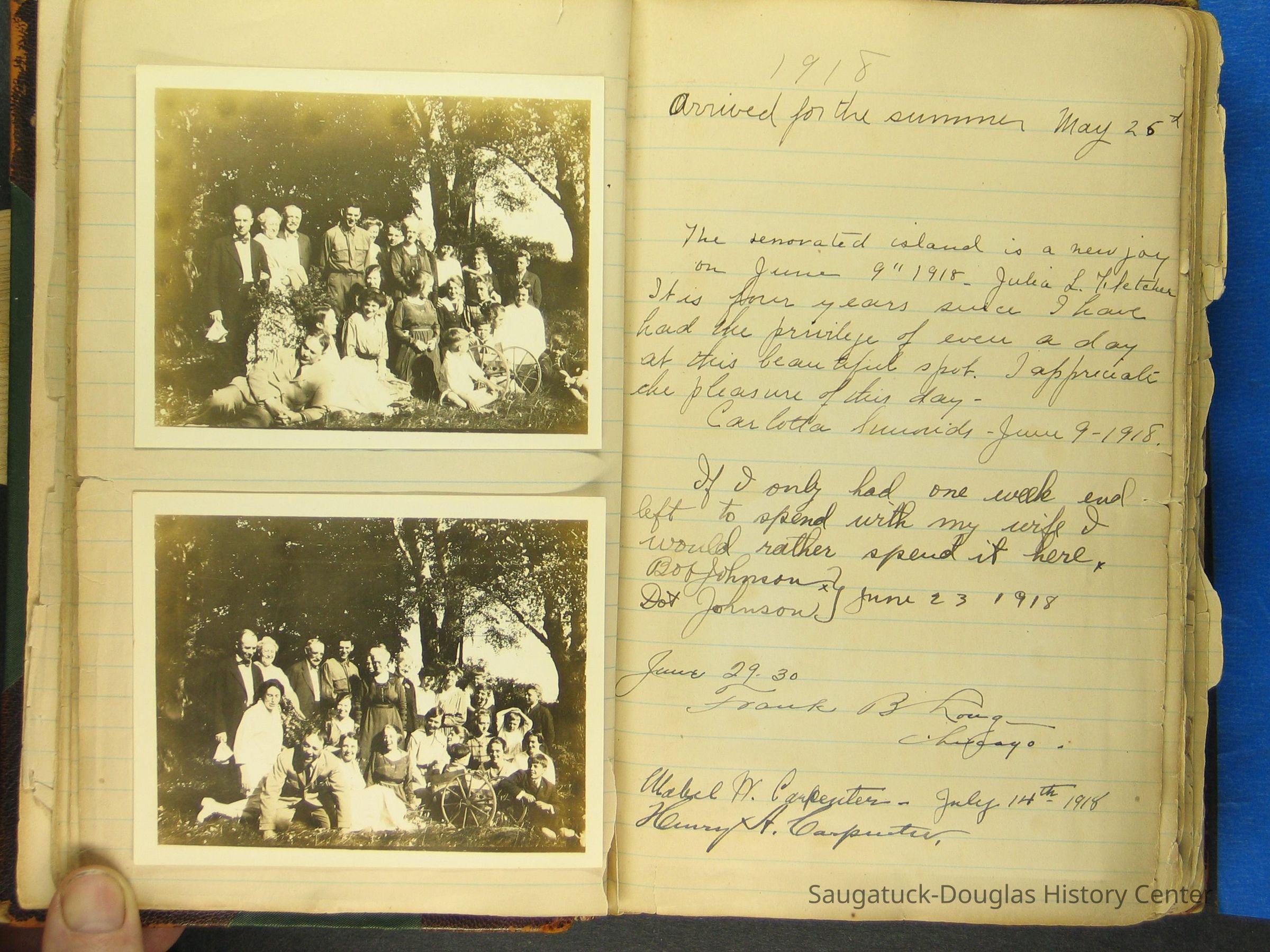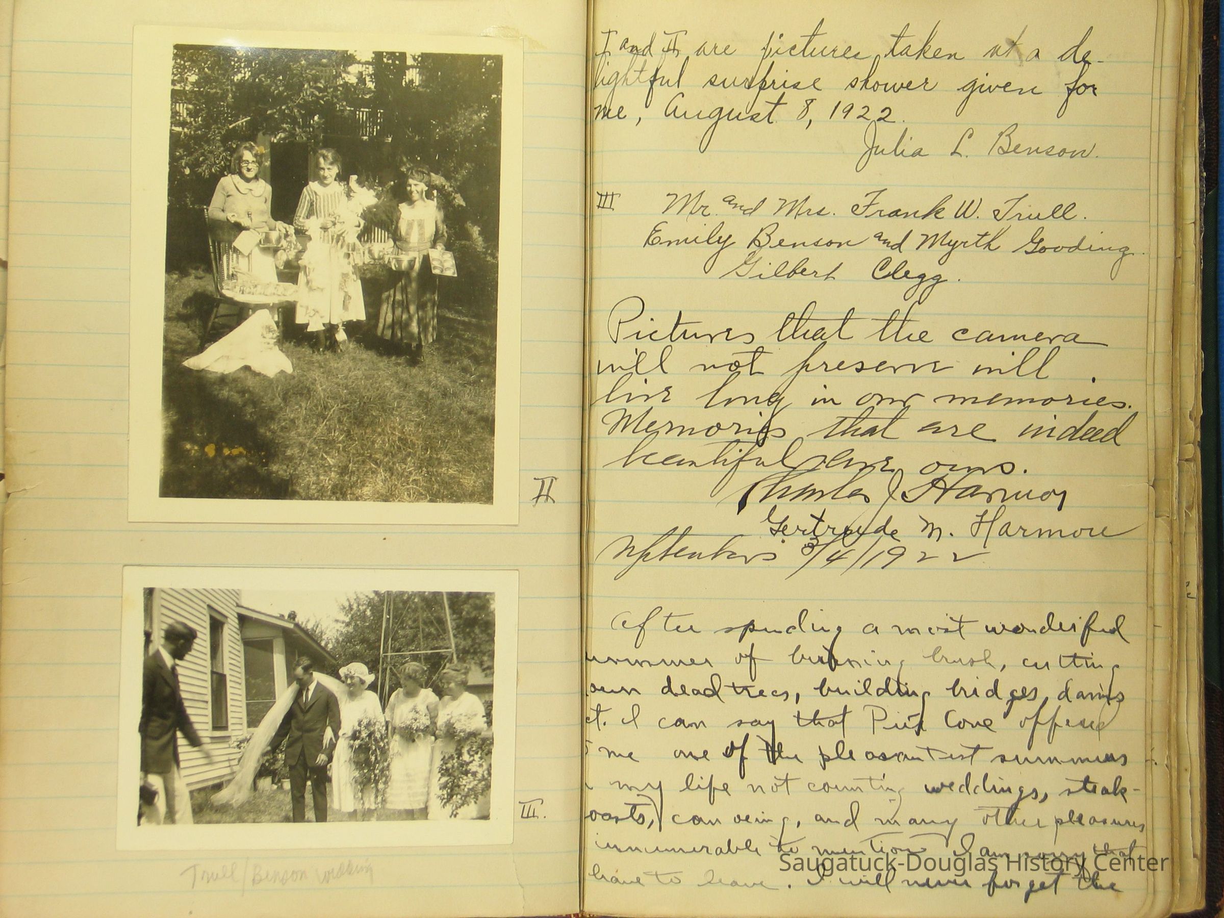 Photos of Pier Cove locations, cottagers and their activities plus notes, poems, newspaper clippings and sentiments written by guests, family and neighbors.