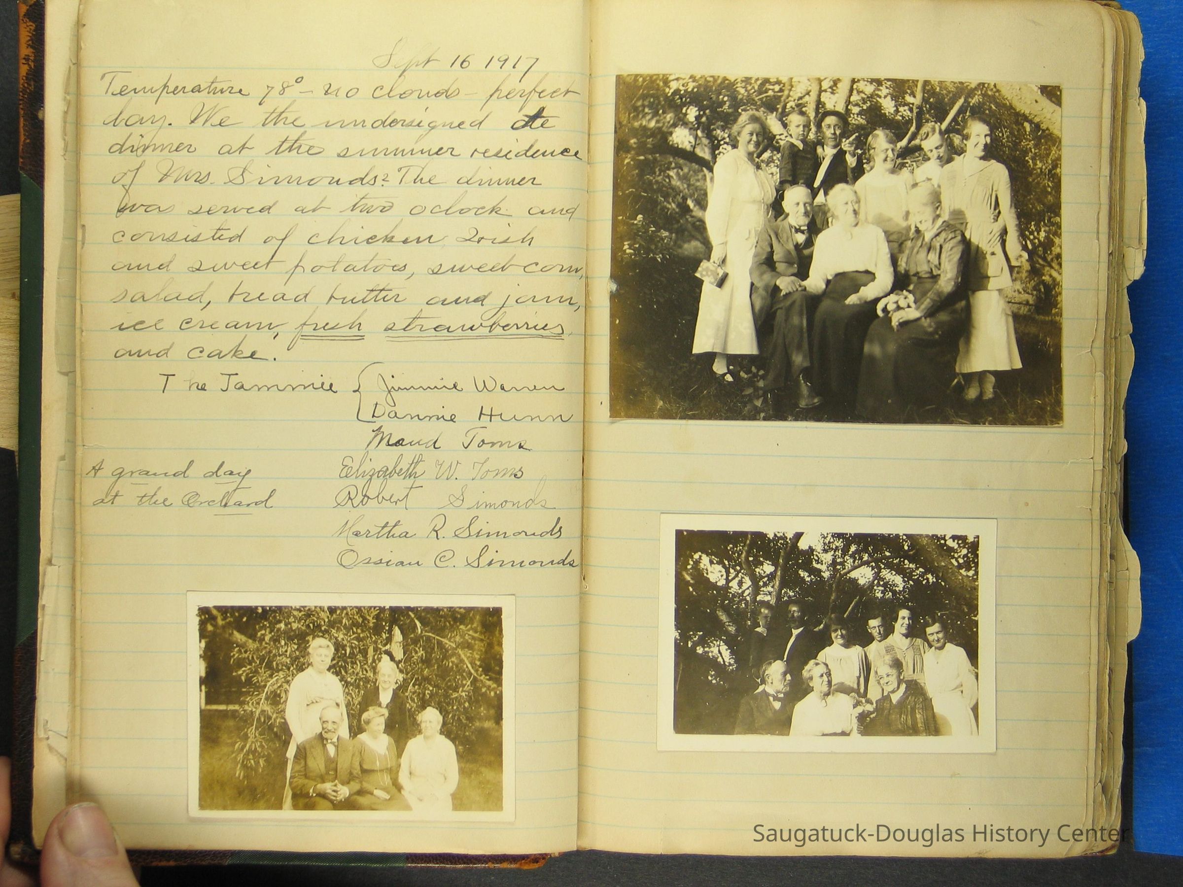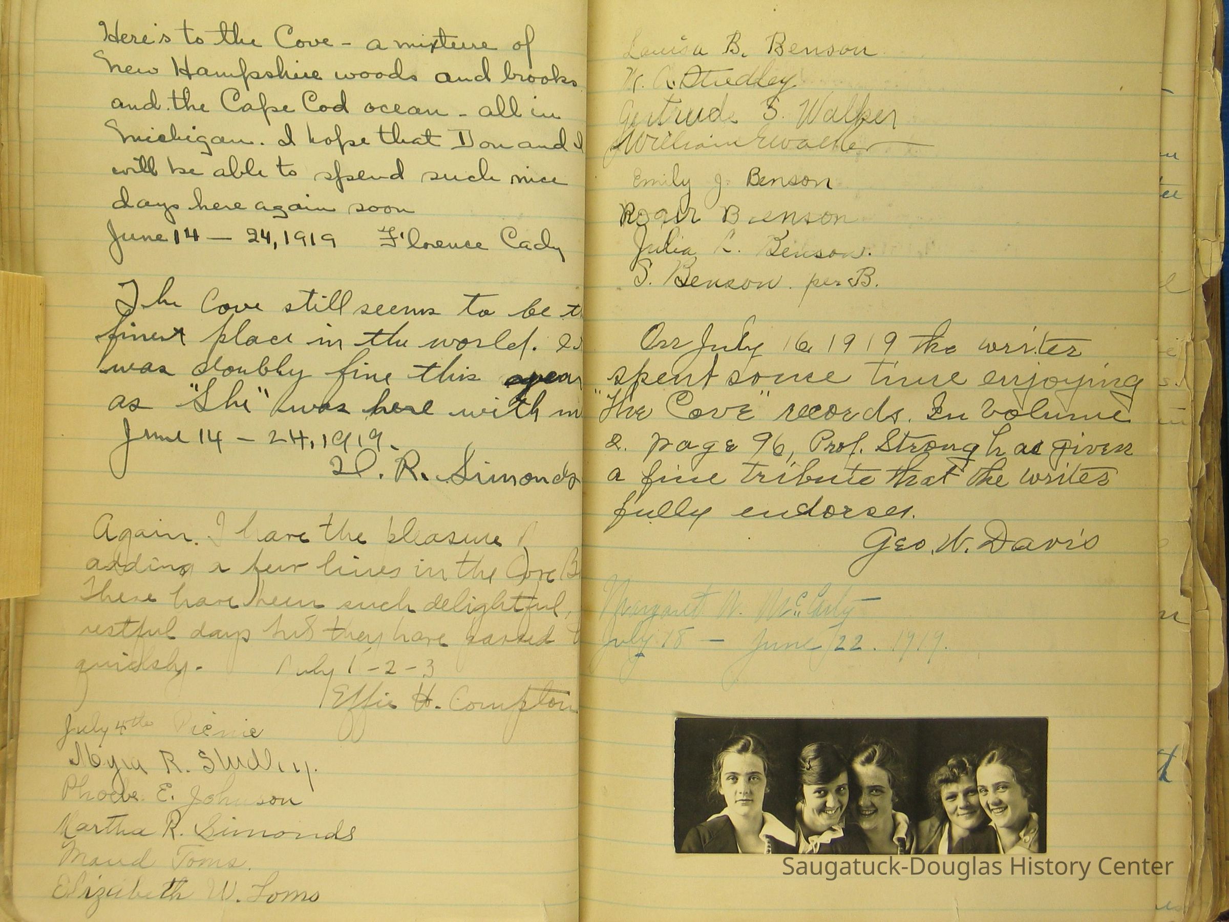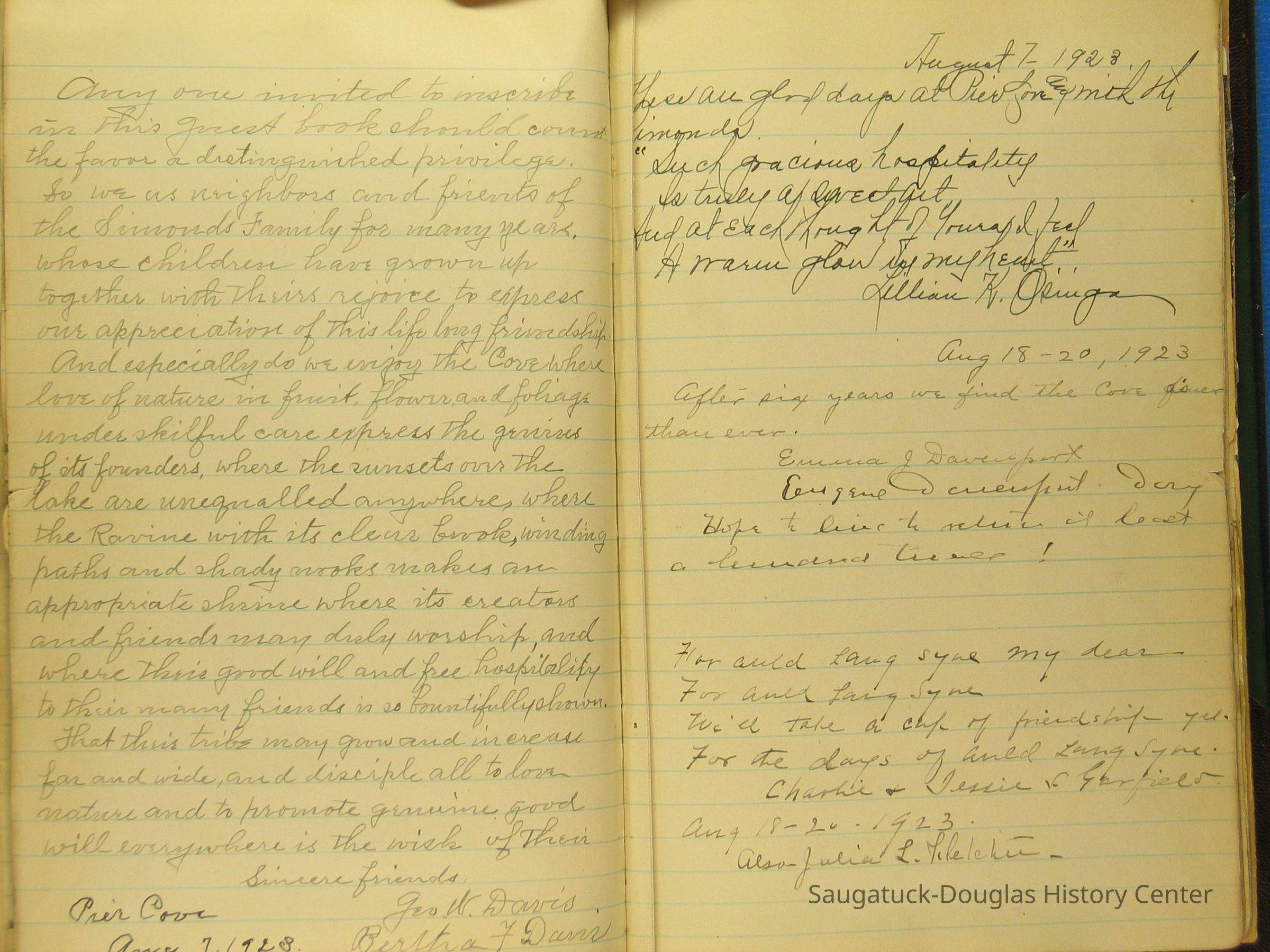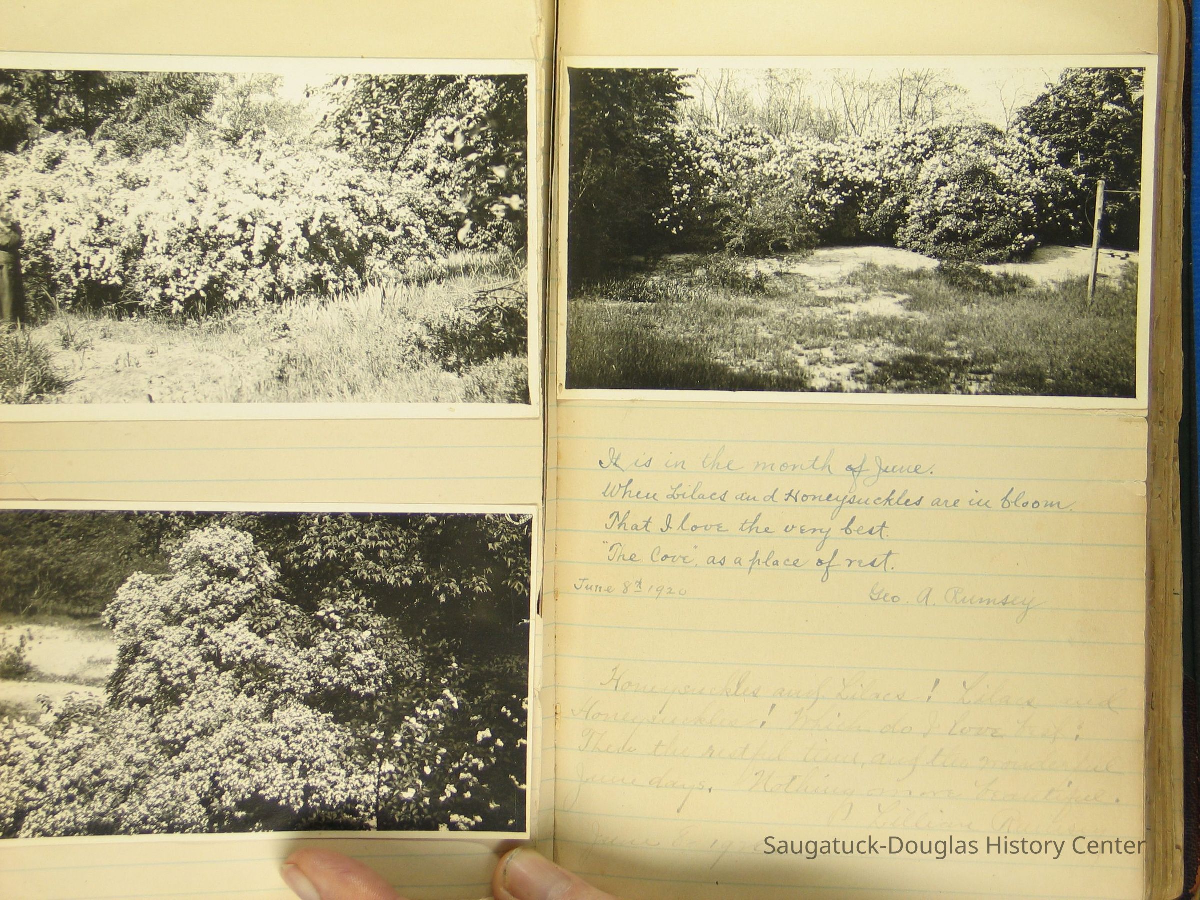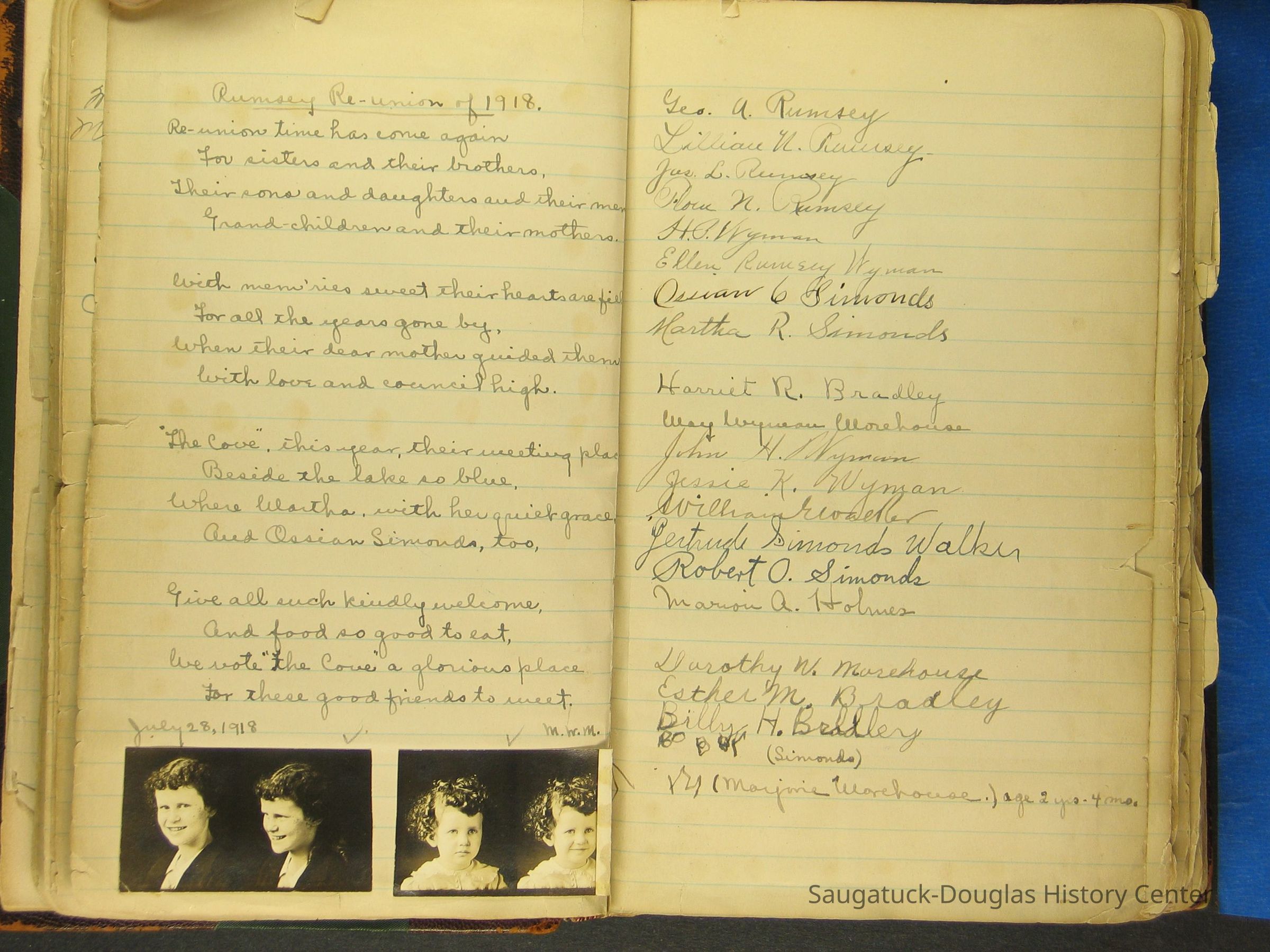 Photos of Pier Cove locations, cottagers and their activities plus notes, poems, newspaper clippings and sentiments written by guests, family and neighbors.