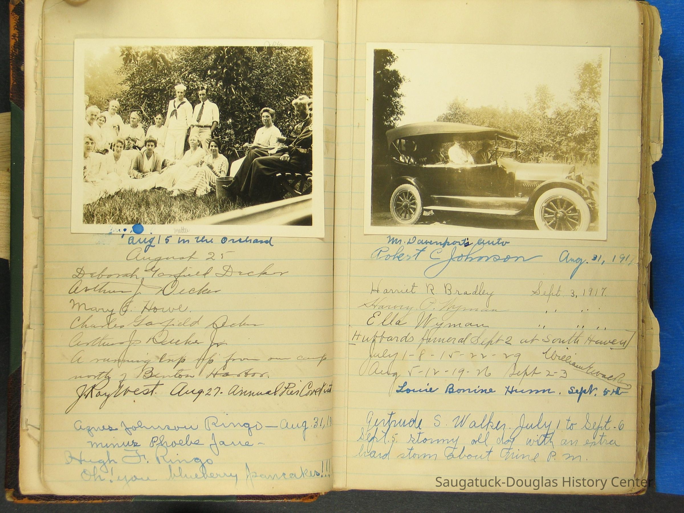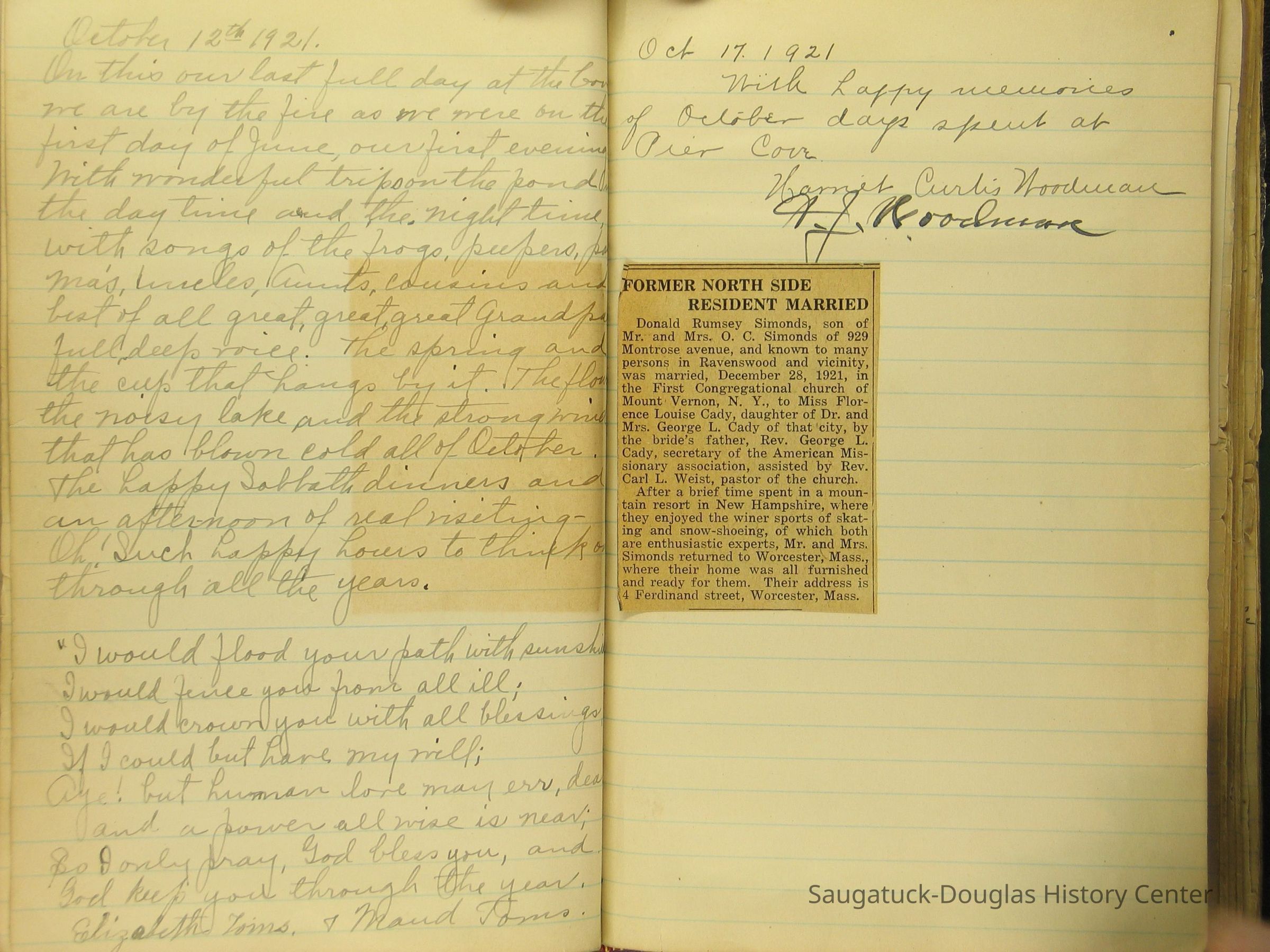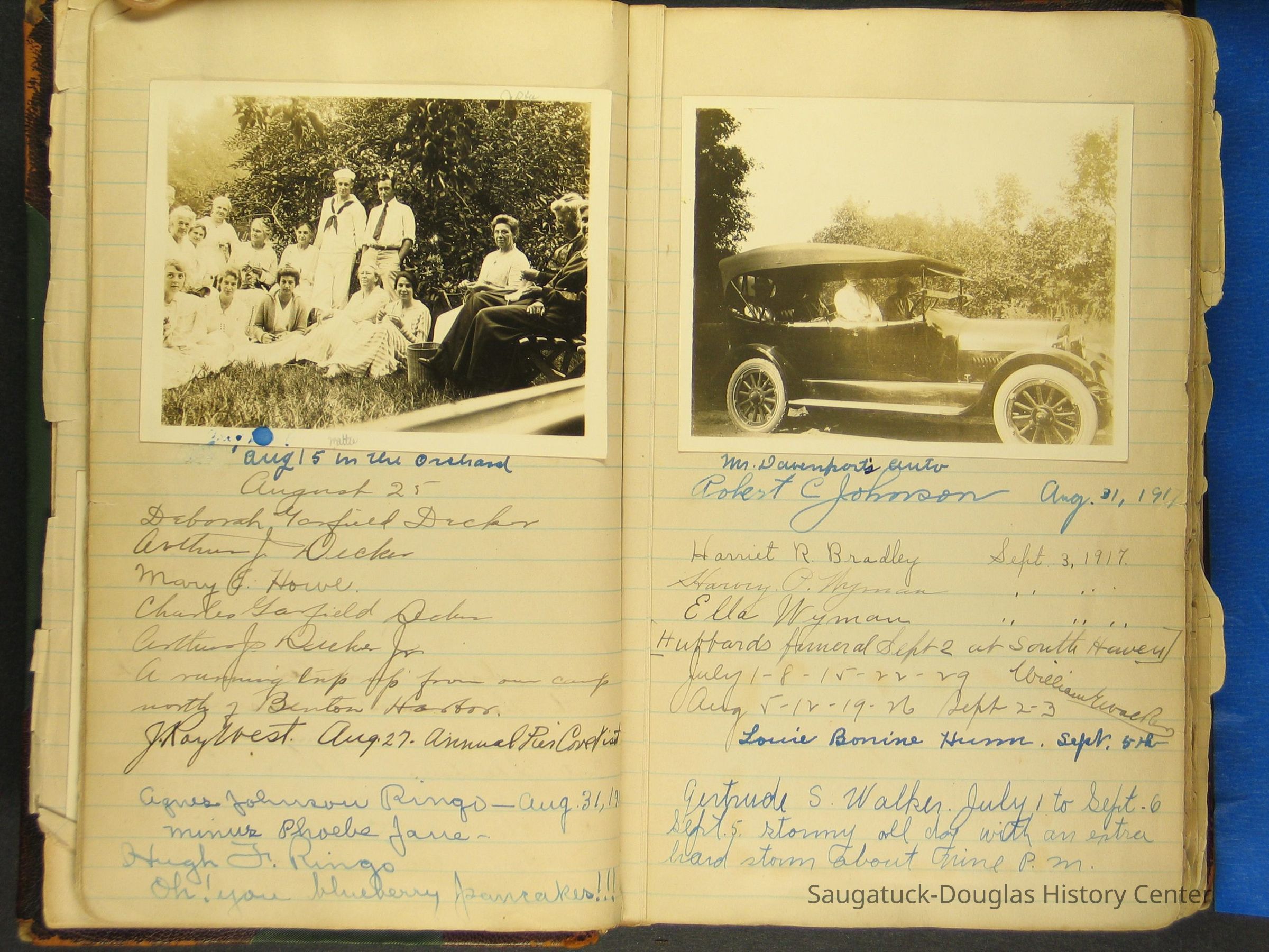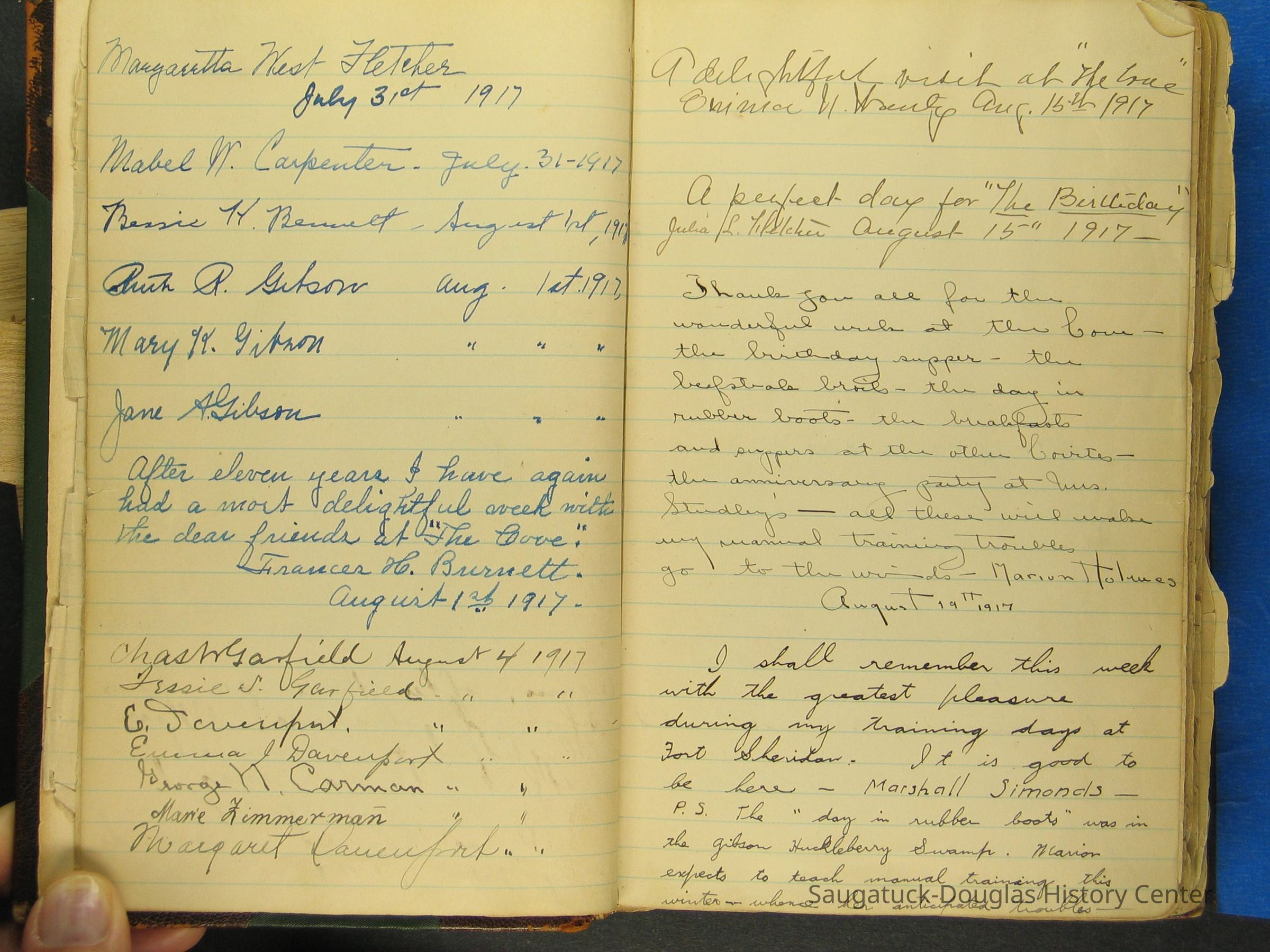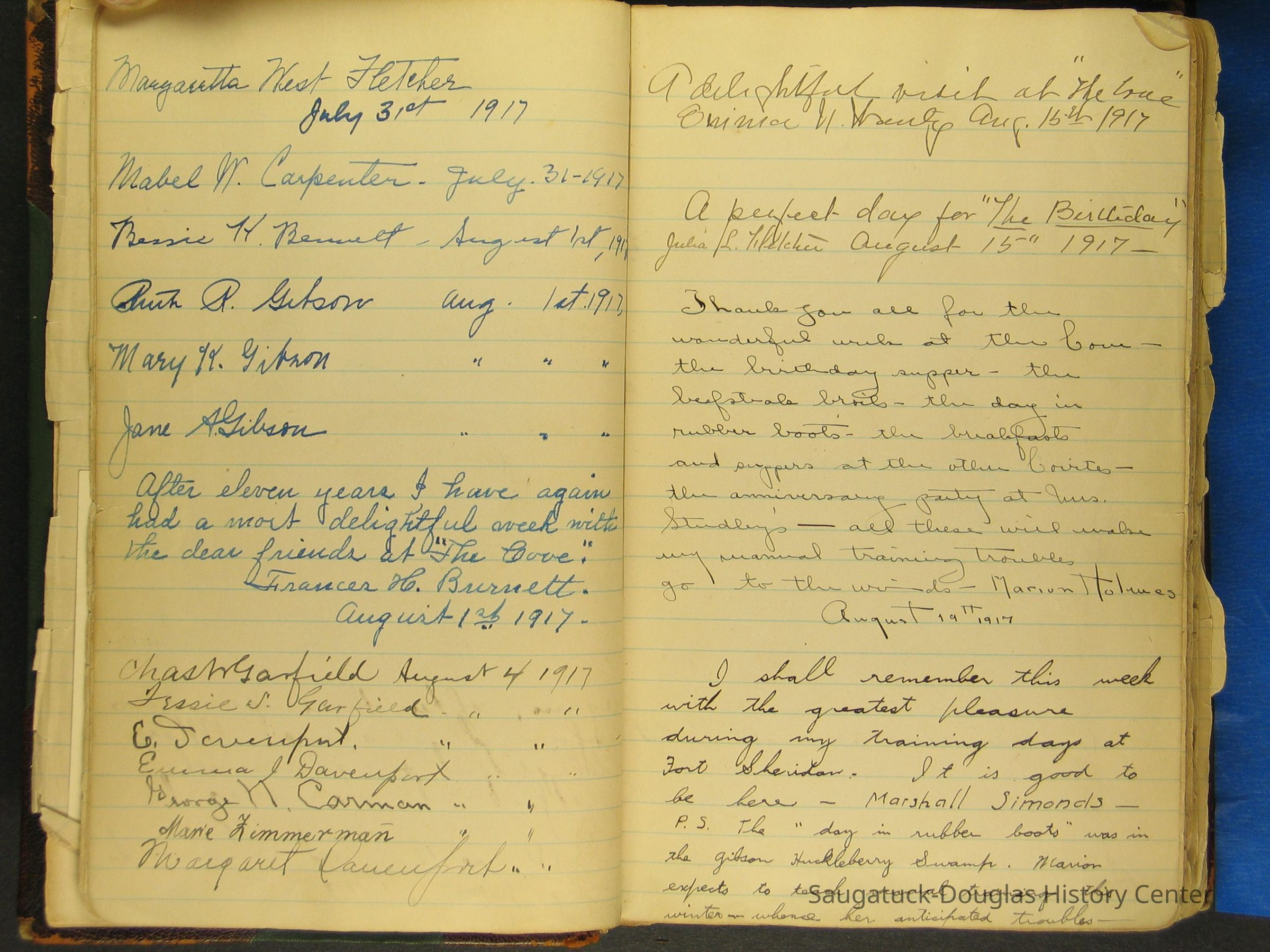 Photos of Pier Cove locations, cottagers and their activities plus notes, poems, newspaper clippings and sentiments written by guests, family and neighbors.