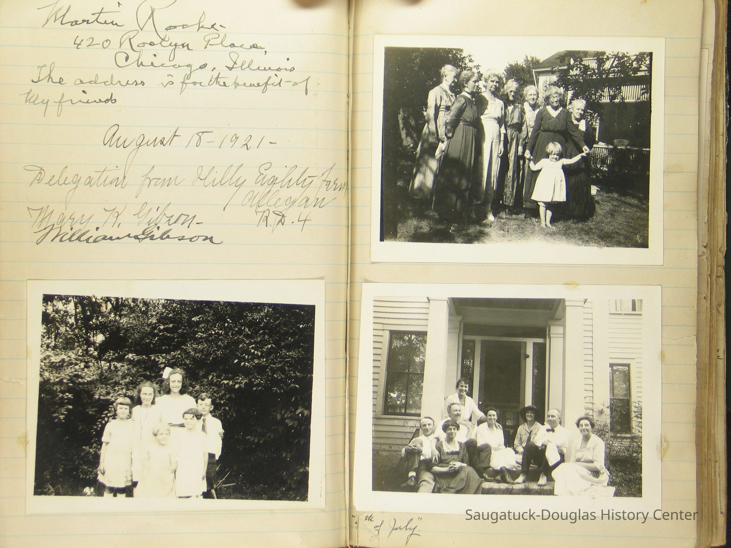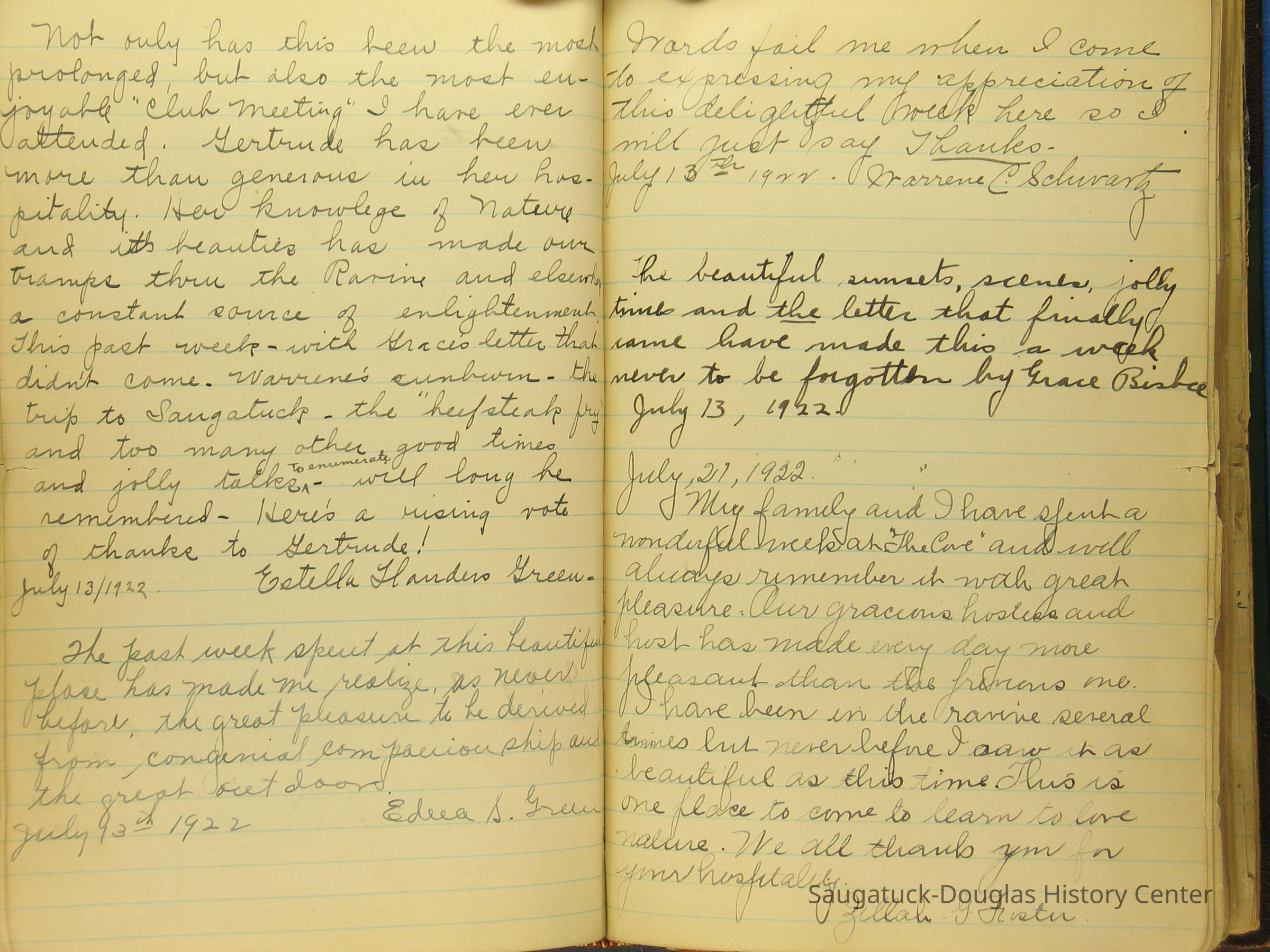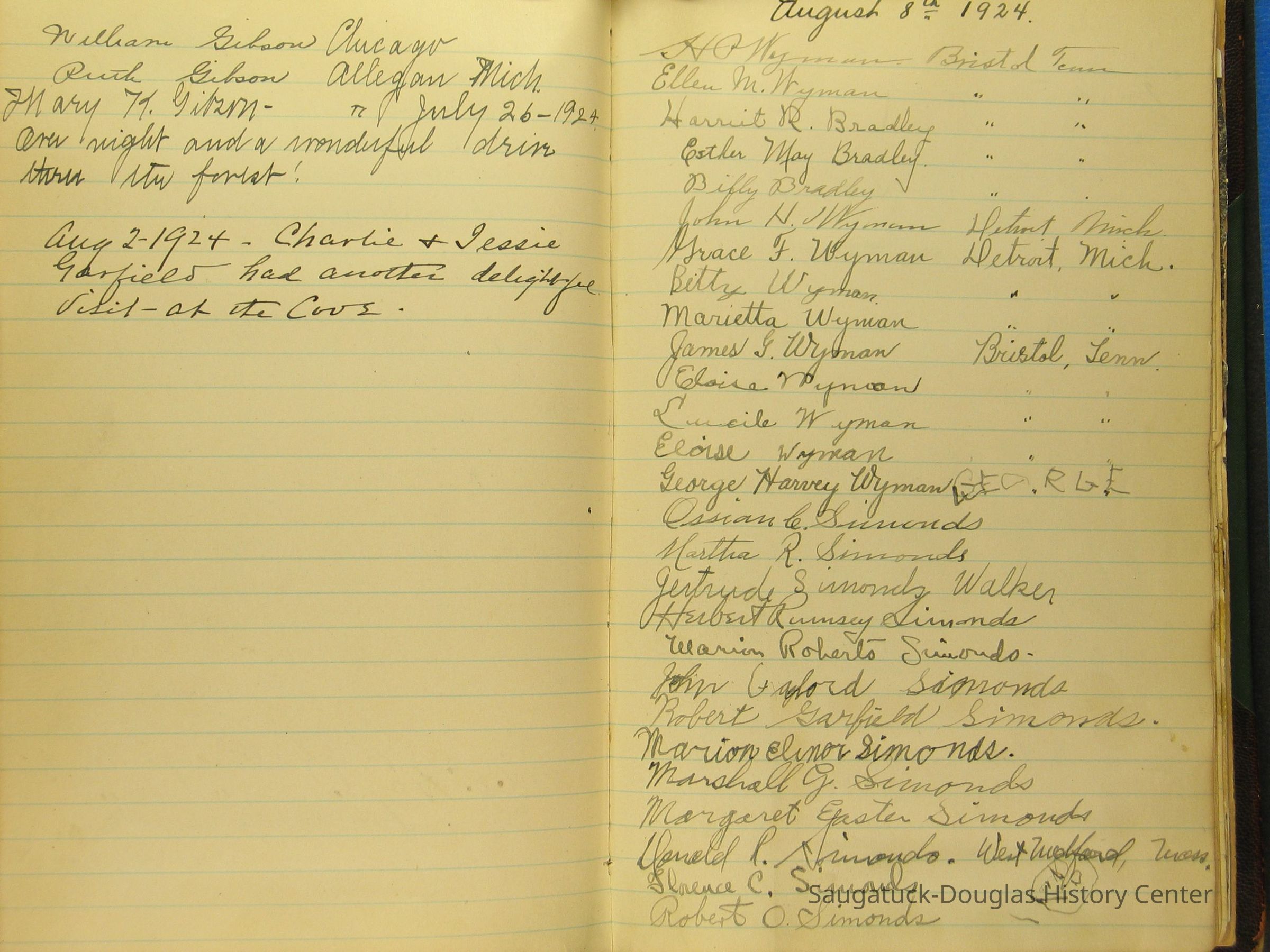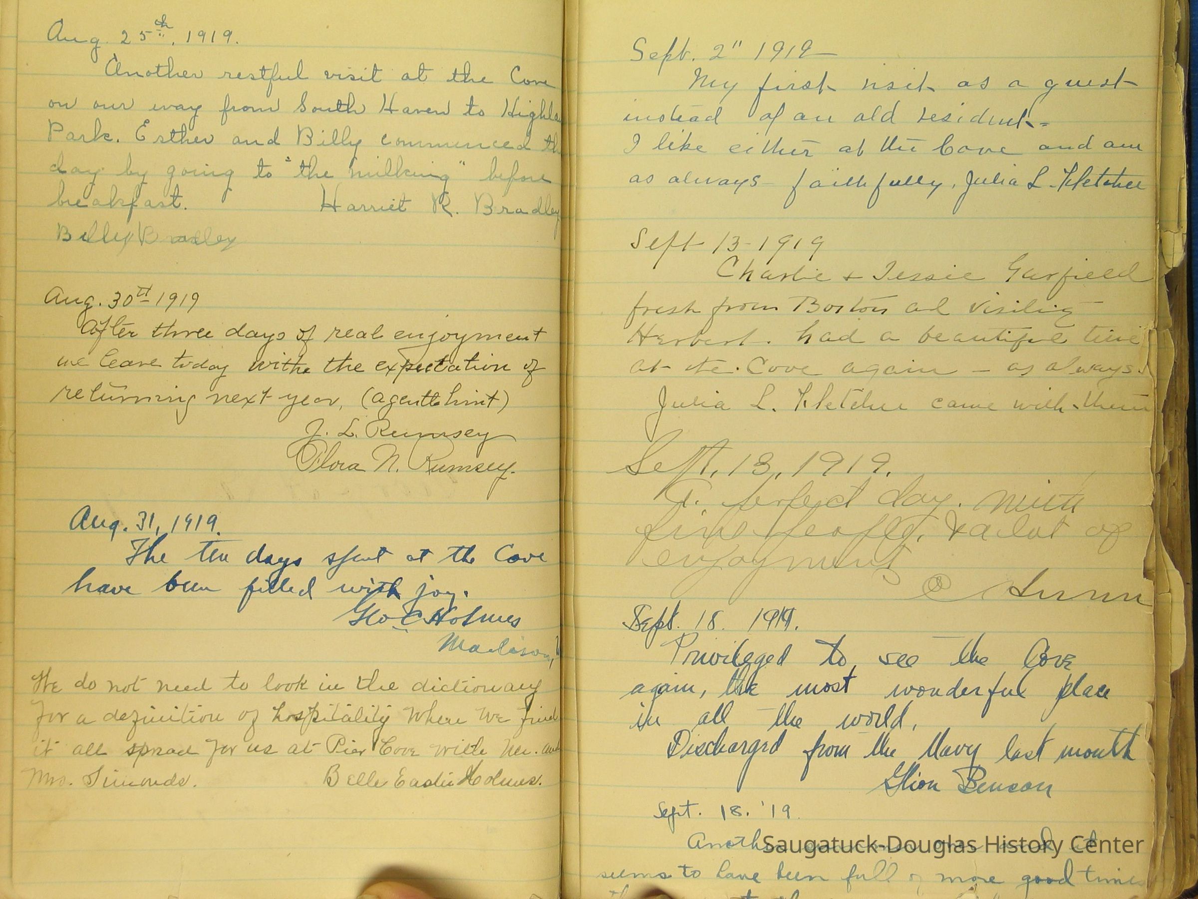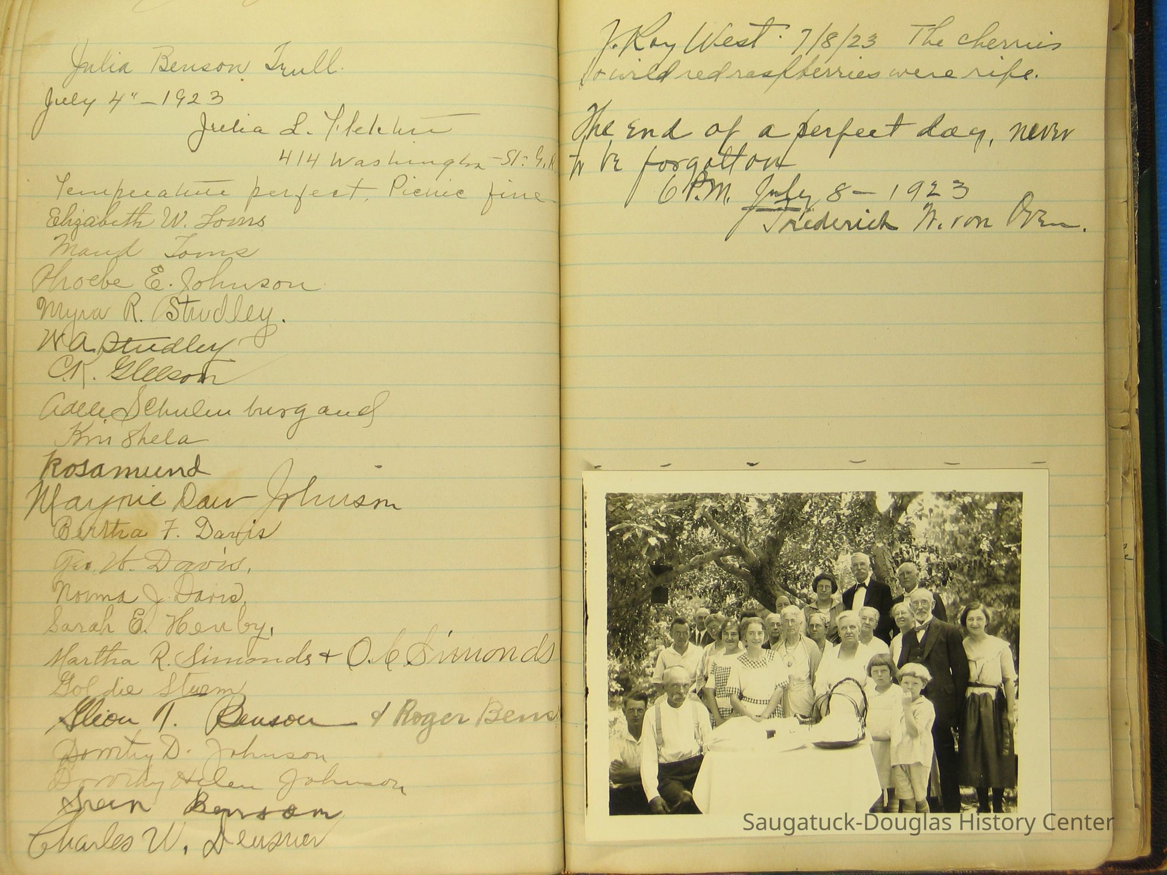 Photos of Pier Cove locations, cottagers and their activities plus notes, poems, newspaper clippings and sentiments written by guests, family and neighbors.