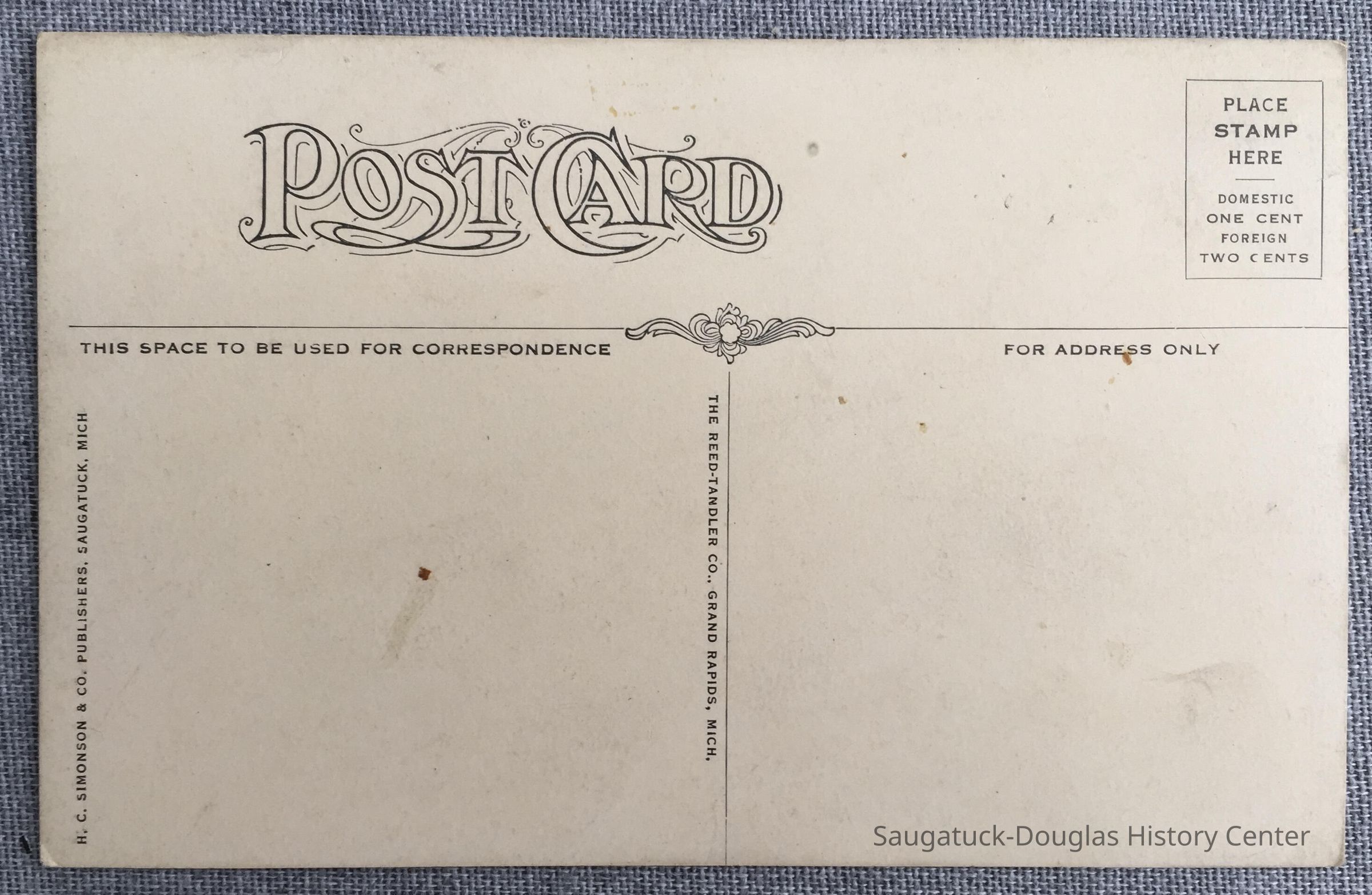 Unmailed, no writing. Black ink only on front and back. "Place stamp here" zone lists domestic postage as one cent. Image is printed, not a photo.