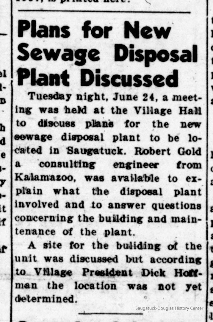 In order to accommodate the large volumes of waste generated by summer visitors and to comply with government water safety regulations, Saugatuck slowly put in place a modern waste-management system. Prior to the treatment system, sewage was disposed of in septic fields or into the river.