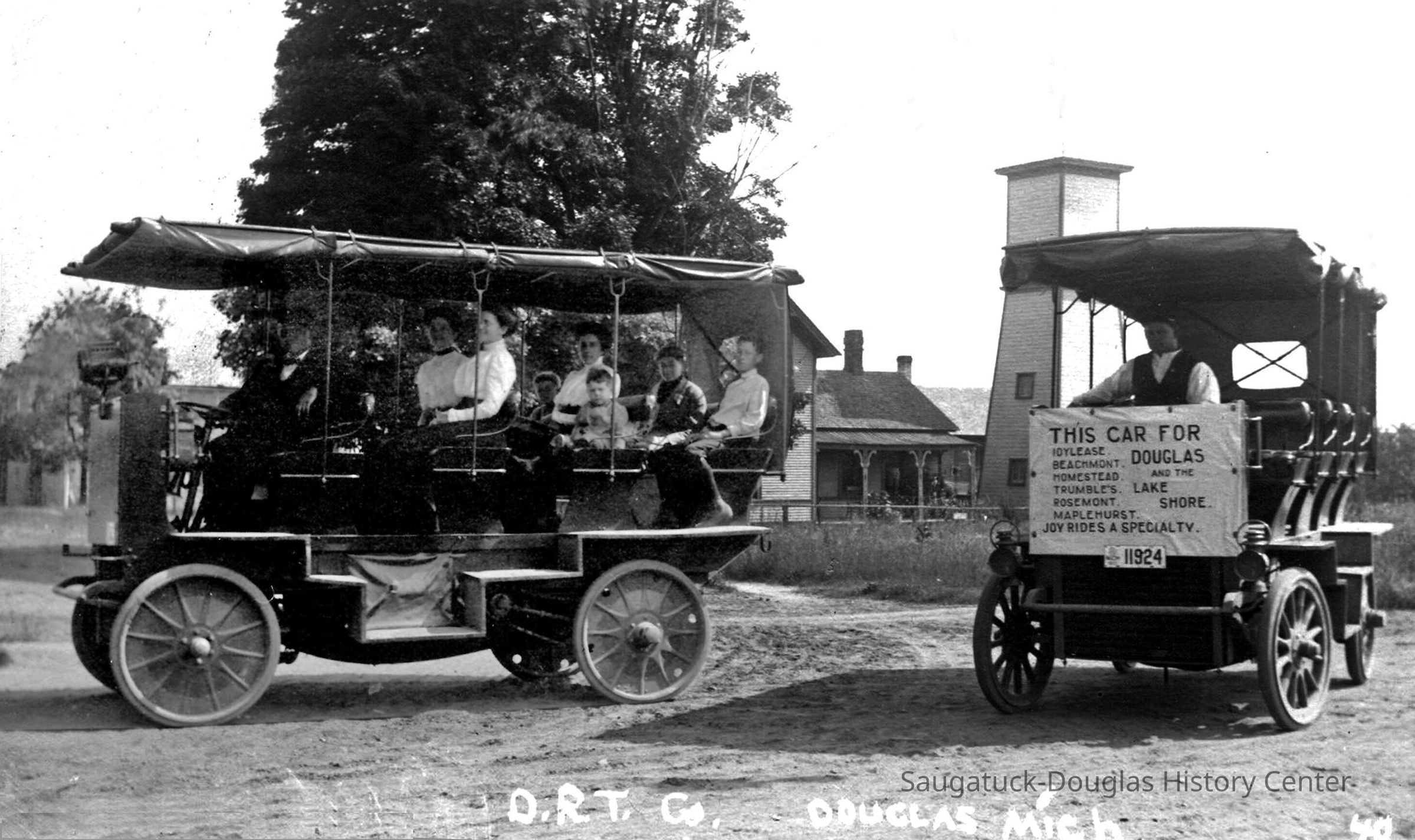 AUTOMOBILES: Americans eagerly looked forward to the start of a new century in 1899. There were signs of brighter things to come—electricity was beginning to light up towns and cities. And something new called an automobile would soon send the horse and buggy out to pasture. Michigan’s son, Henry Ford, started the revolution in 1896 when he drove his newly invented gasoline powered automobile on the streets of Detroit. The automobile changed everything in America—where we lived, where we worked, and where we vacationed. The family car opened up the whole country for people to visit. Part of Henry Ford’s dream was to make a family car affordable for anyone. To do this he revolutionized manufacturing with an assembly line production. Ford also reduced the working day from 9 hours to 8 hours with a minimum wage of $5 a day—a better wage in those days. Saugatuck and Douglas’ tourism businesses all benefited as travelers from near and far could more easily visit the area for a weekend or the summer. It’s interesting to note how many electric cars (including a few gas and electric hybrids) were around in the early 1900’s. There were even electric tour busses in Douglas. It seems sometimes we have to reinvent the past. by Rob Carey