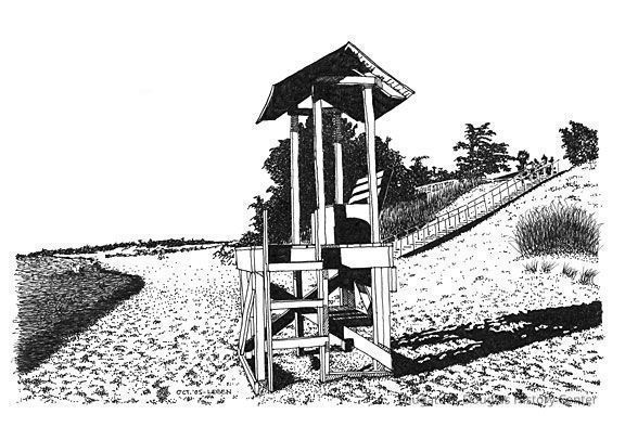 A single water faucet, privy-type toilets, and some trash cans completed the amenities that first year, but it soon became evident that some protective measures were also needed. A life guard stand appeared, and a section of the water was marked off with heavy pilings and rope. A life guard way hired to watch swimmers, administer first aid, pick up litter, and generally keep order.