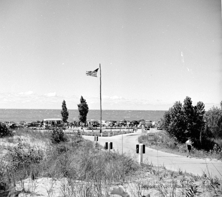 I haven't been back in a long time, but I like to think that beach-goers traveling the road through the thick, shady woods can still experience a thrill as they top the third hill, when the vast panorama of a many-blued Lake Michigan, a lighter blue sky, and our proudly waving flag opens up suddenly in front of them. At least, that's how it was in the early days of the Saugatuck Oval.
